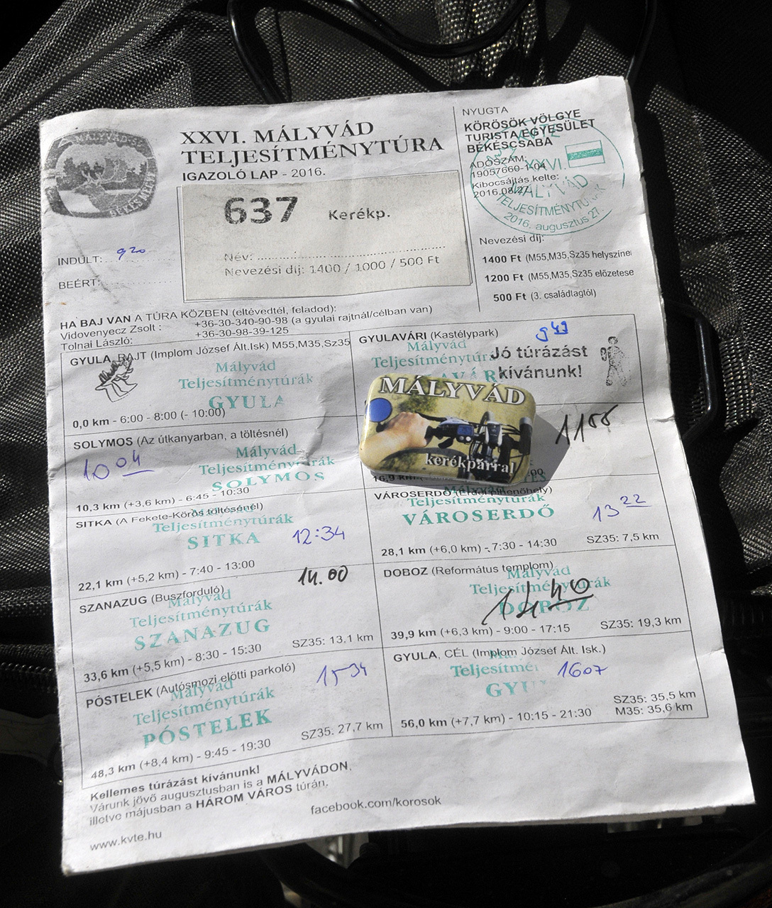 A 637-es rajtszámmal induló kerékpáros először nevezett a túrára. (Tetemes helyismerettel indult: Gyulaváriban nőtt föl, gyakorta Dénesmajorban vakációzott, évekig élt Békéscsabán, még többet Gyulán, s ez idő alatt alaposan bejárt ungot-berket a környéken.) Az Implom iskolától rajtolt, majd a vár–kastély–várfürdő–Csónakázó-tó négyszögét átszelve, az útvonaltérképre fittyet hányva indult a vári ellenőrző pont felé. Az egykori falu, a mai külváros flaszterén peregtek a küllők.