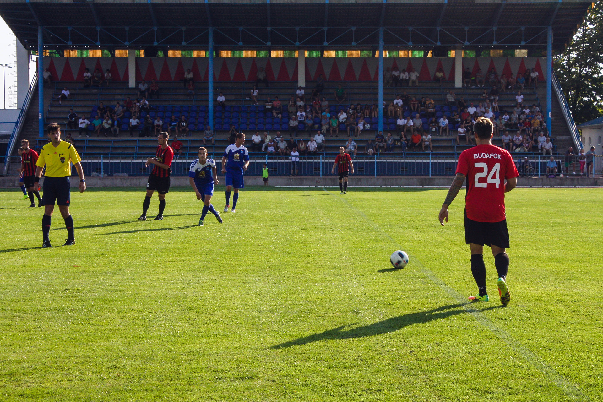 A Budafok csapata győzni jött Gyulára, és ennek „hangot is adott”, hiszen már a mérkőzés első perceiben helyzeteket teremtettek Harman kapujánál. A válasz nem késett sokáig, hiszen a negyedik percben a hazai gárda rontott tiszta helyzetben. Az első tizenöt percben négy komoly vendégtámadás jelezte a vendégek három pont iránti igényét. A Termál FC visszavontabb játéka a stabil védekezés, a középpálya szűrése és a lehetséges kontratámadás háromszögére épült. A vendégcsapat rendre odaért a gyulai kapu elé, de komoly helyzetet a félidő első részben nem tudtak kialakítani. A hazaiak láthatóan a Balogh Milánra épített gyors kontrákban bíztak, a védők azonban sorra kapcsolták le a hazai rohamokat. A Budafok taktikus és szépen felépített játékát néha attraktív megoldásokkal tarkította. A félidő vége felé kétszer is betalálhatott volna a pesti csapat, ám előbb ajtó-ablak helyzetben rontottak, másodszor pedig Harman remekül hárított kétszer egymás után (0-0).