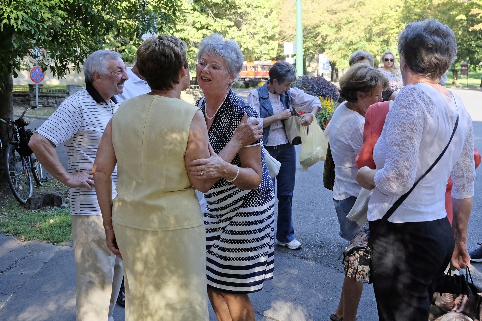 Az eseményt aztán nagy összetalálkozások és néhány jó hangulatú bemutatkozás is színesítette. – Így már felismerlek és tudom, hogy te vagy, de az utcán meg nem mondtam volna! – hangzott el többször is az érkezés pillanataiban. A régi-új ismerősök később egykori fotókat és fél évszázados emlékeket osztottak meg egymással korábbi iskolájuk kapujában.