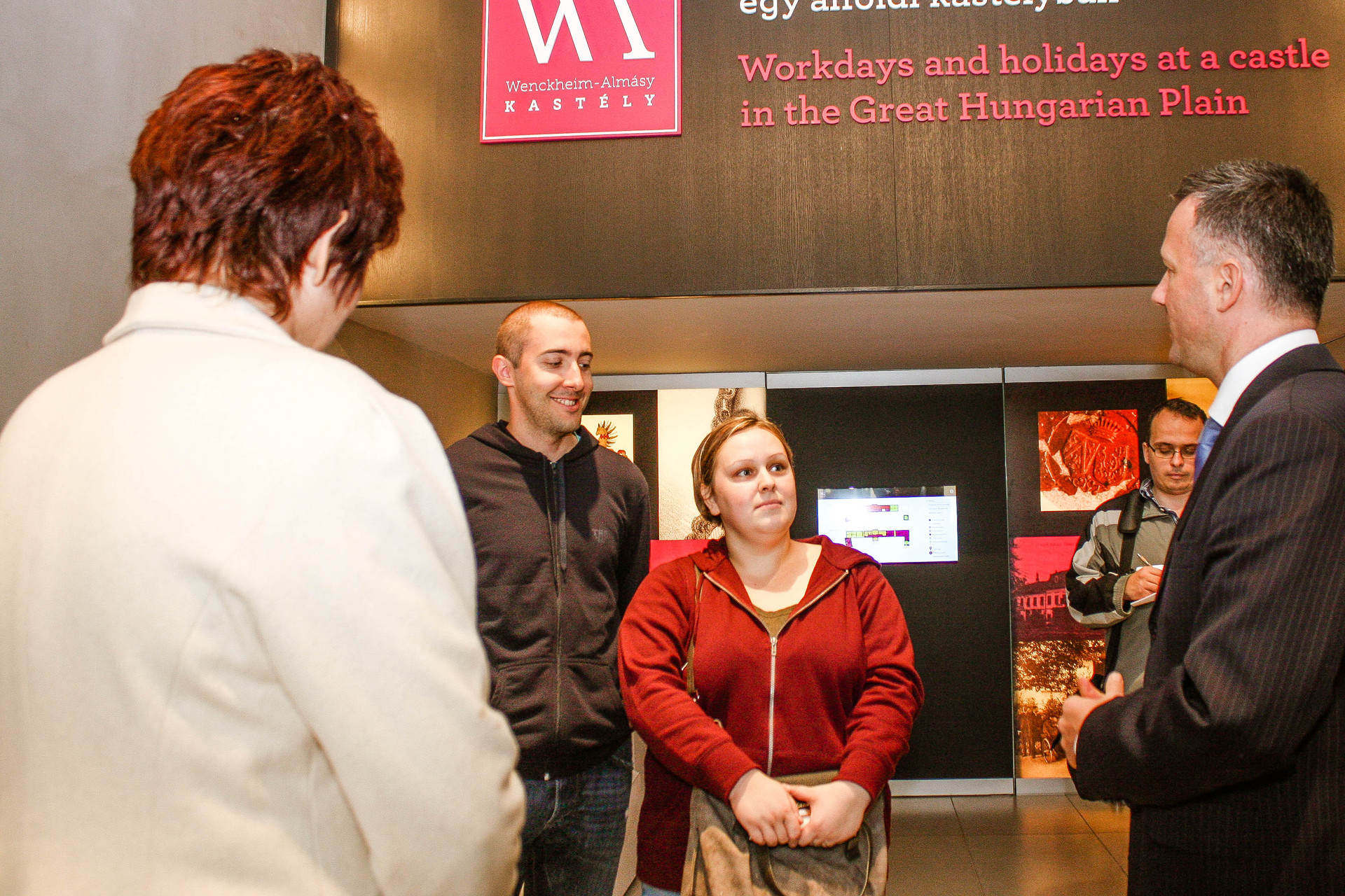 Korom Szimonettát és Dohoczki Gábort a látogatóközpont bejáratánál köszöntötték