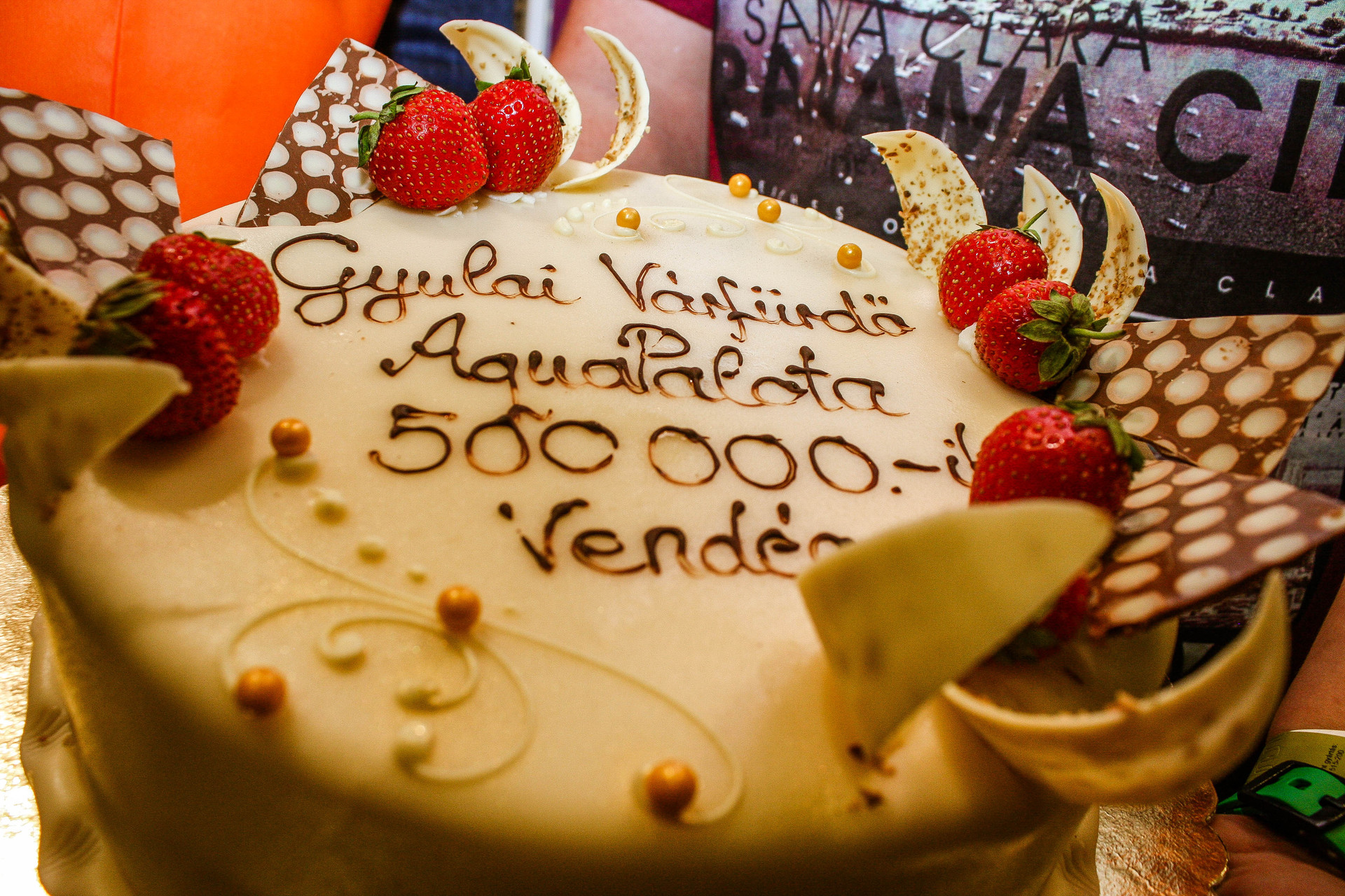 Ez a nap annyiban volt különlegesebb, hogy kifejezetten ünnepi fogadtatásban volt része a látogatóknak, hiszen ötszázezredik vendégei lettek a helyi fürdőnek. Az ügyes időzítésért cserébe ajándékcsomag és egy torta is járt a fiataloknak, akik meglepetten, de nagy örömmel vették át az ajándékokat.