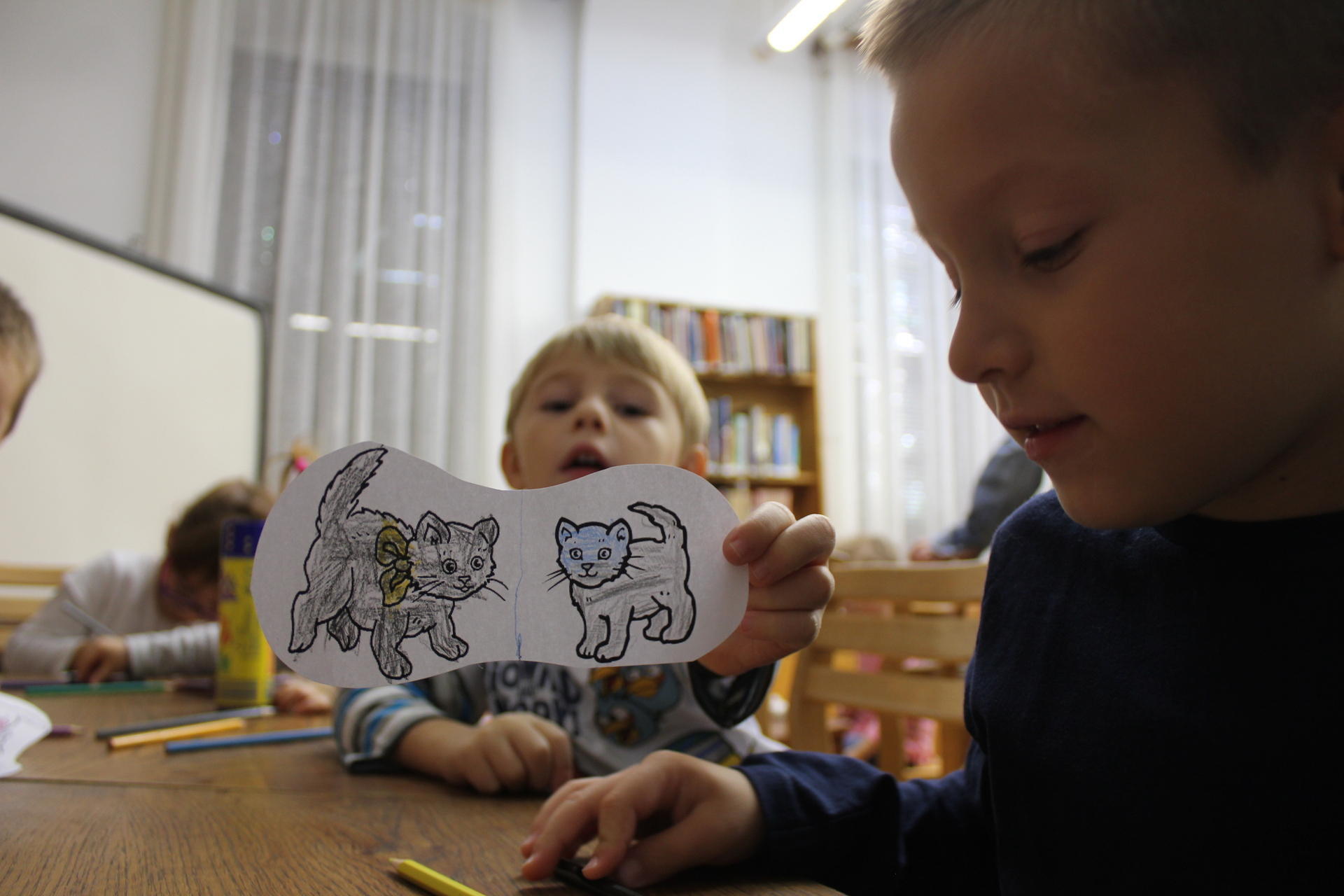 Délelőtt 10 órától a kicsik Cikicakk, a fekete cica történetét hallgathatták és nézhették meg, amit diavetítőn mutatott be nekik Kisné Czeglédi Márta, a könyvtár munkatársa. Tőle tudtuk meg, hogy az eseményre ez alkalommal 3 év alatti gyermekeket hívtak meg és mellettük a környékbeli óvodák kiscsoportosait is.