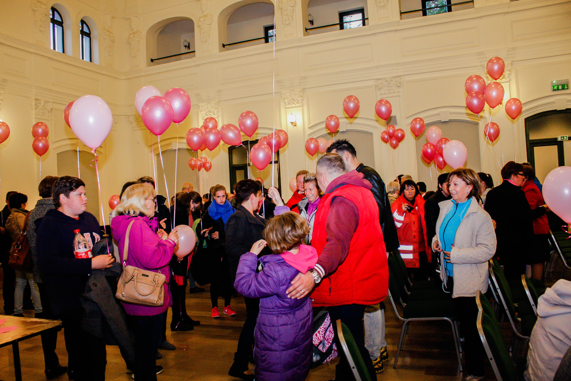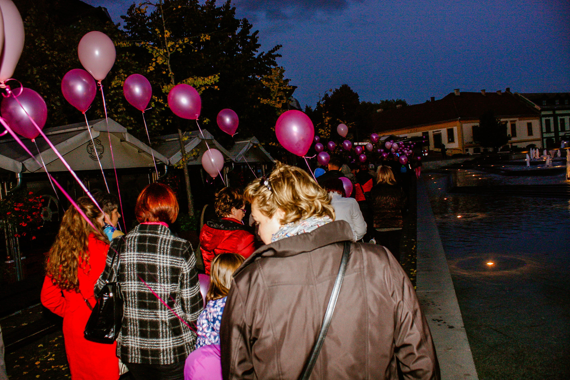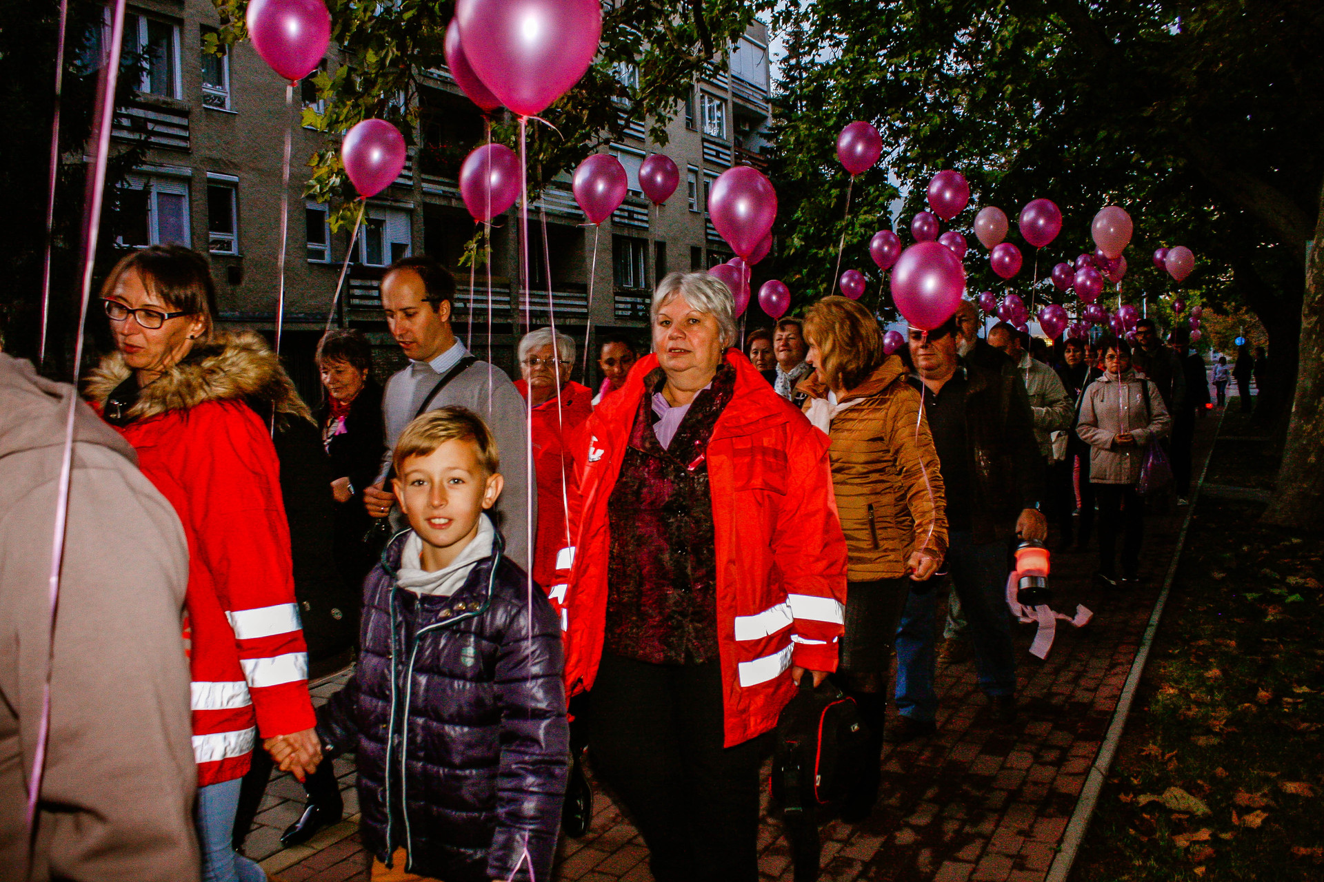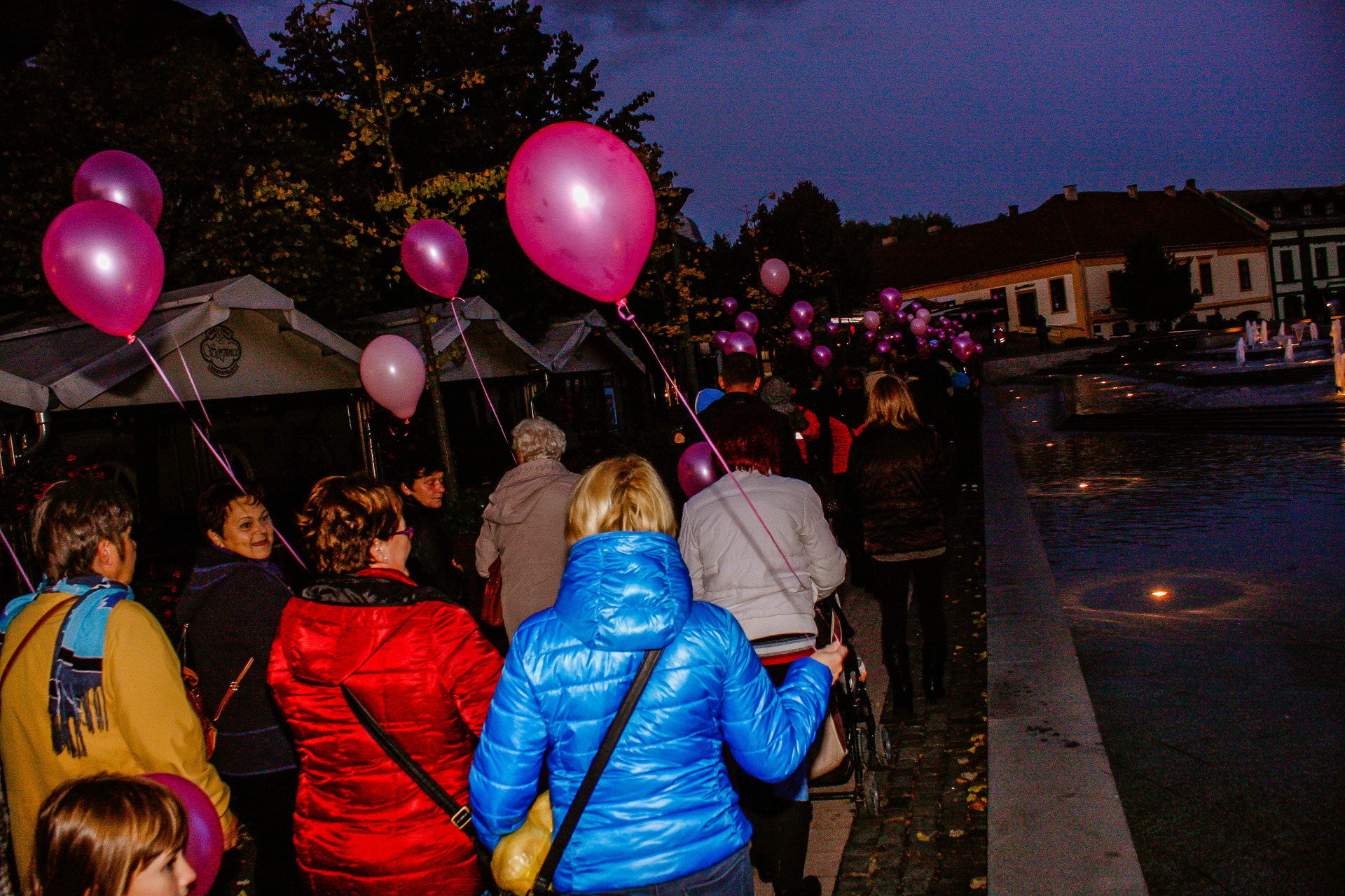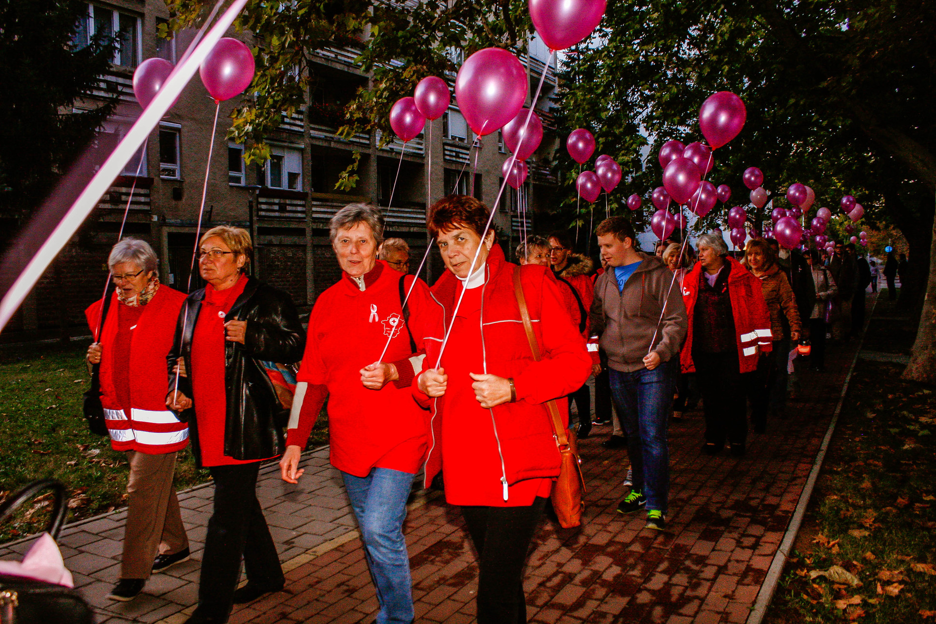A résztvevők rózsaszín léggömbökkel sétáltak a Világóráig
