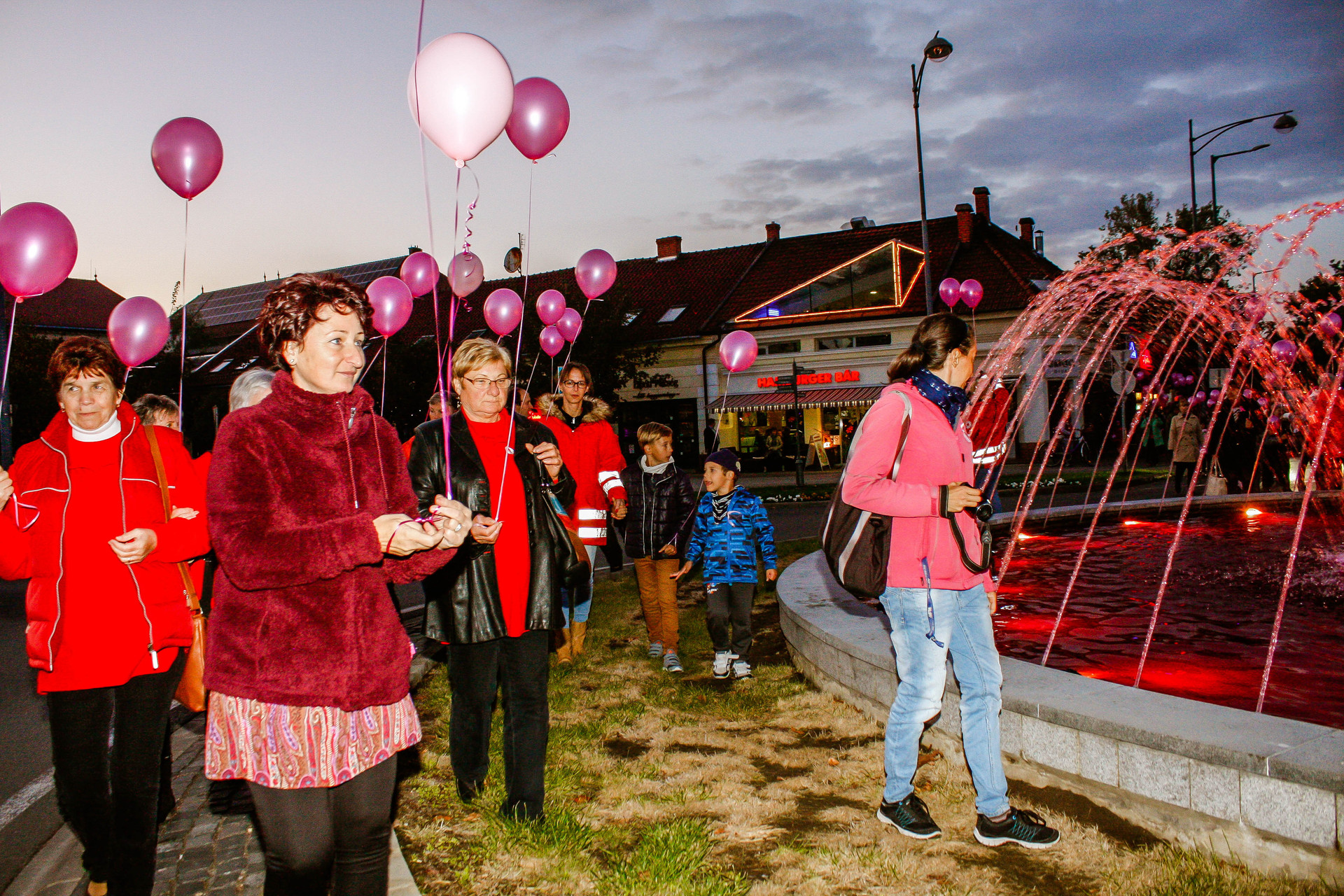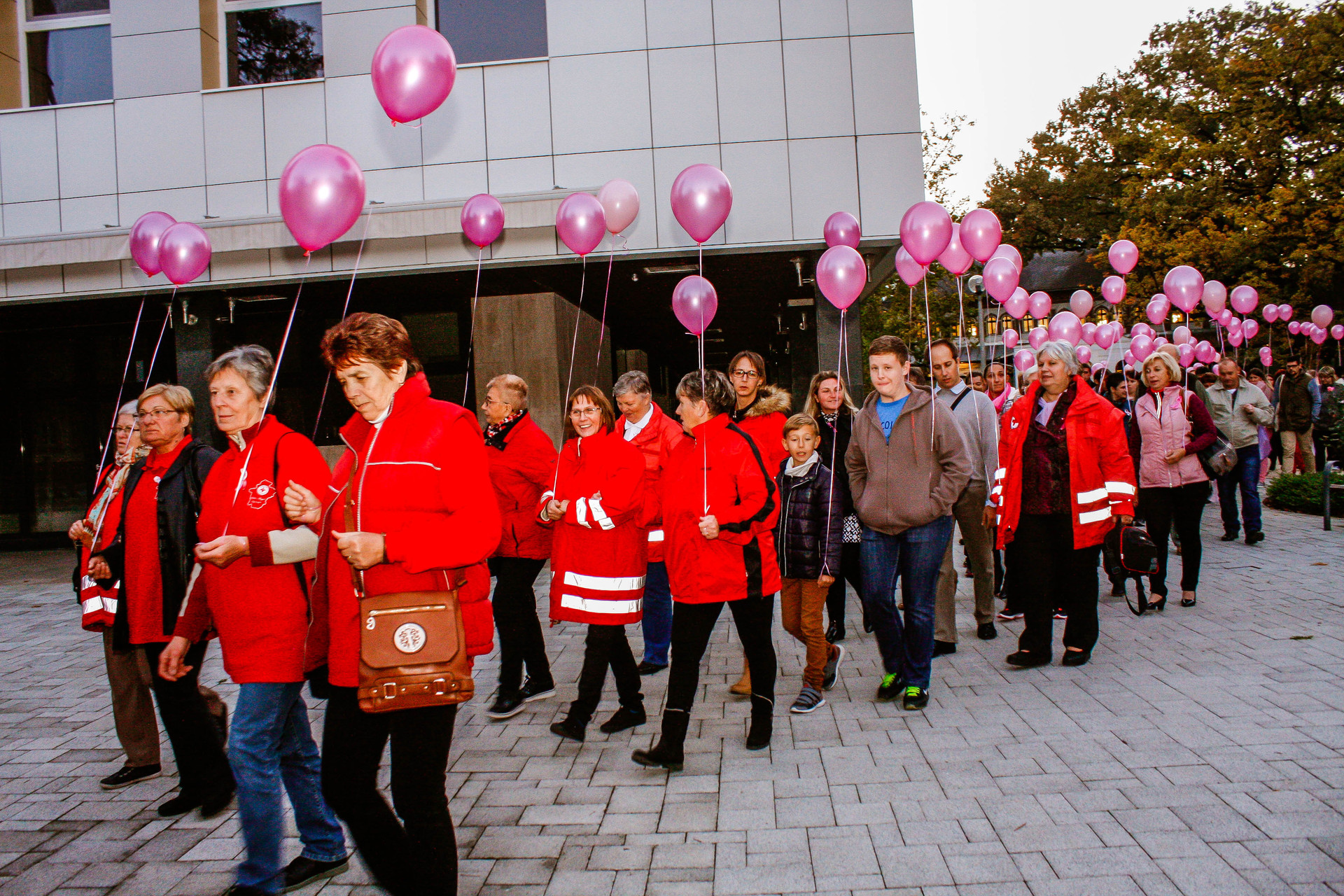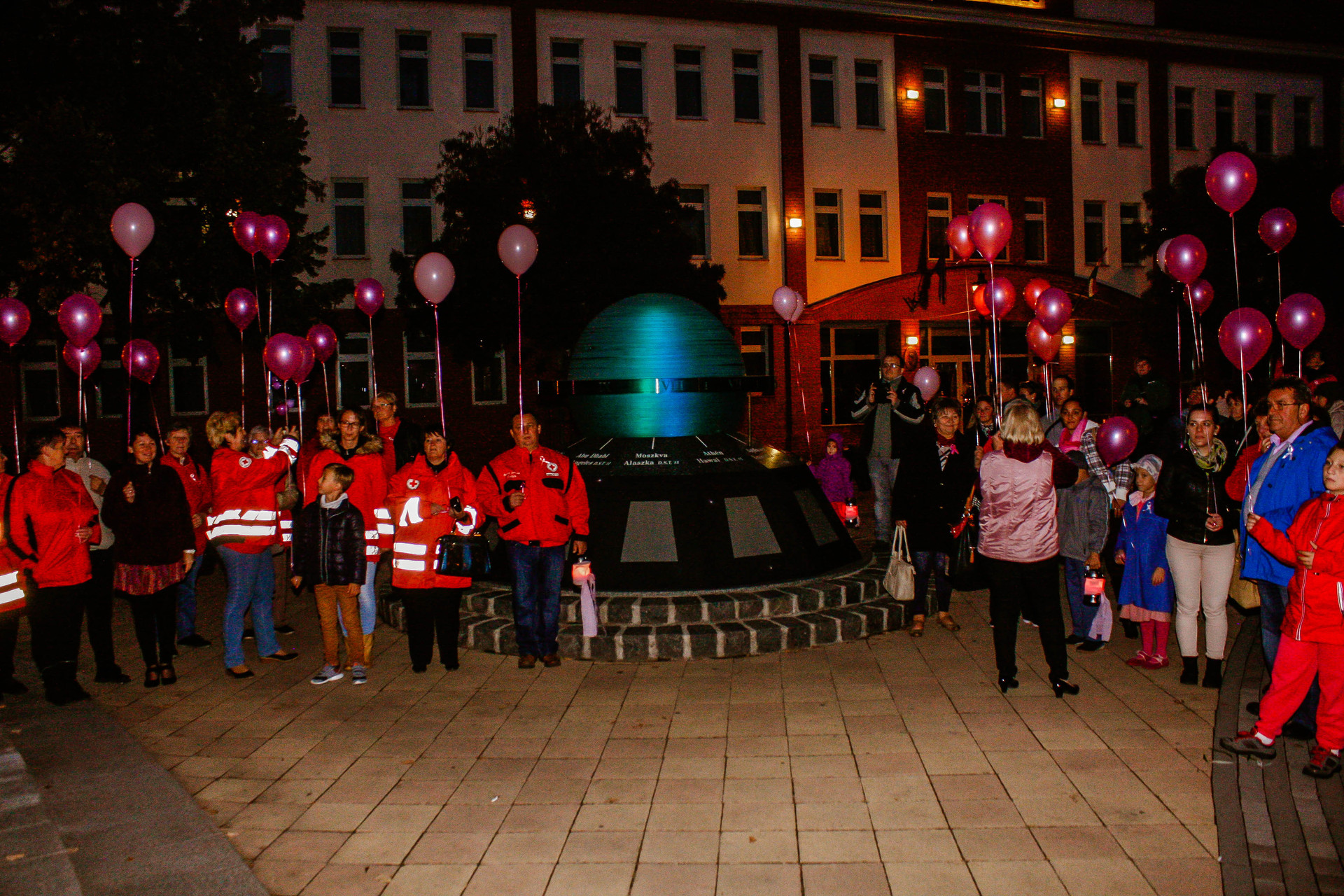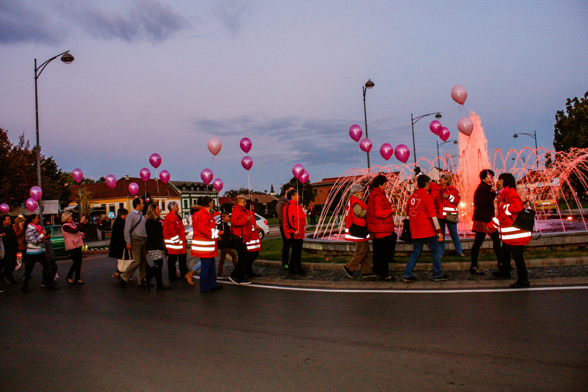 A résztvevők rózsaszín léggömbökkel sétáltak a Világóráig