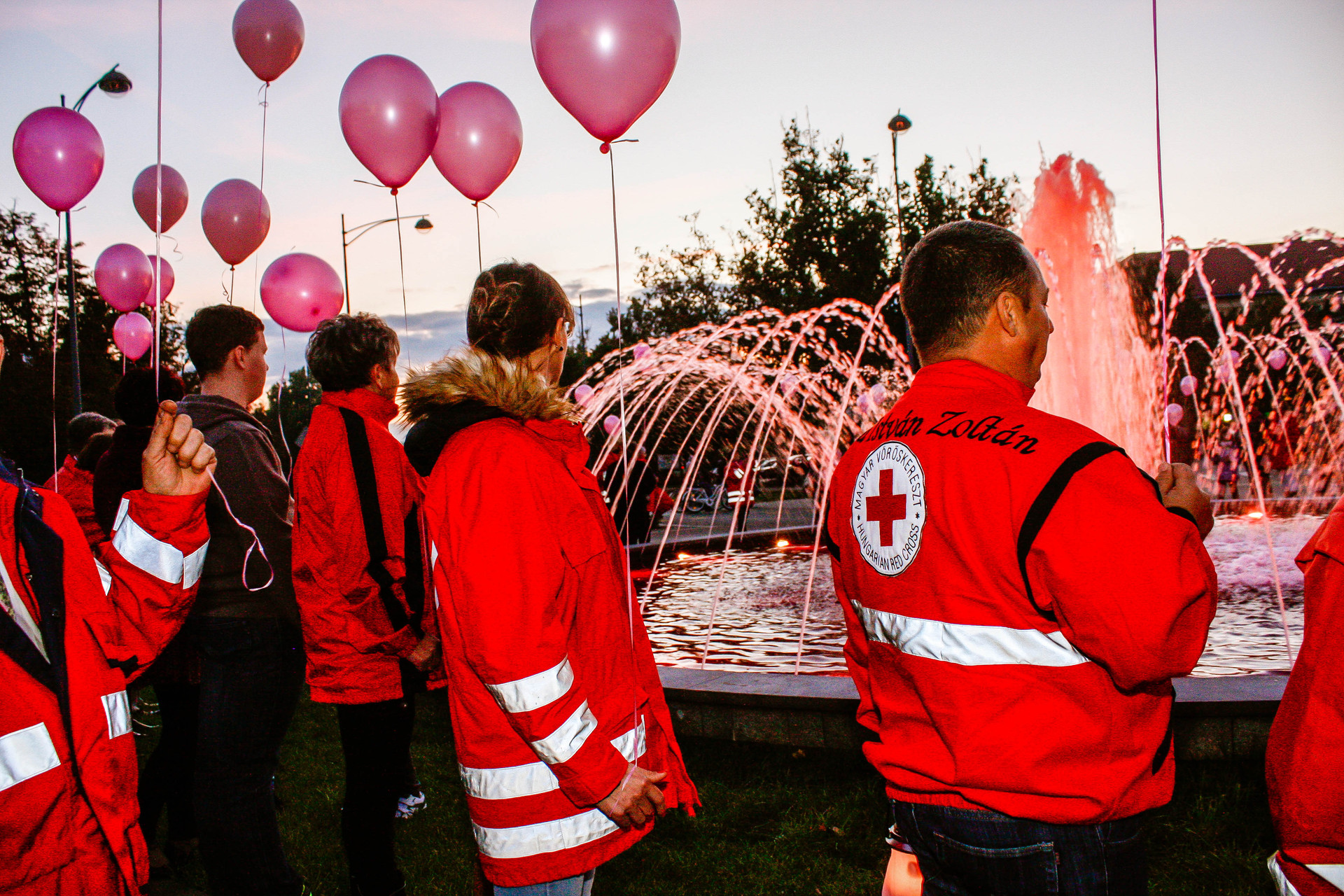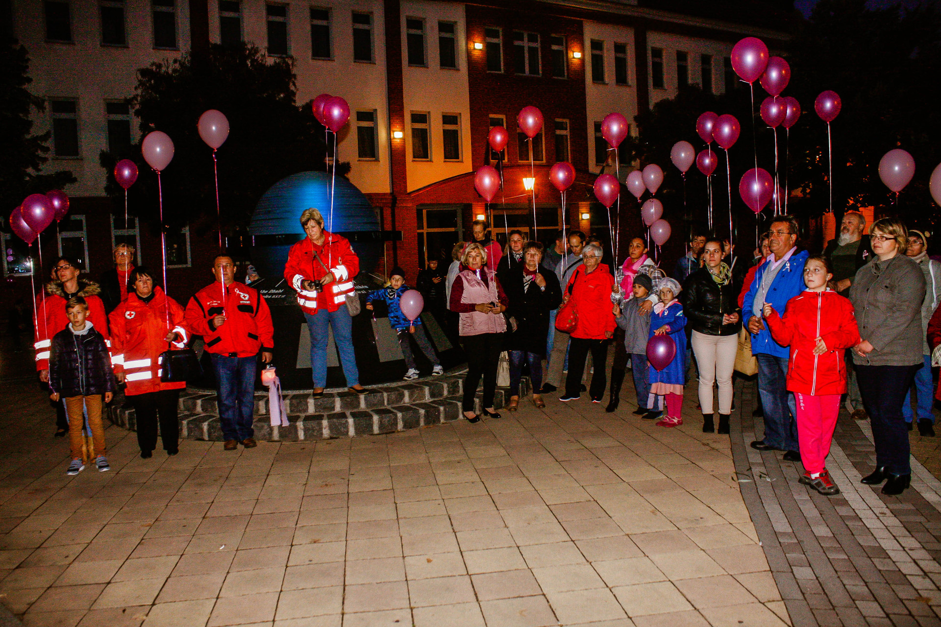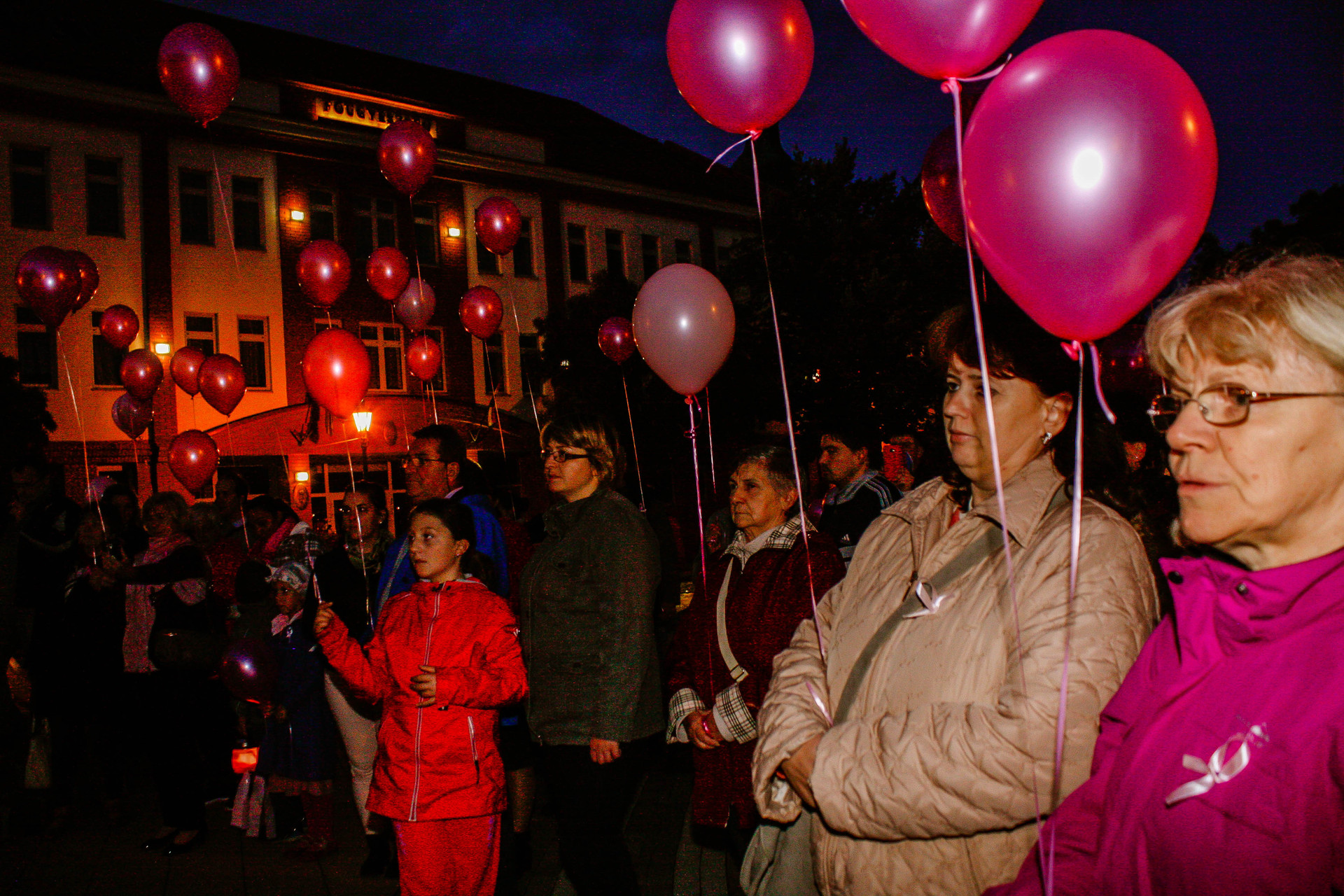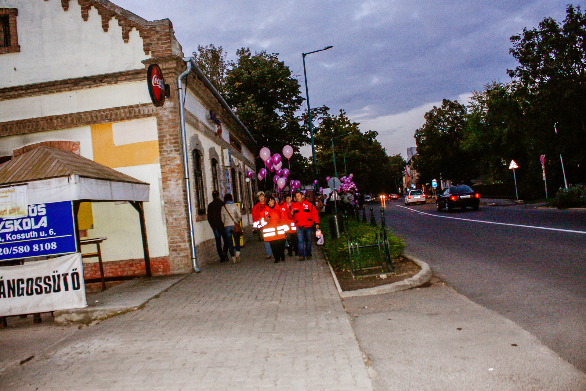 A résztvevők rózsaszín léggömbökkel sétáltak a Világóráig