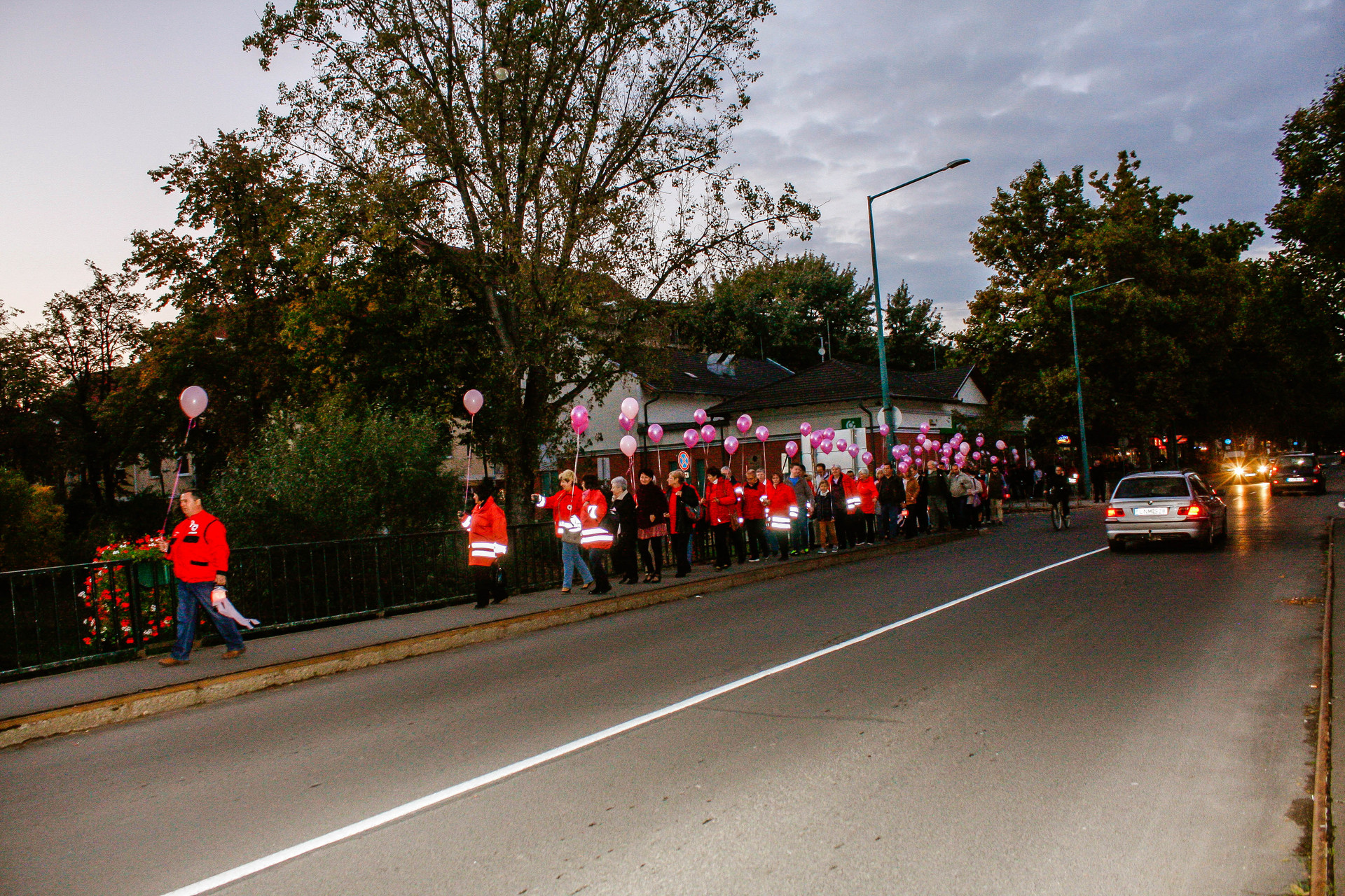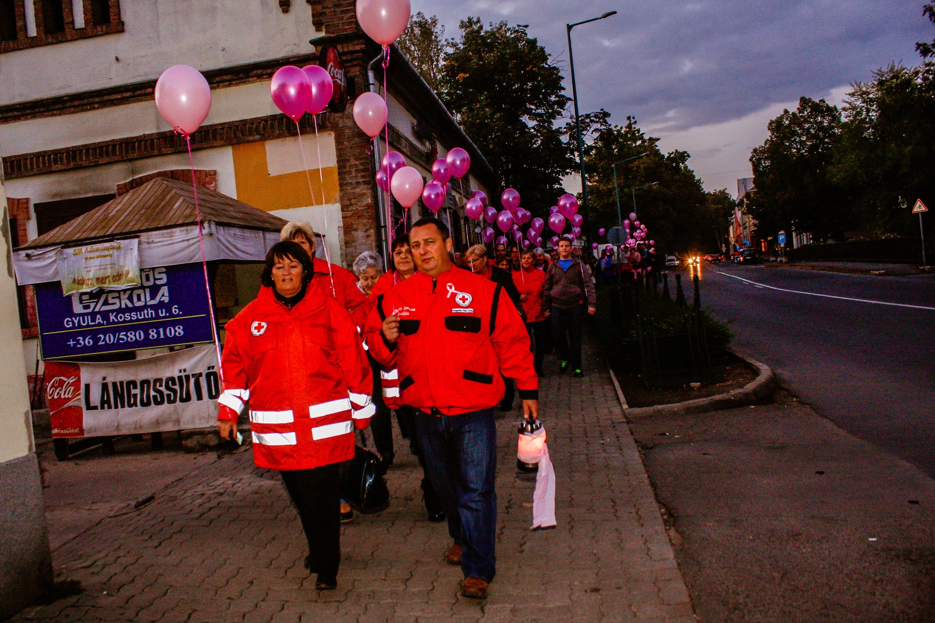Délután 6 órakor vette kezdetét az úgynevezett Gyulai Hídi Séta. A jelenlevők a belvárosi hídon át jutottak el a Világóráig, ahol idén is sok-sok rózsaszín luftballon szállt a magasba a mellrák elleni küzdelem jelképeként.