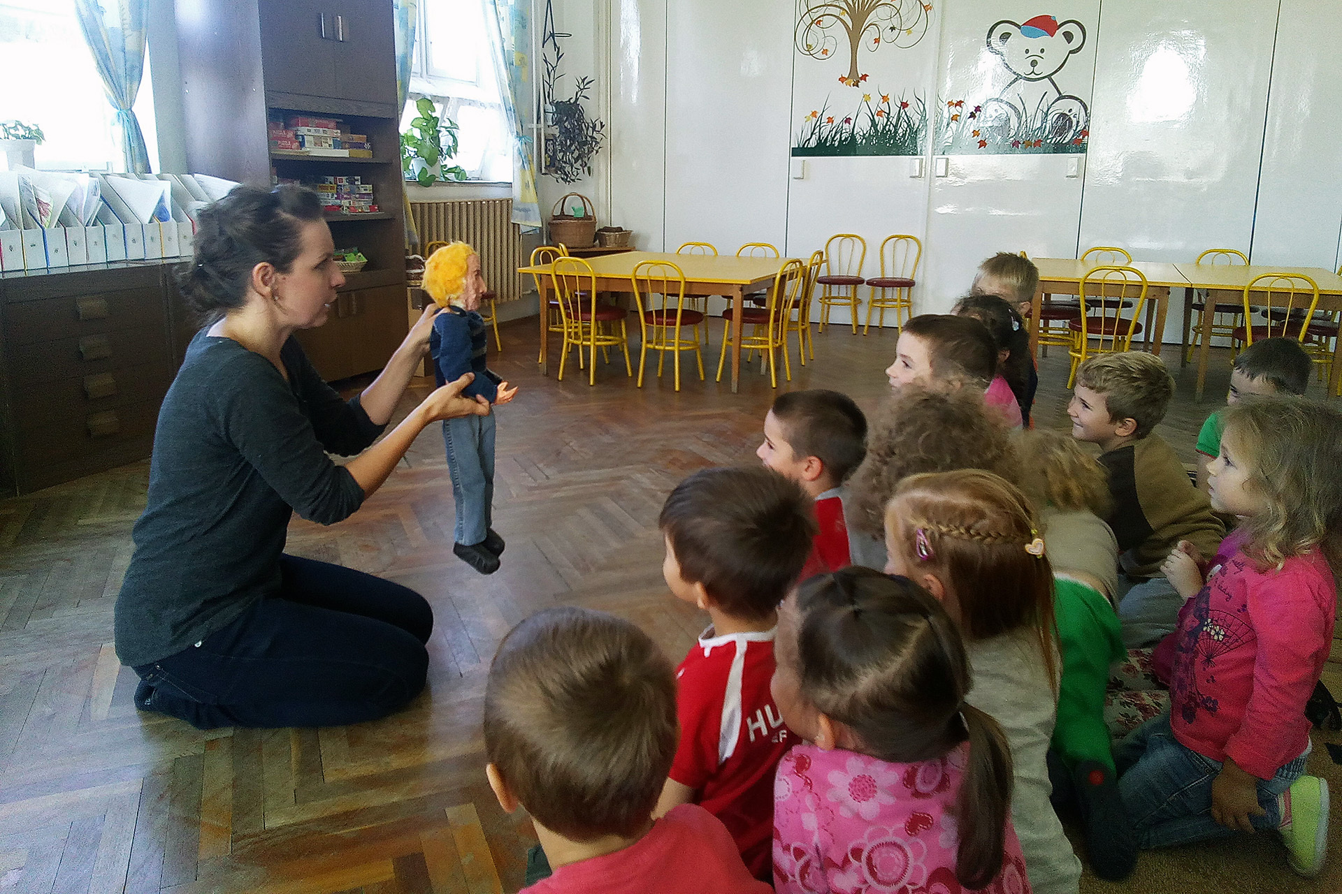 Az óvodások két csoportban hallgathatták meg a háromszereplős bábjátékot Sovák Anna előadásában, aki szerepjátékokkal, körtáncokkal és kérdezz-felelek játékkal járta körbe a témakör legfontosabb kérdéseit. Szó esett arról, miért fontos tanulni, ahogy arról is, hogy minden munka értékes, az érte kapott fizetéstől függetlenül. Mindezeken túl azt is igyekeztek átadni a kicsiknek, hogy a jól kiválasztott foglalkozást igenis lehet szeretni, és érdemes is, ha ez ember boldogságban akar élni.