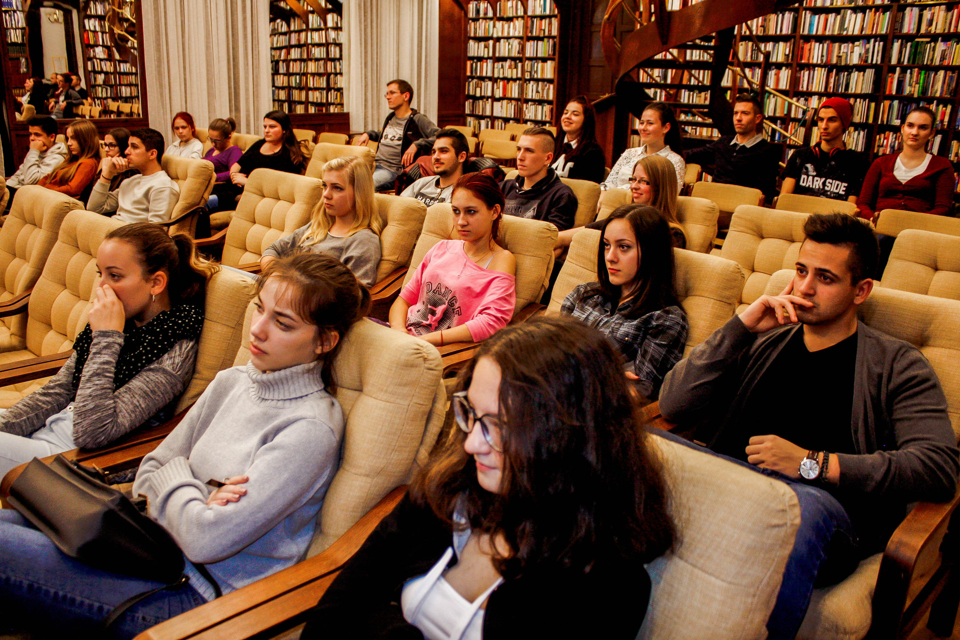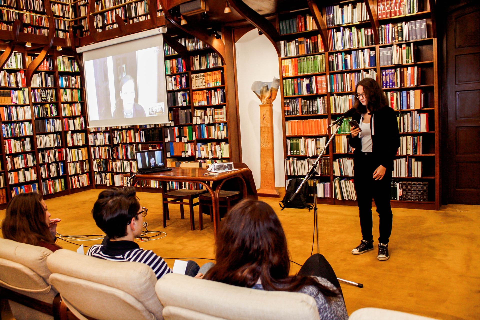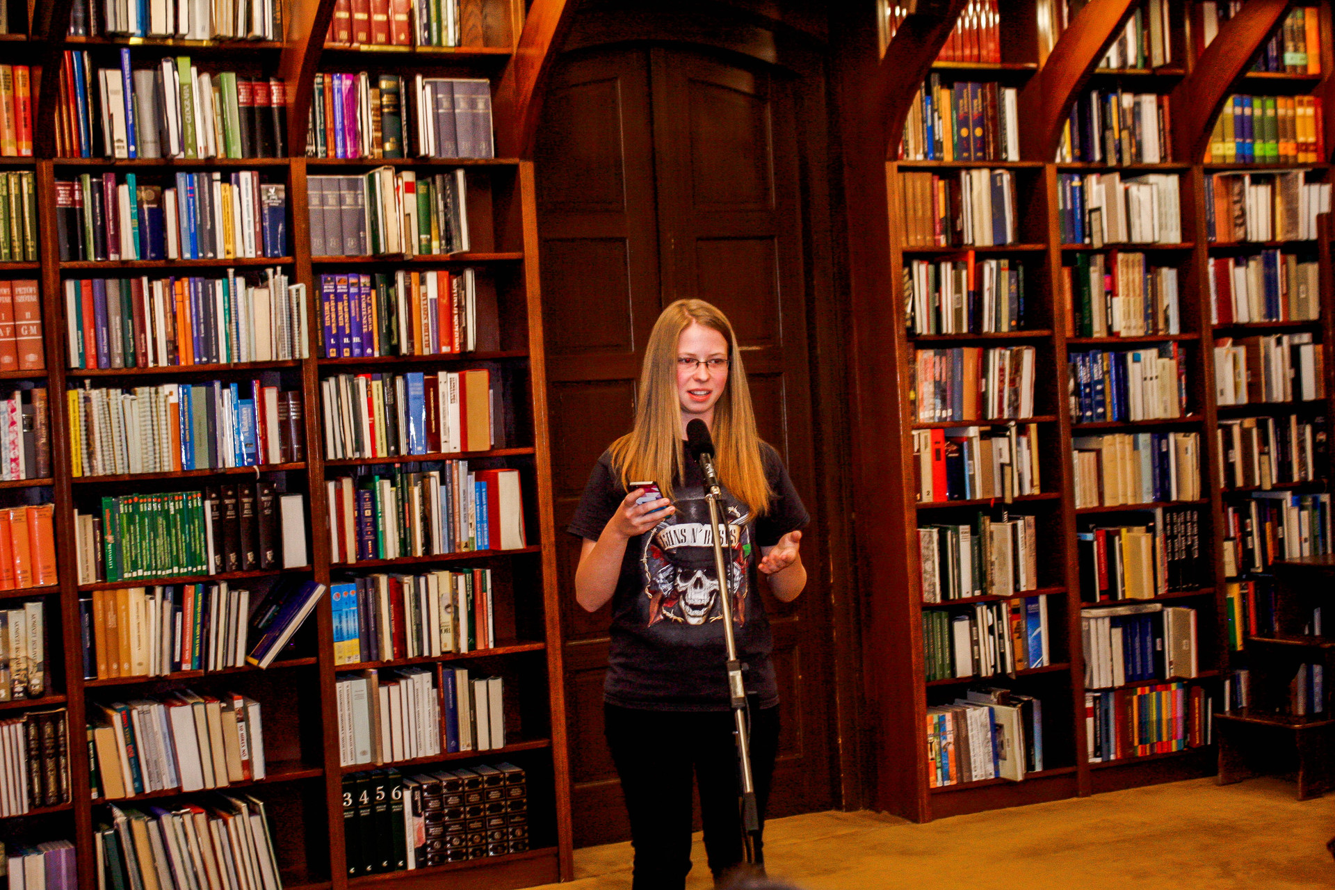 A szövegek pörgősek, kortársak, fiatalok, tetterősek és kíméletlenül aktuálisak. A feltörekvő generáció, az Y-ok ez alaklommal is remek gondolatokat hoztak. Bencze Gréta (Gré), Borgulya Luca (Luxli) és Szabó Ágnes (Ági) töltötték ki az online-jelentkezést, előadásukon felbuzdulva a helyszínen vállalták a megmérettetést Hrubák Axel (Axel H. Being) és Sallai Nikolett (Niki). Az előzetesen jelentkezett lányok mindhárman első slammelők voltak, és bátran állíthatom, kitettek magukért, igen erős szövegekkel léptek posztóra. Az újságíráson szocializálódott, városi diákéletben igen aktív Gréti Társadalmi tükör címen adta elő gondolatait. Rögtön az ismert elemek kerültek előtérbe: facebook, chat, insta, otthonülő fiatalok, teljesen érdemtelenül gép előtt töltött órák, kiüresedett és őszintétlen társadalmi kapcsolatok, széthullott személyiségű tinik, hobbialkoholisták, újgazdagság és huncut önirónia. A viráglelkű, képzőművészet iránt fogékony Luca szerényebb, szerelmesebb, ugyanakkor reménytelenebb, cím nélküli szövege is szívembe markolt. Jelezte számomra, hogy ezek a fiatalok igenis nagyon mélyen és hihetetlenül magukra hagyva éreznek, töprengnek, szenvednek, és legfőképpen intenzíven szeretnek. Kiírták homlokukra, hogy HELP! A kutyák nagy szerelmeseként és intelligens lázadóként ismert Ági ennek megfelelően erősebb hangvételt ütött meg Ti című slamsoraiban, sokkal erélyesebben bánt az obszcenitással, amely lassan be kell látnom, a slam része, eleme, kelléke, tartozéka, akár tetszik, akár nem. Ezek a fiatalok tényleg így beszélnek, őszintém, tisztán, világosan és kegyetlenül. Az általában sötét szíveket magára öltő Niki ugyancsak a totális kiüresedés mezsgyéit pedzette, pedig tehetséges verselő, slammer és aranytorkú énekes, aki több eseményen bizonyította már, hogy milyen finom lelke van. A Nagy Bumm, a katarzis, jól időzítve a végén került fülkagylóinkba. Az első, külső látványra kemény és szigorú Axel a kedvenc esti mese olvasóinkat megszégyenítő hangszínben adta elő szövegét. A Sátán száma a kereszten jellemzően a fiatalok lelkében uralkodó diszharmóniát hivatott bemutatni. Mobilból való hagyományos felolvasása egyértelműsített másik szövege sorait, miszerint A tévhit szilárdan áll.