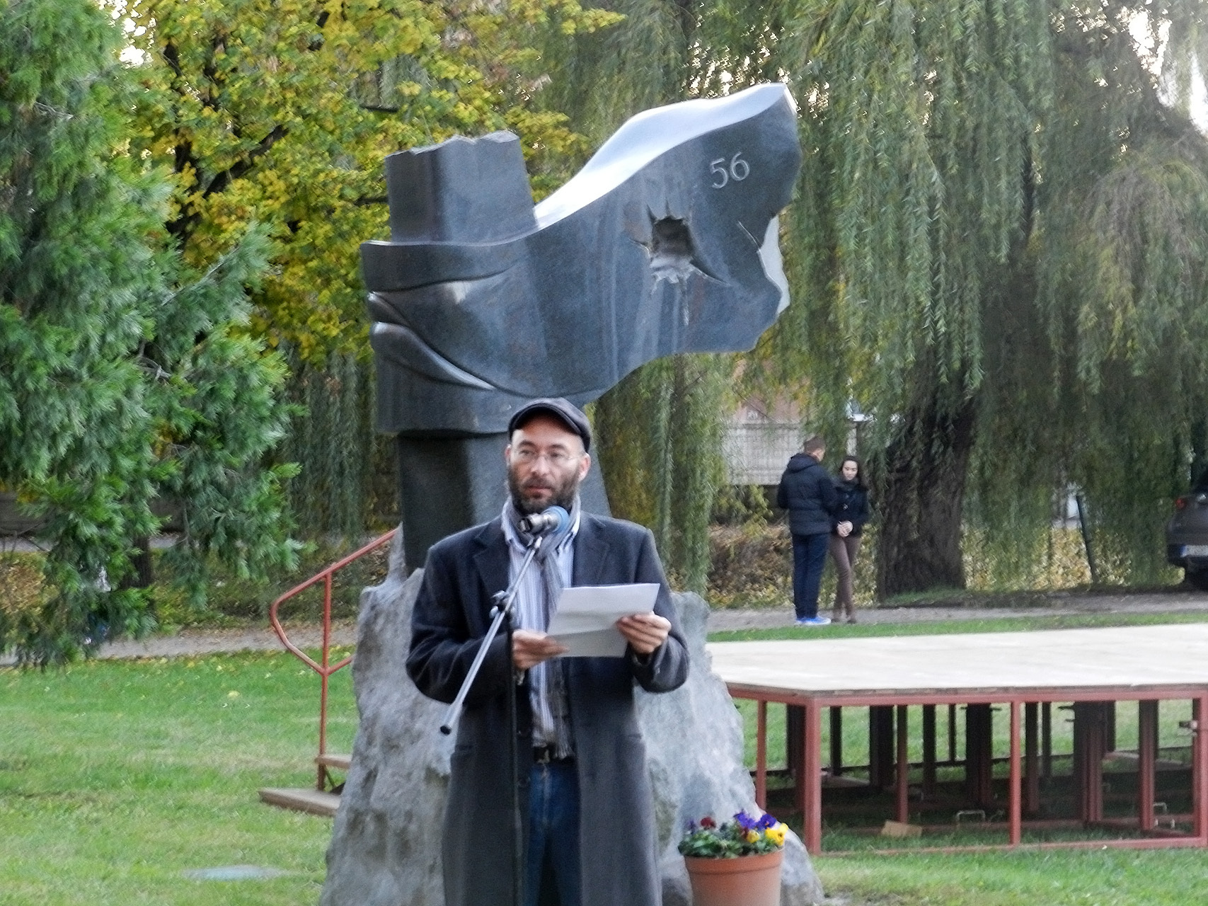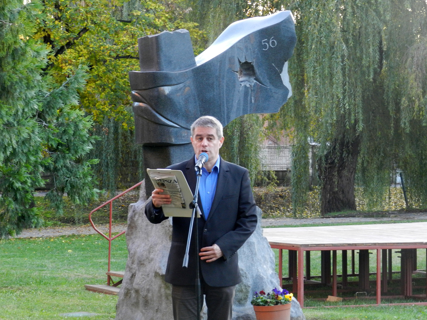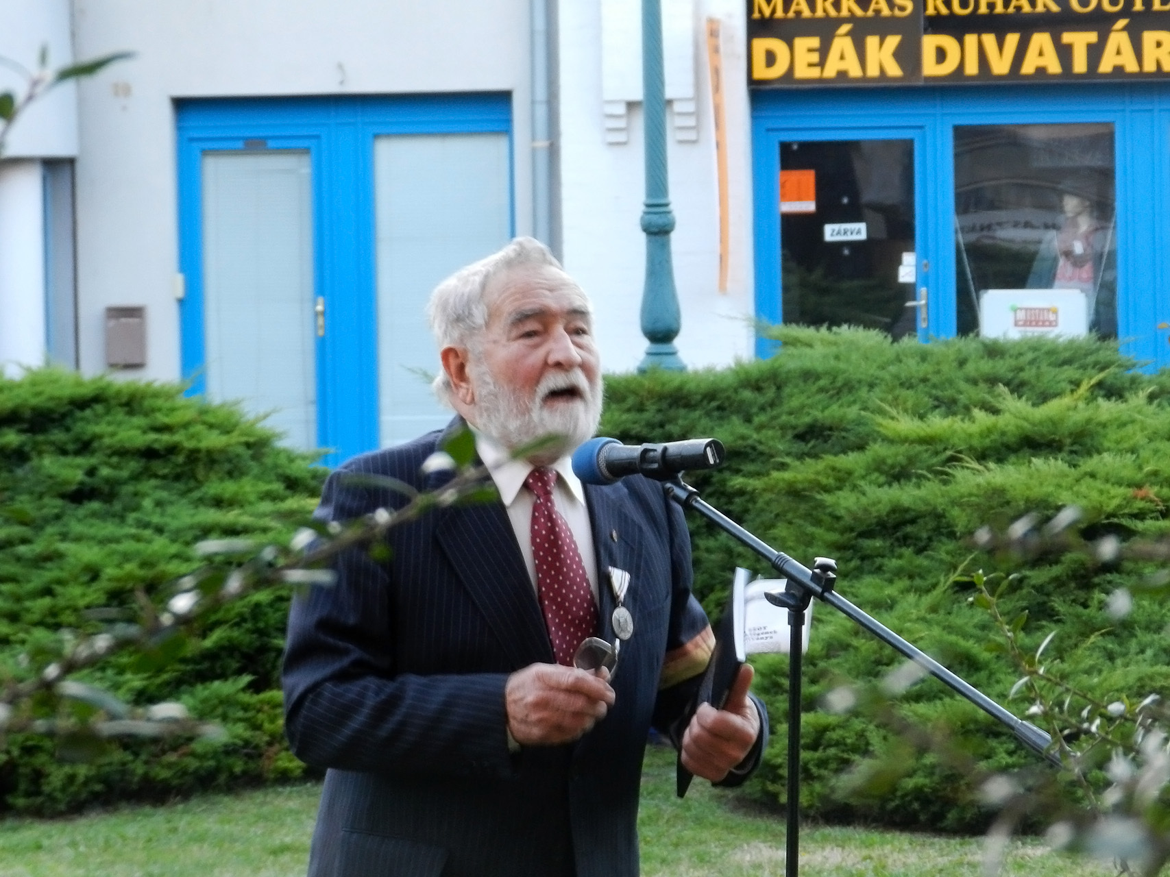 Czene Ferenc a forradalom kitörésekor együtt vonult a diákok tömegével a fővárosban. Szerinte a mai rendszer megbukott, és nem hallja meg azt, amit a nép szeretne. Mindössze húsz éves volt, amikor az egyetemi ifjúság közé csöppent október 23-án, és a tömeg első sorában vonult. Visszaemlékezett arra is, hogy az utcákon dobozok voltak kihelyezve, amelybe pénzt gyűjtöttek, hogy segítsék a forradalmat. Jelképesen elhelyezett egy dobozt az emlékműnél, egyben felhívást intézett, hogy hajtsa végre a nép ugyanazt, mint akkor: gyűjtsenek, majd a megfelelő emberek használják fel arra, hogy a sajtószabadság és az ország szabadsága helyreálljon.