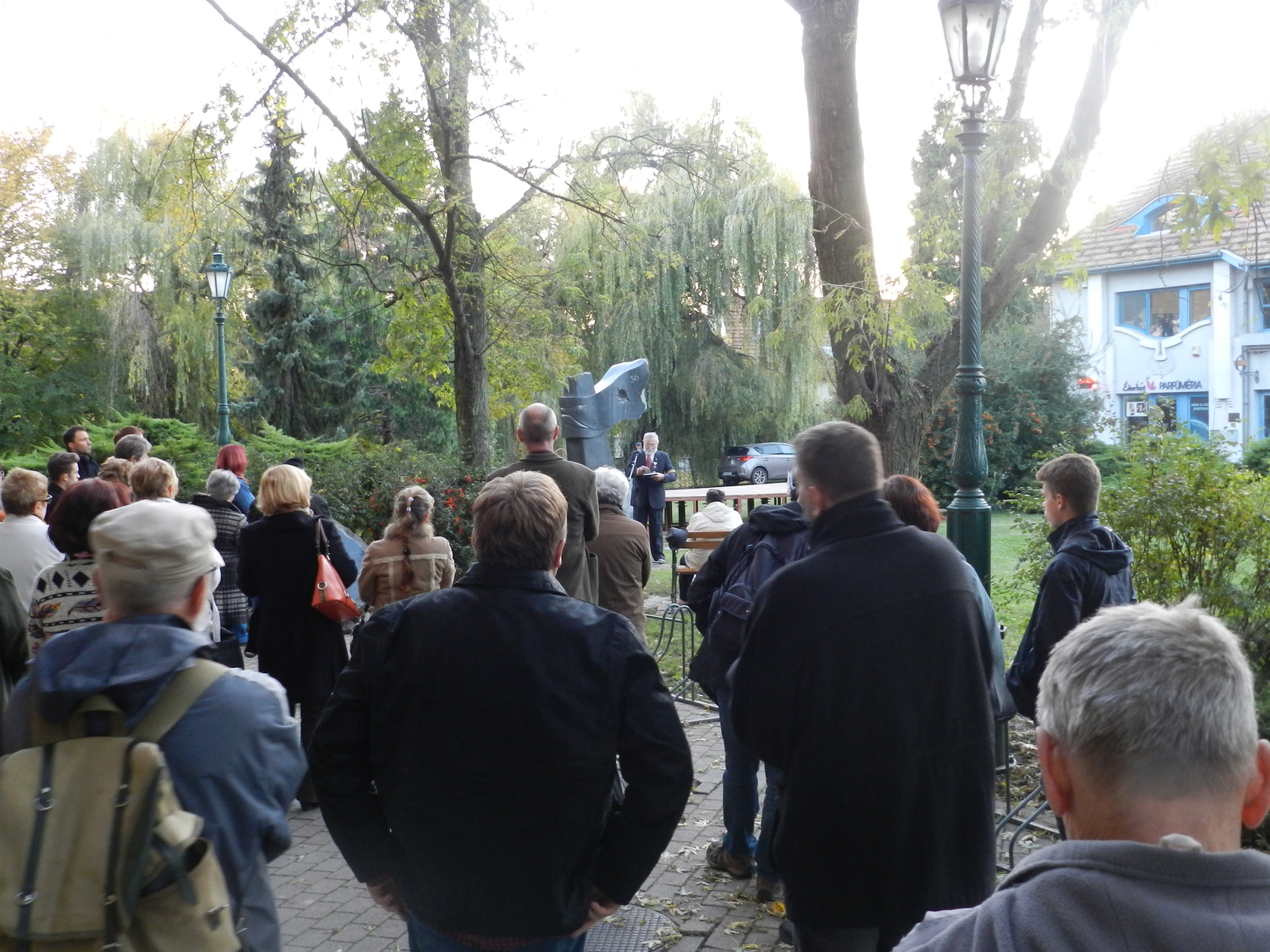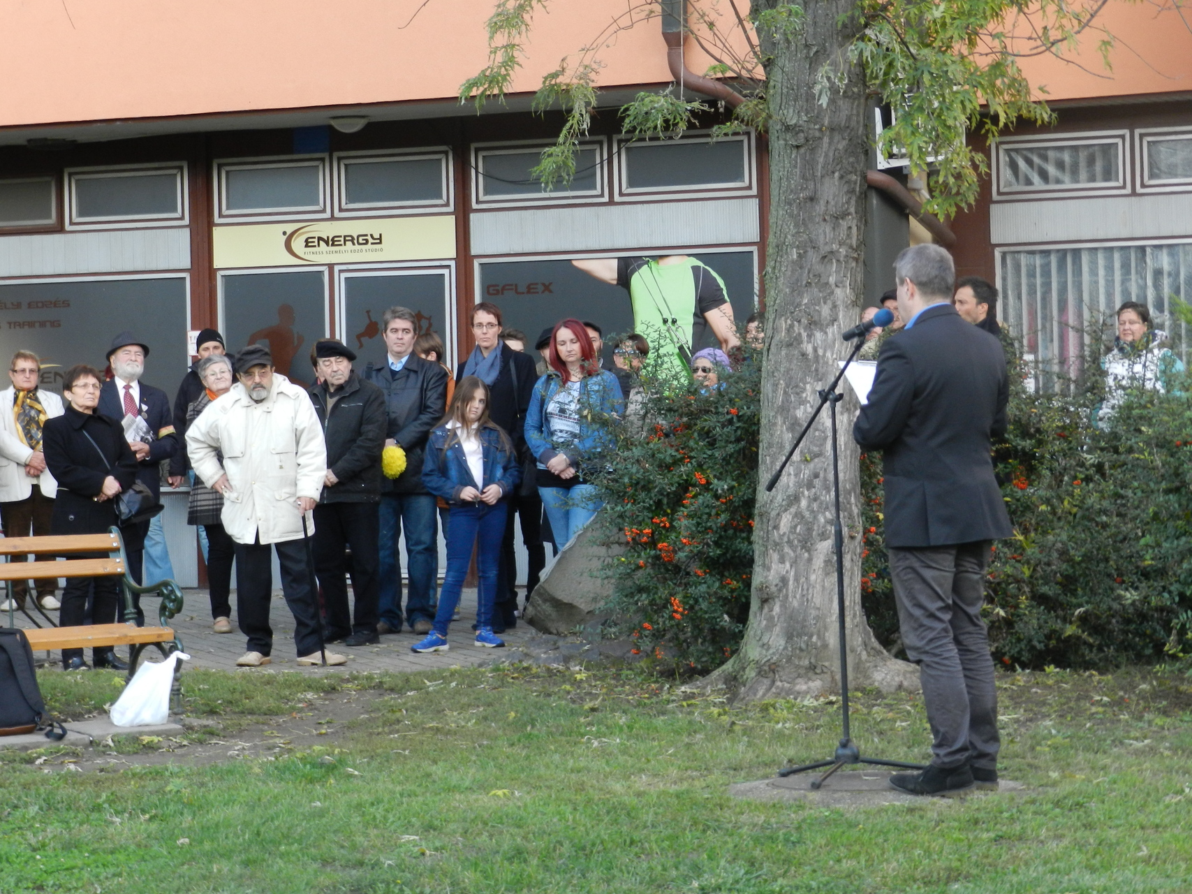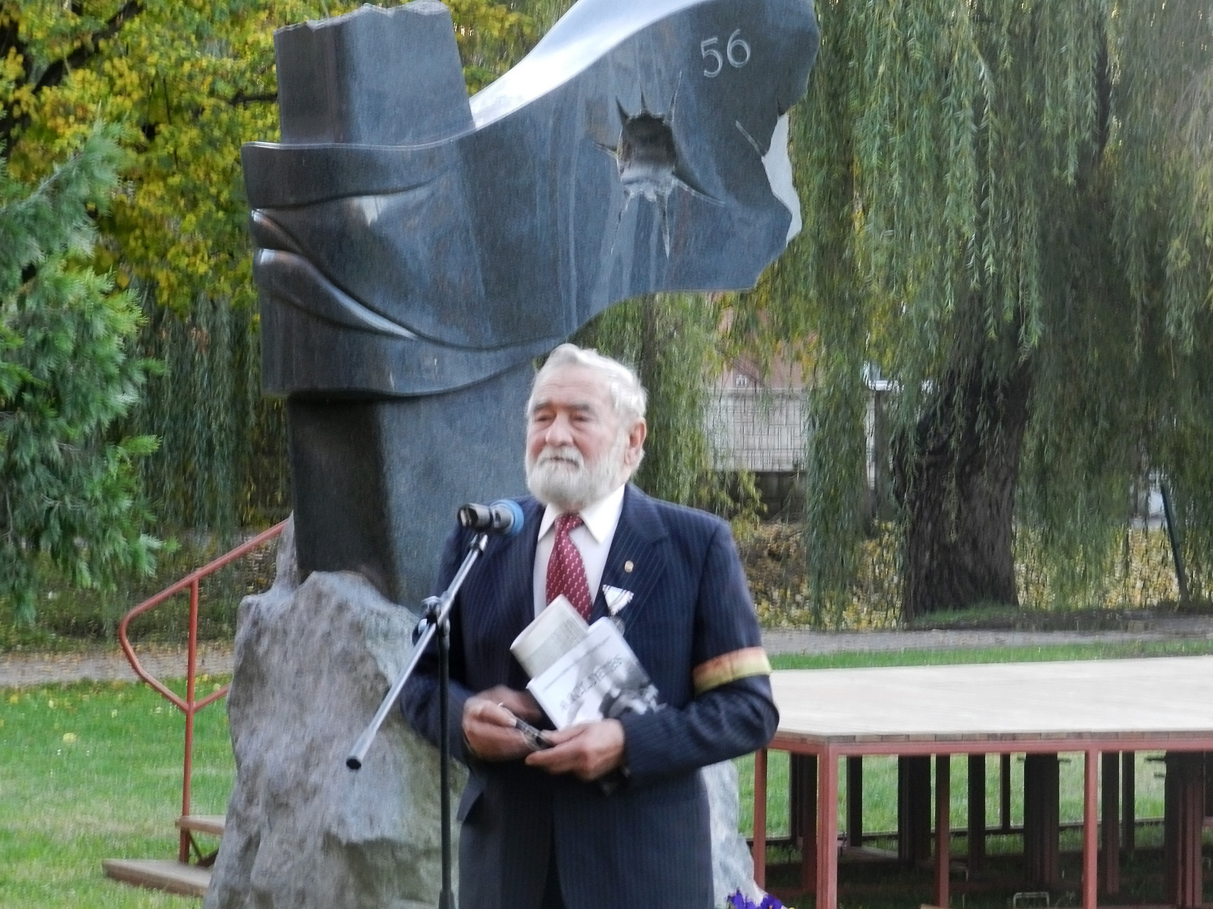 Czene Ferenc a forradalom kitörésekor együtt vonult a diákok tömegével a fővárosban. Szerinte a mai rendszer megbukott, és nem hallja meg azt, amit a nép szeretne. Mindössze húsz éves volt, amikor az egyetemi ifjúság közé csöppent október 23-án, és a tömeg első sorában vonult. Visszaemlékezett arra is, hogy az utcákon dobozok voltak kihelyezve, amelybe pénzt gyűjtöttek, hogy segítsék a forradalmat. Jelképesen elhelyezett egy dobozt az emlékműnél, egyben felhívást intézett, hogy hajtsa végre a nép ugyanazt, mint akkor: gyűjtsenek, majd a megfelelő emberek használják fel arra, hogy a sajtószabadság és az ország szabadsága helyreálljon.