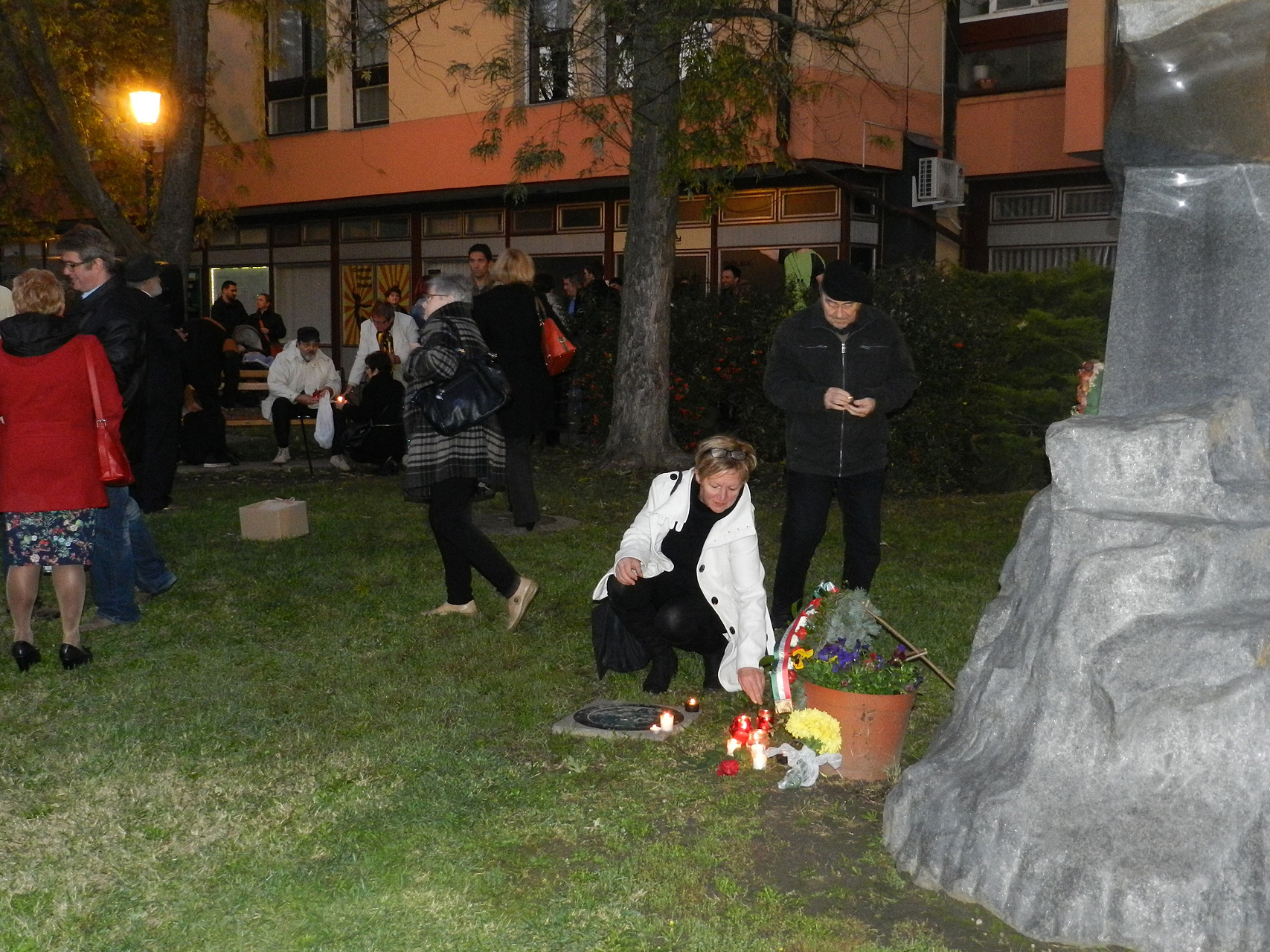 A beszédek végén a négy szónok elhelyezett egy koszorút az 1956-os emlékműnél, az emlékezők pedig mécseseket gyújtottak meg tiszteletük jelélül.