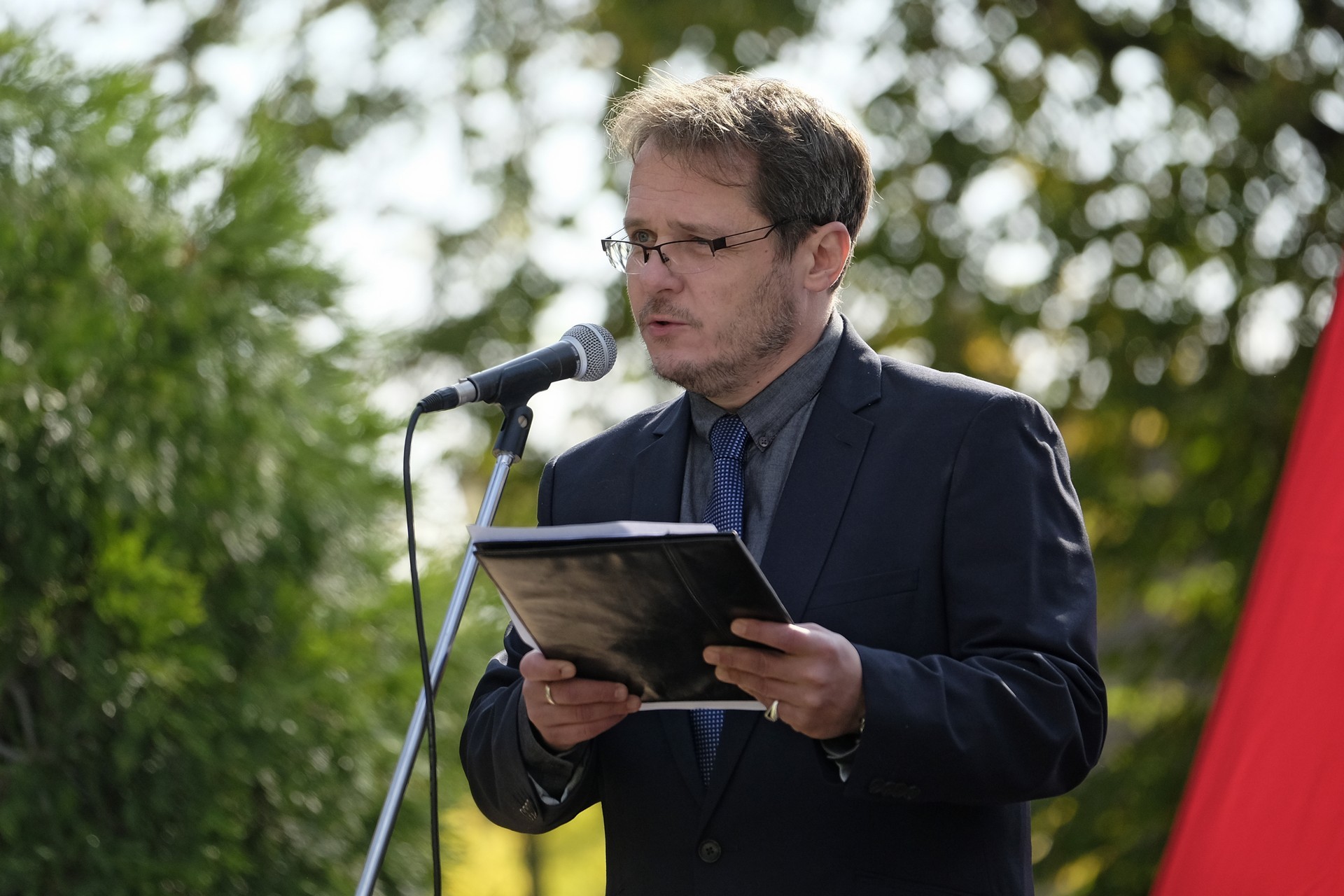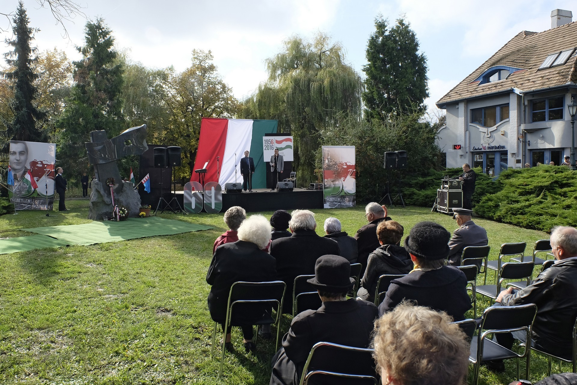 – 1956 őszén már egy évtizede élt elnyomás alatt a nép – folytatta dr. Görgényi Ernő. – Az ’50-es évek nyomorúságos Magyarországán ezernyi baj és gonoszság sújtotta az embereket. Sorolhatjuk azokat a címszavakat, amelyek miatt ezerszámra haltak meg ártatlan emberek, százezrével sínylődtek börtönben bűntelenek, váltak nincstelenné dolgos, becsületes emberek. A nemzet dereka nem hajlott meg az idegen elnyomás alatt. Végül 1956. október 23-án következett be az a történelmi erejű detonáció, amely megrengette a Szovjetunió által irányított kommunista világot.