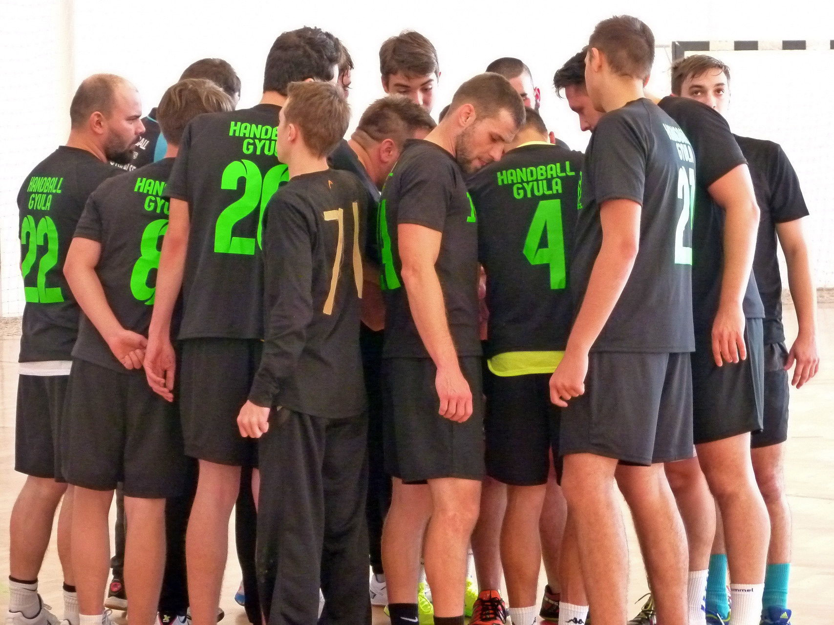 A sérülésekből felépült játékosokkal kiegészült Gyulai SE csapatként készült az egyénileg jobban felkészült vendégek rohamainak megállítására. Ez az első félidőben sikerült is, hiszen a vendégcsapat 4-5 gólnál többel nem tudott ellépni a hazaiaktól, igaz, ők sem tudtak ennél beljebb kerülni. A fekete mezes hazaiak ebben a játékrészben mind védekezésben, mind támadásban tartani tudták a lépést a bajnokesélyes zöld mezesekkel. A csapatjátékon kívül, Csordás, Lapis és Jánk játékát tudjuk kiemelni, de többek játéka csalódást keltő volt. És ez nem a megyei bajnoksághoz képest is gyermeteg hibák vagy az ezúttal gyenge kapusteljesítmény miatt volt, hanem több játékos fegyelmezetlen magatartása miatt.