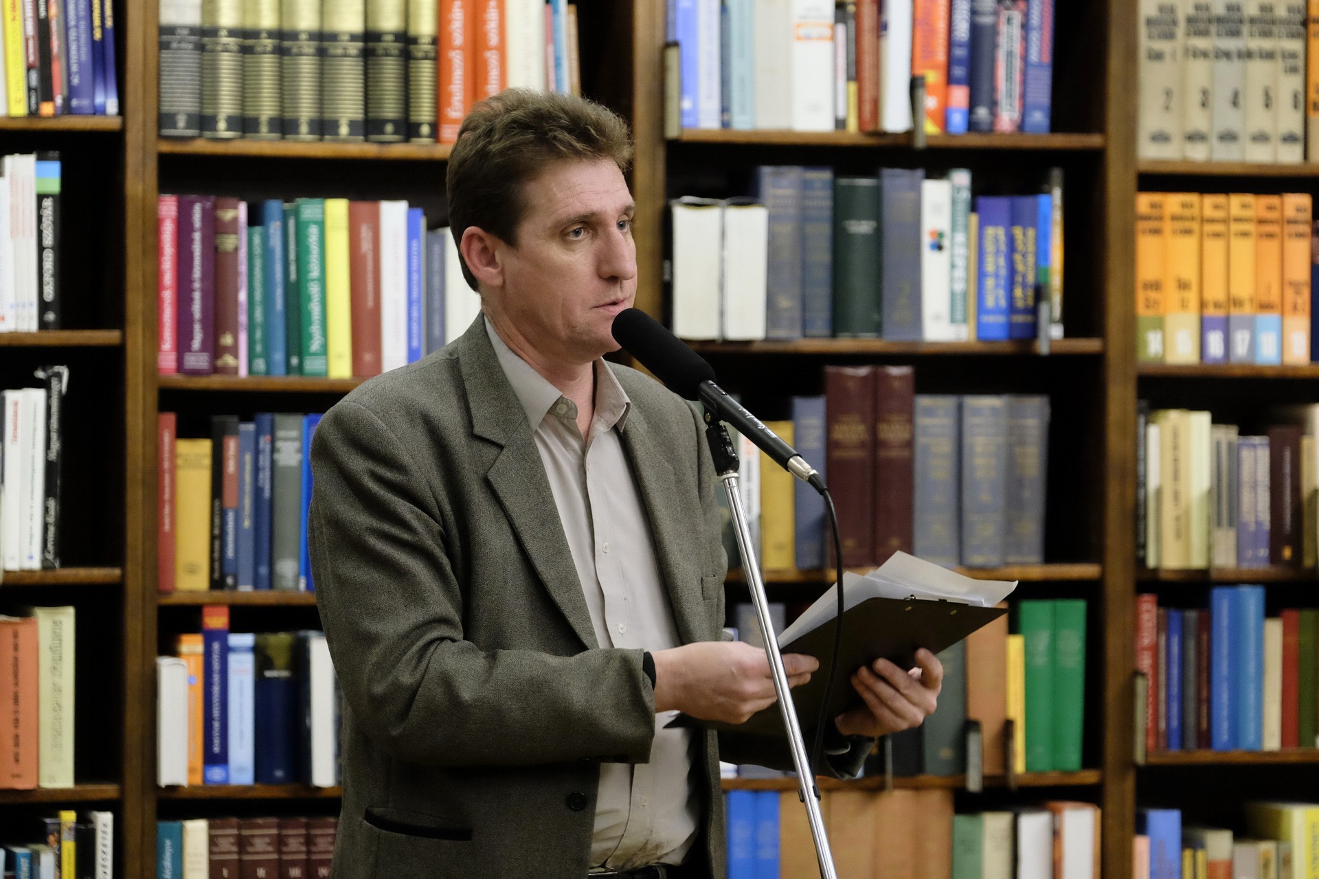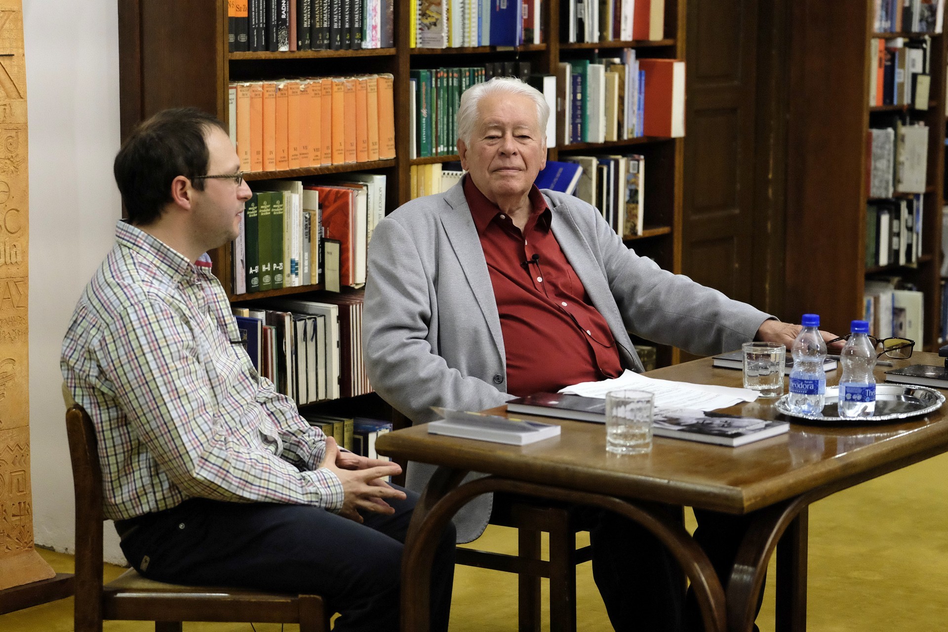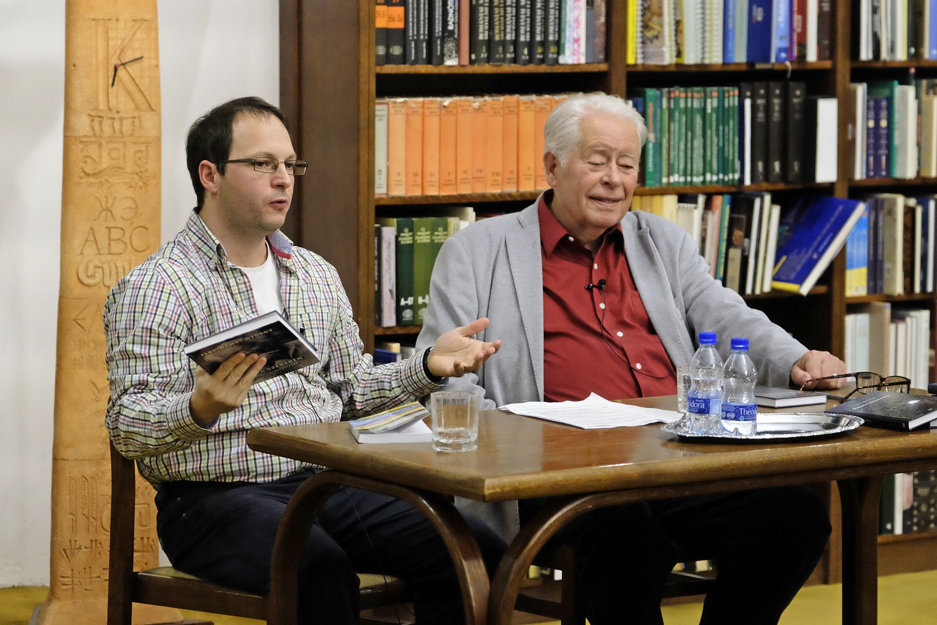 Kiss László és Ferdinandy György a gyulai könyvtárban