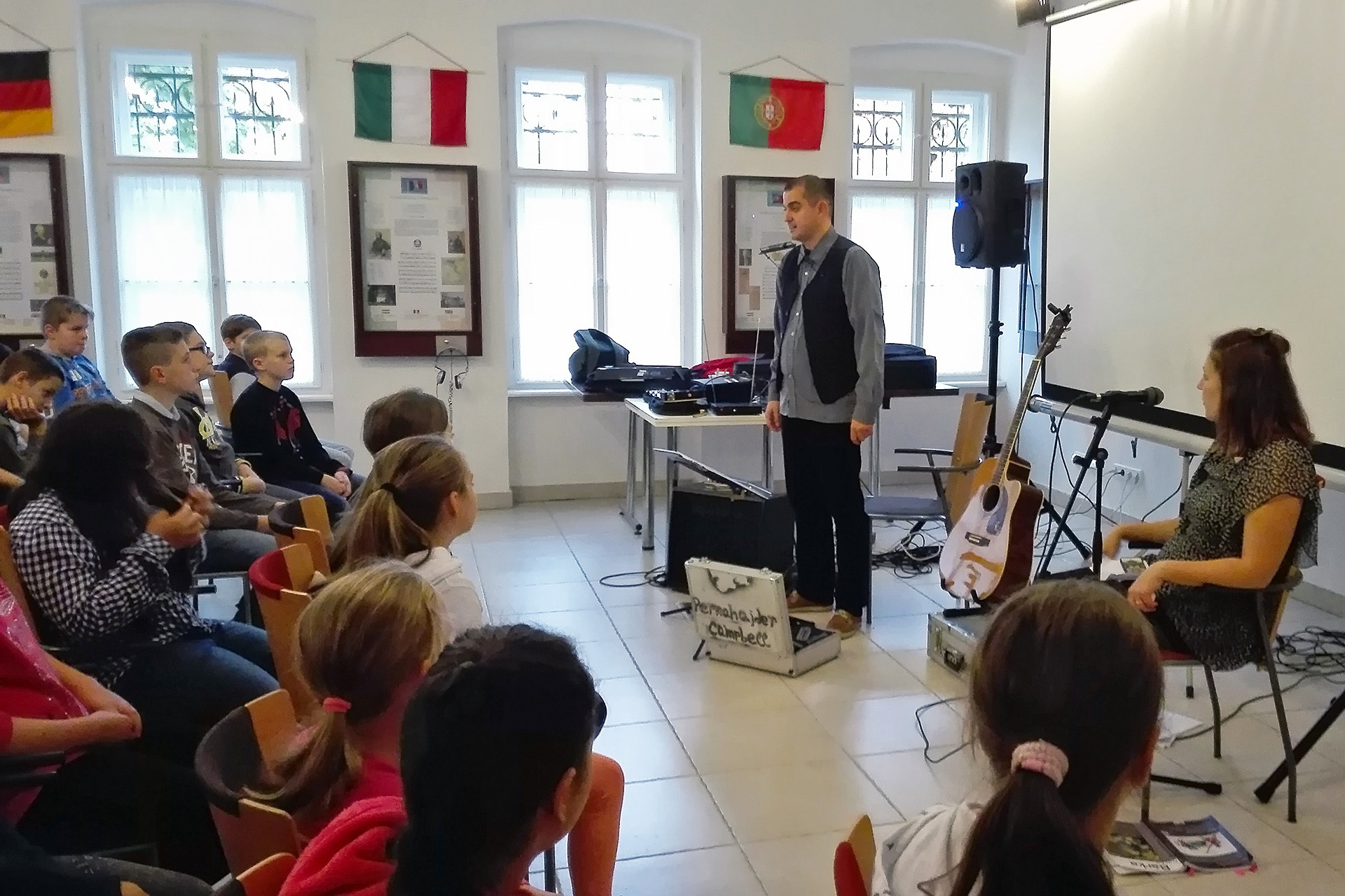 A program második részében Baracsi István és Lovas-Tóth Kata tartottak alternatív irodalomórát, zenés köntösbe bújtatva a verseket, amelyet a diákok nagy örömmel fogadtak.
