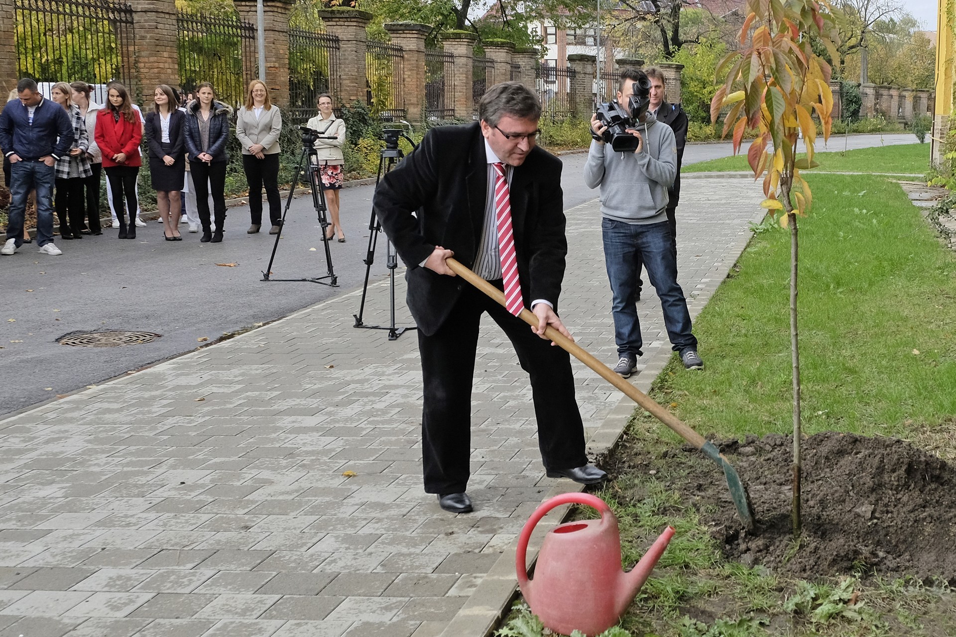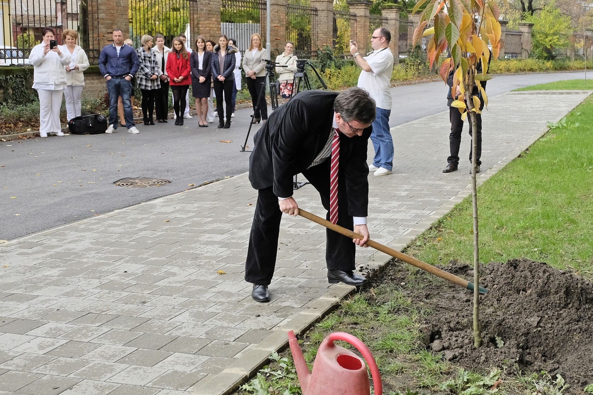 Dr. Dudás Mihály egy fát ültetett a gyulai kórház kertjében