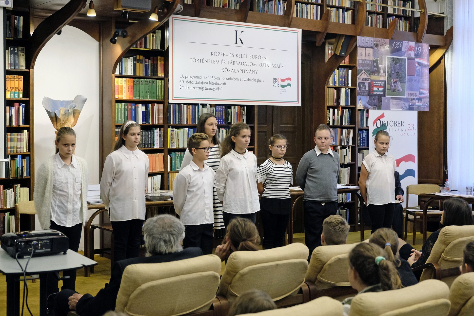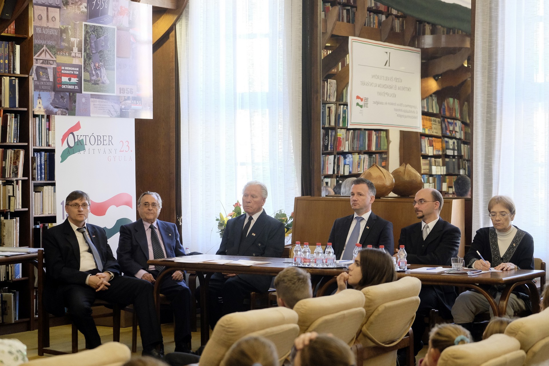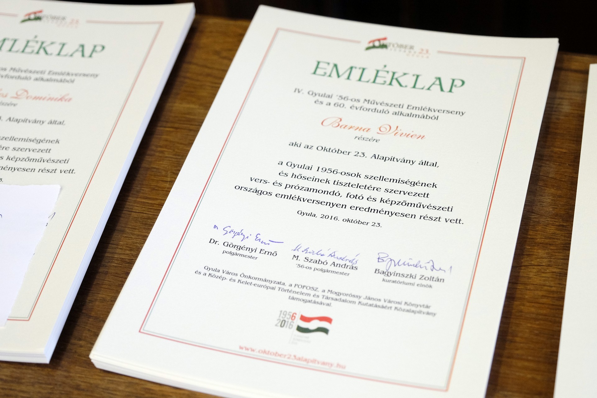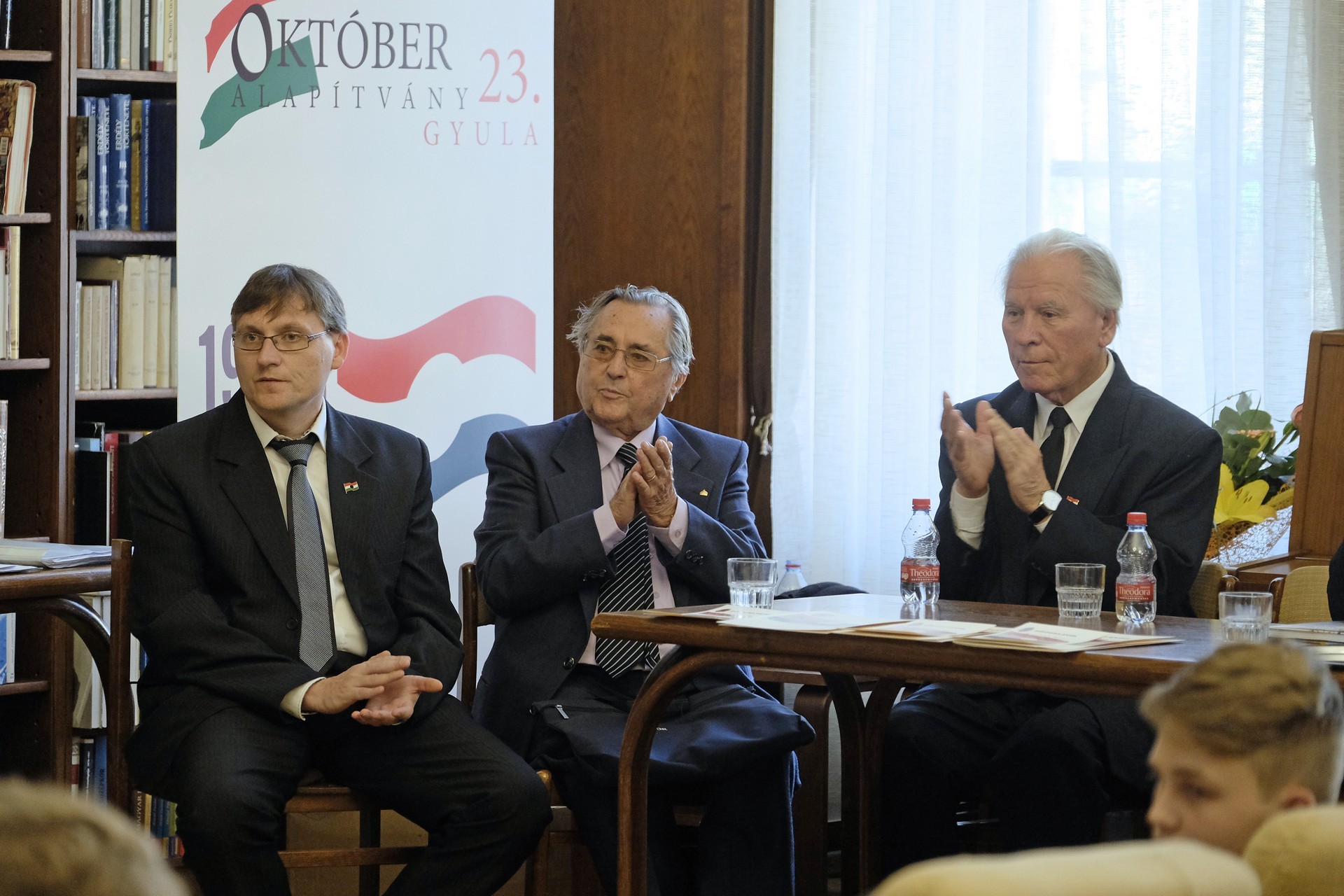 Megtisztelte jelenlétével és segítette a díjátadásban az alapítványt a gyulai élő legenda, az 1956-os gyulai polgármester, M. Szabó András. Bandi bácsi 2006-ban az alapítvány alapító tagjaként, szívügyből lépett újra a történelem színpadára, és életműve ott áll ma is a gyulai emlékezés főterén, az Október 23-a téren. Támogatta jelenlétével az eseményt dr. Görgényi Ernő jelenlegi polgármester is, jelezve a kulturális találkozó rangját és méltóságát. A jelenlévő résztvevőket Bagyinszki Zoltán kuratóriumi elnök köszöntötte, a technikai információkat, a program levezénylését, előkészítését pedig Fodor György kurátor vállalta. Felkérésére verssel nyitotta meg a művészeti emlékversenyt Kóra Katalin Bianka háromszoros Simonyi-díjas, erkeles versmondó, aki Utassy József Pohárköszöntő című költeményét szavalta el. Ezután a már második alkalommal hozzánk látogató, debreceni Abakusz Színjátszó Kör két lelkes tagja (Balogh Zsófia és Tóth László, felkészítőjük: Nánási Sándor) adott elő egy csaknem tízperces egyveleget 56-ot megidéző szövegekből. Ugyanígy felkérésre érkezett a medgyesegyházi Schéner Mihály Általános Iskola volt 8. osztályos tanulóinak diákszínjátszó csapata (felkészítőik: Korcsokné Enyedi Katalin és dr. Ruszné Bódis Edit Mirjam) és a Gyulai Implom József Általános Iskola 6. a osztályának műkedvelő tanulói (felkészítőjük: Szintai Éva), akik színvonalas műsorszámmal zárták az emlékprogramot.
