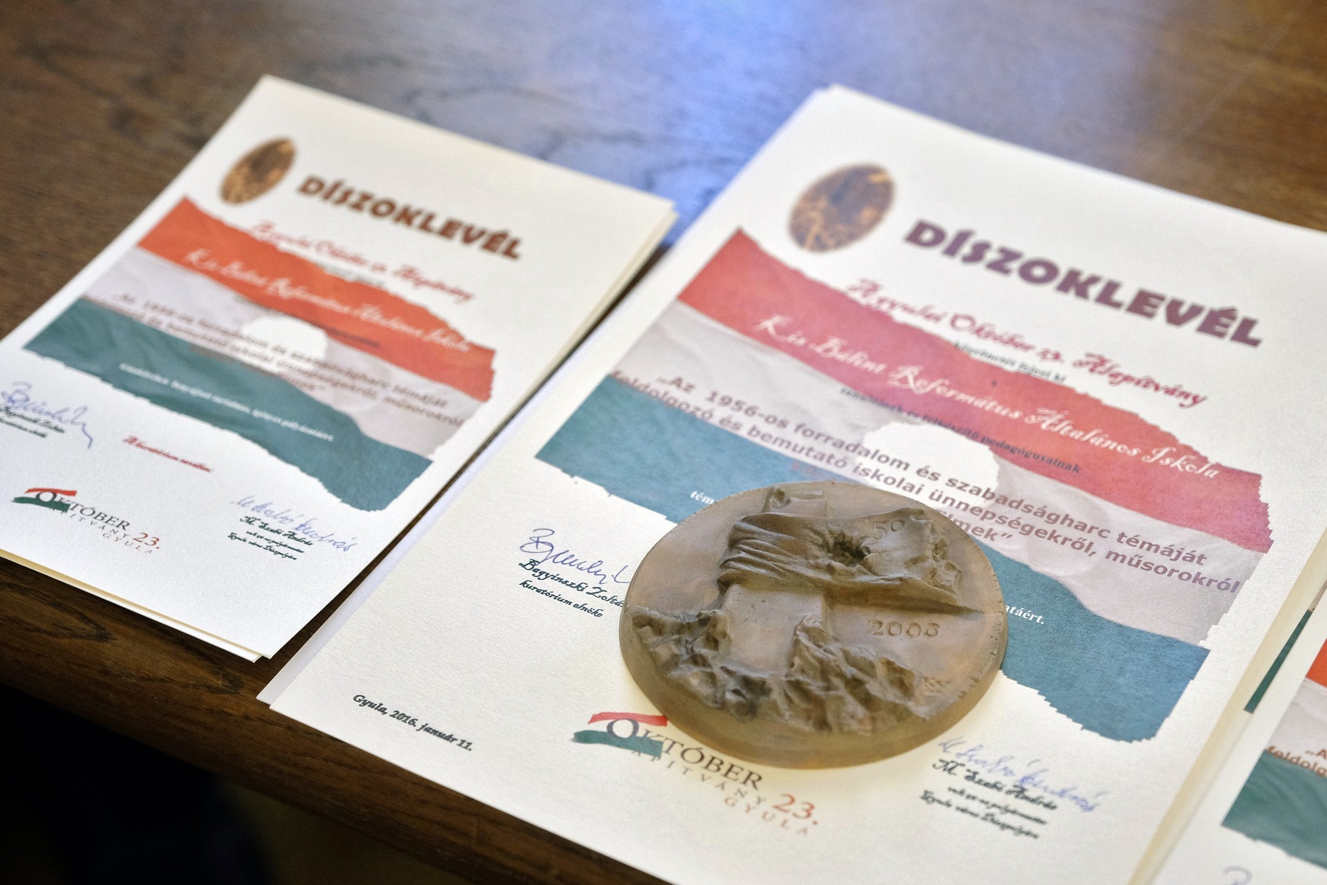 Emlékplakettet kaptak a medgyesegyházi Schéner Mihály Általános Iskola csapatának tagjai, akiket Pataky László kurátor, tanár meghívására fogadott az alapítvány
