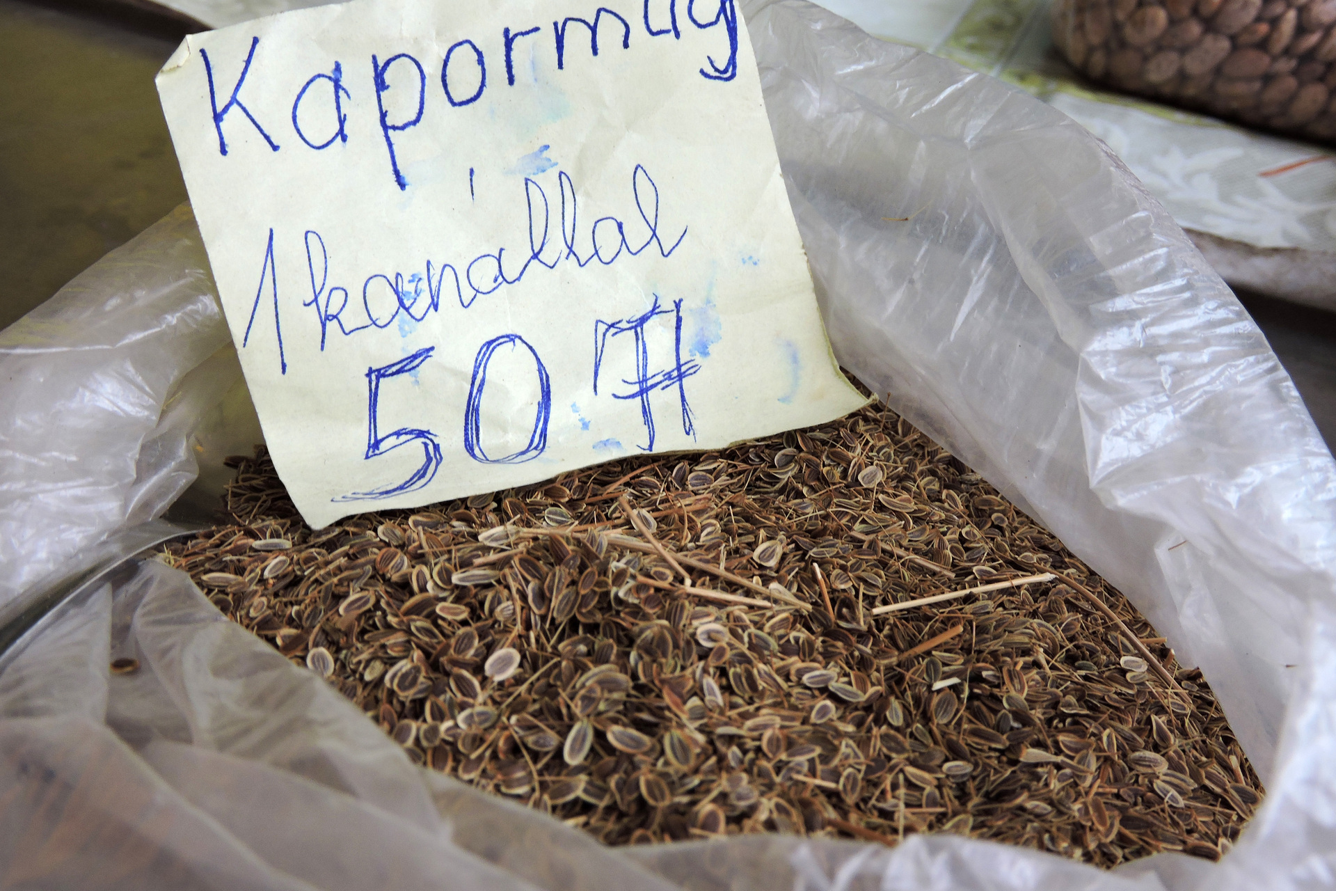 Egy evőkanálnyi kapormag 50 forintba kerül a gyulai piacon
