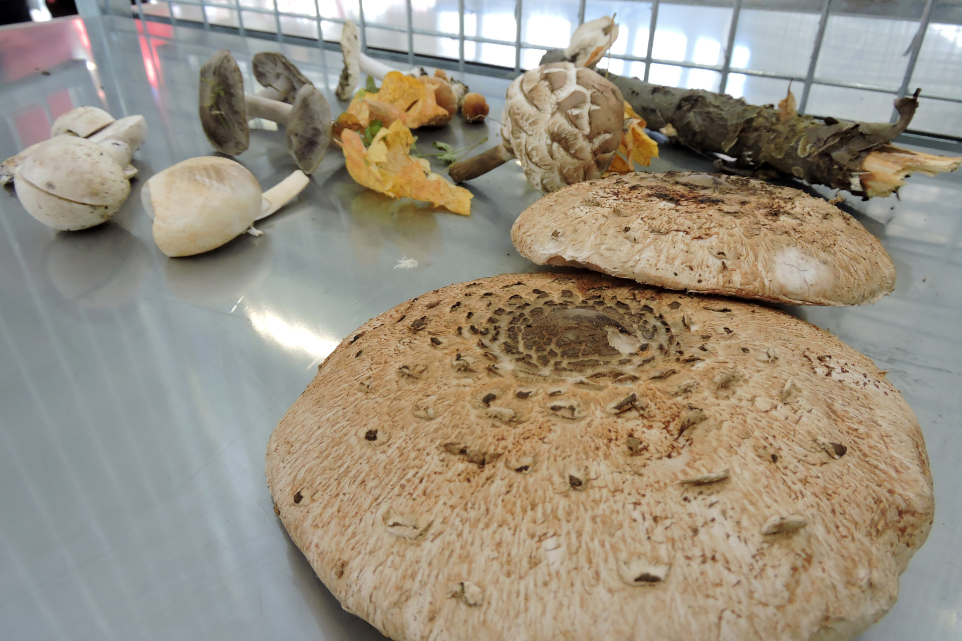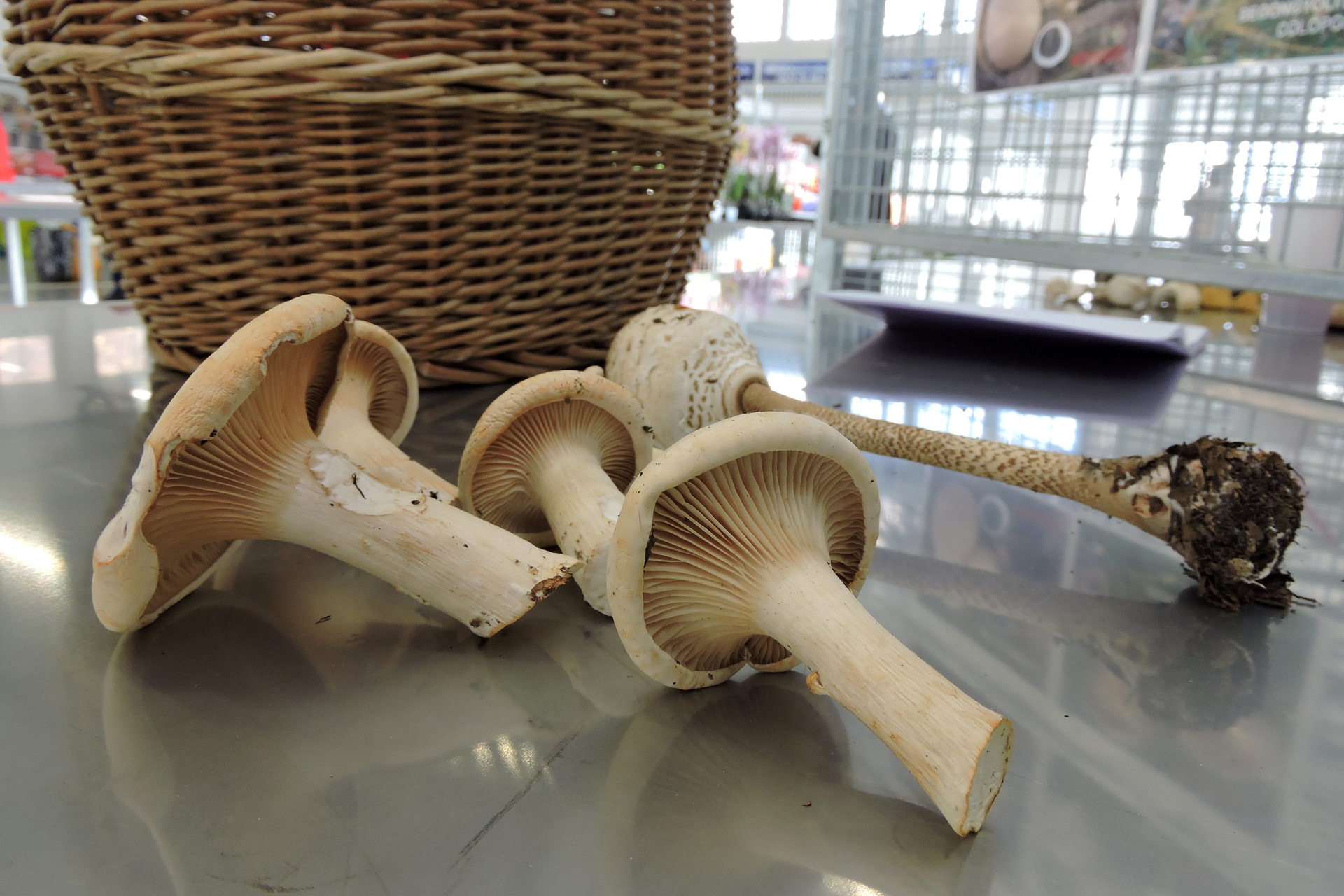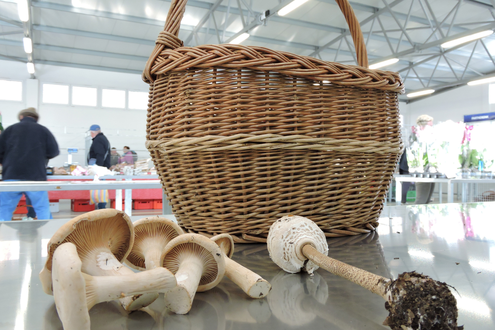 Kocziszky Andrea a gyulai piac vásárcsarnokában vizsgálja be a gombákat