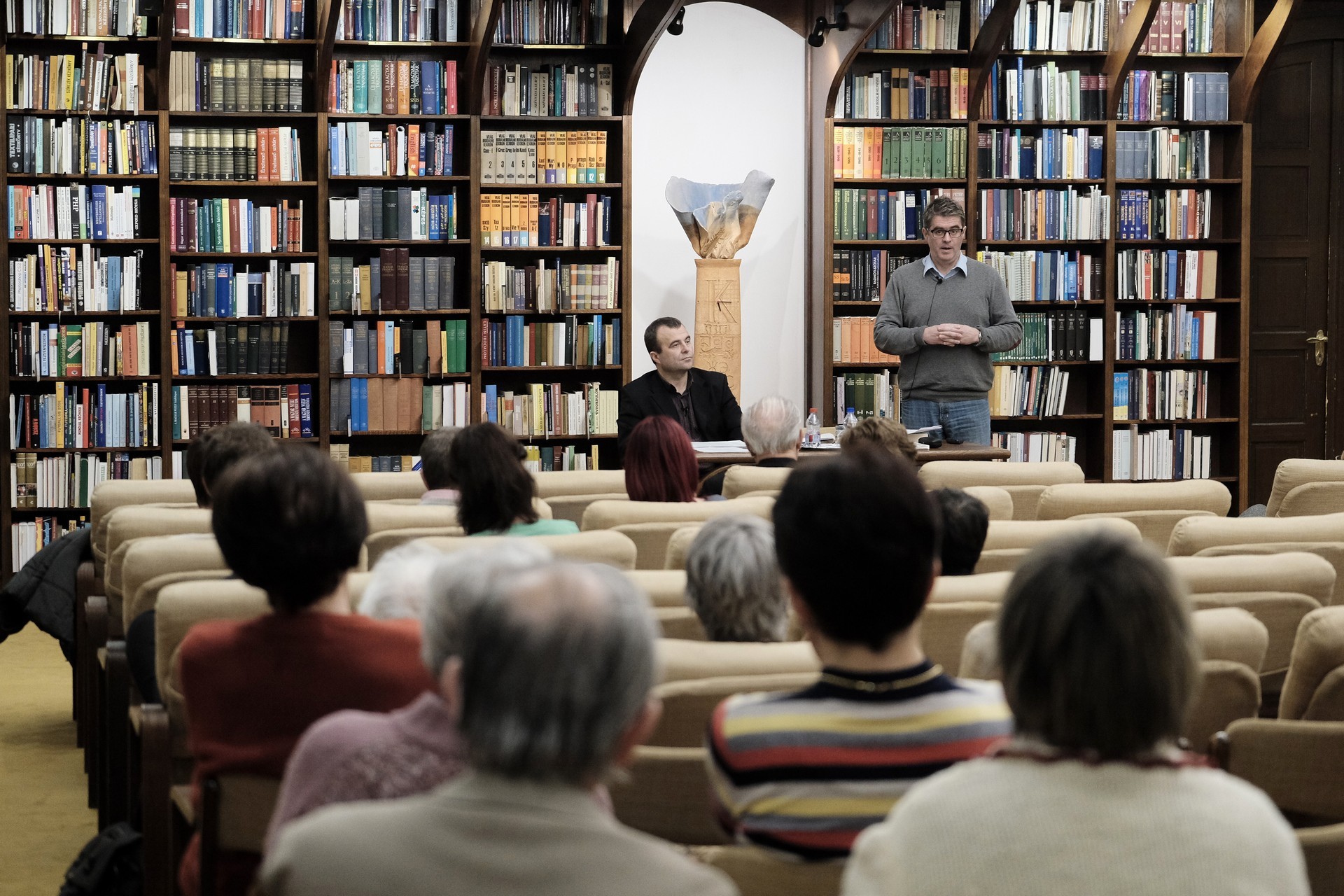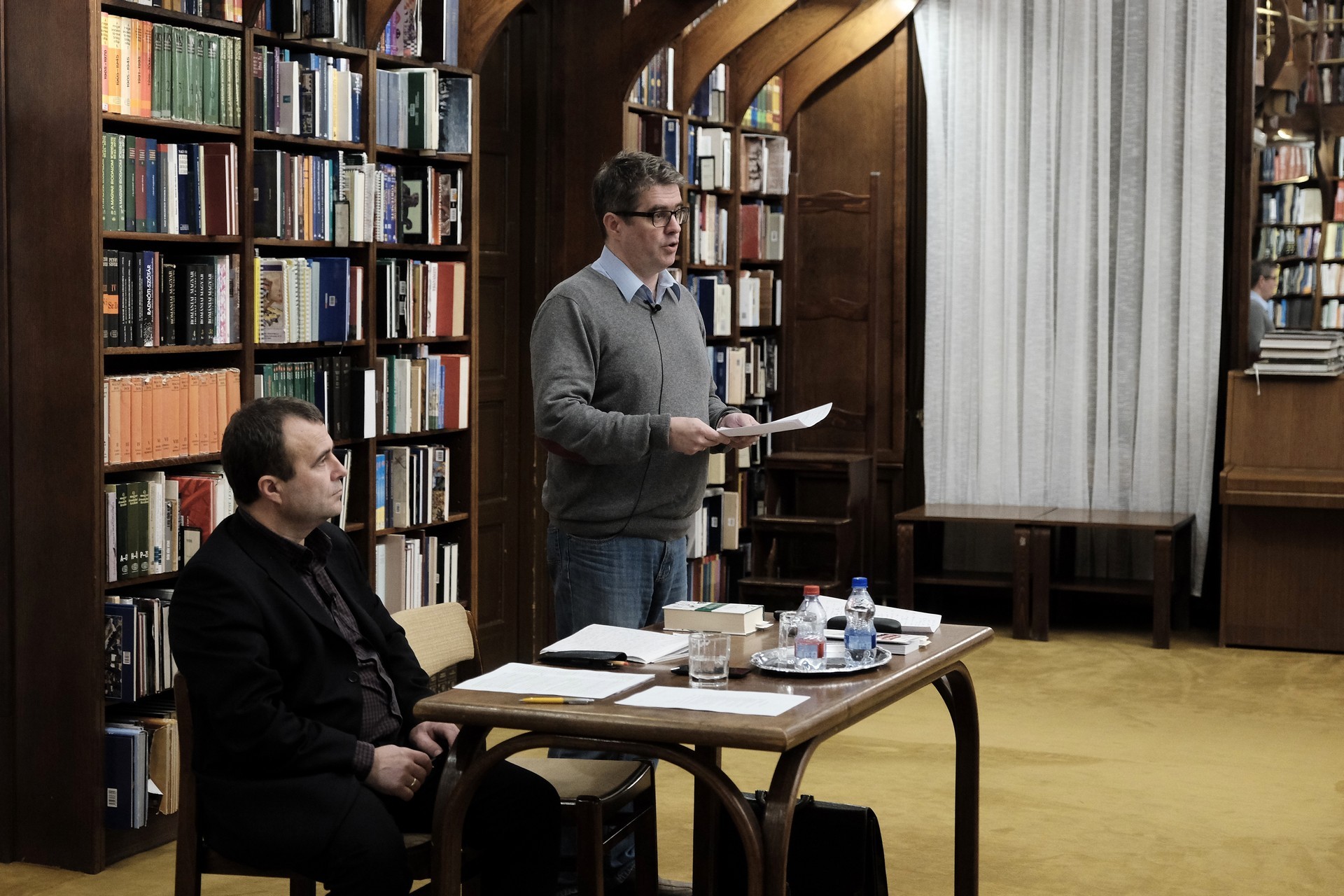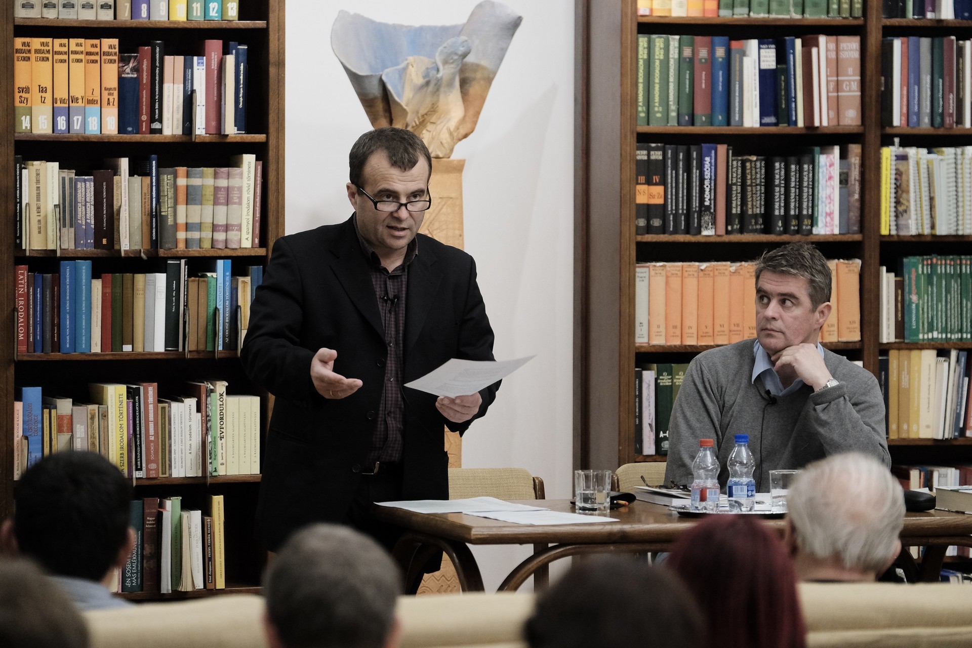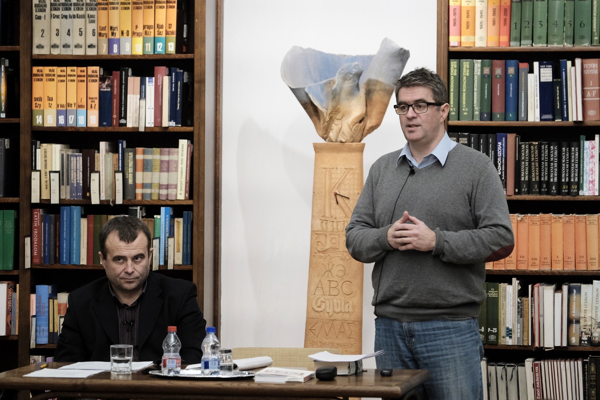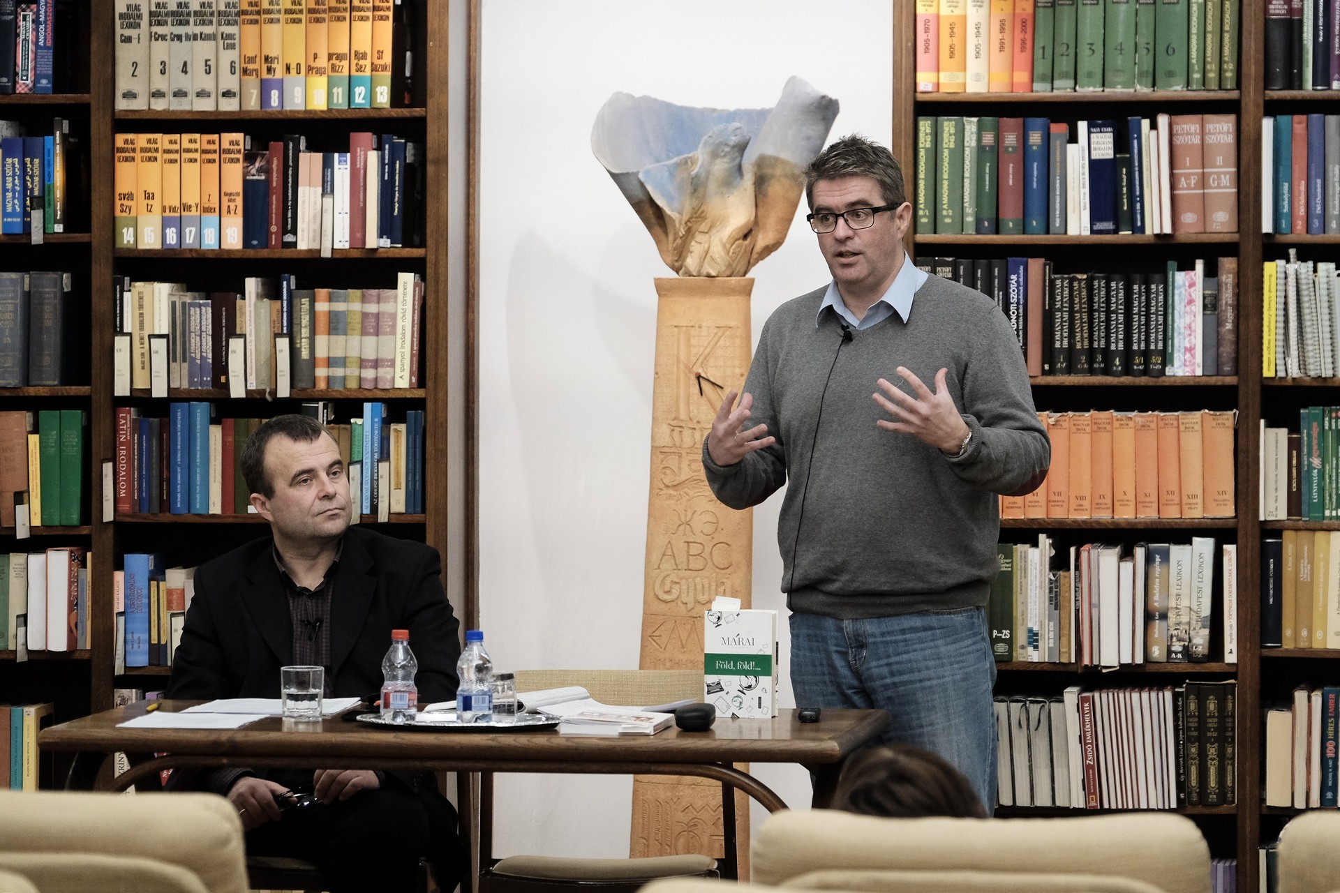 Mészáros Tibor (balról) és Bod Péter a gyulai könyvtárban tartott előadást