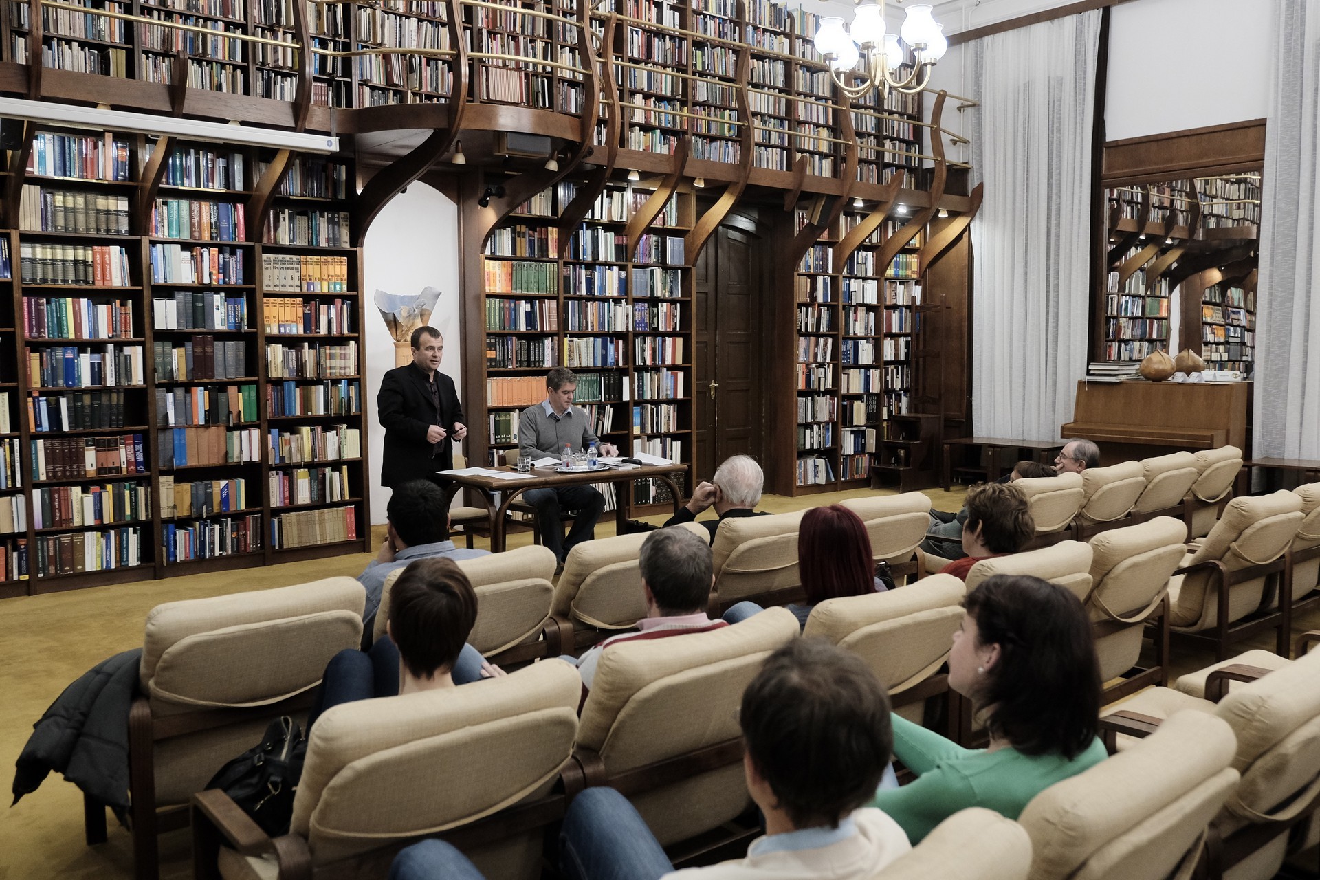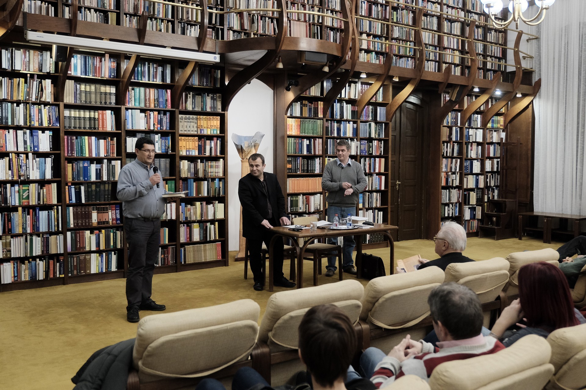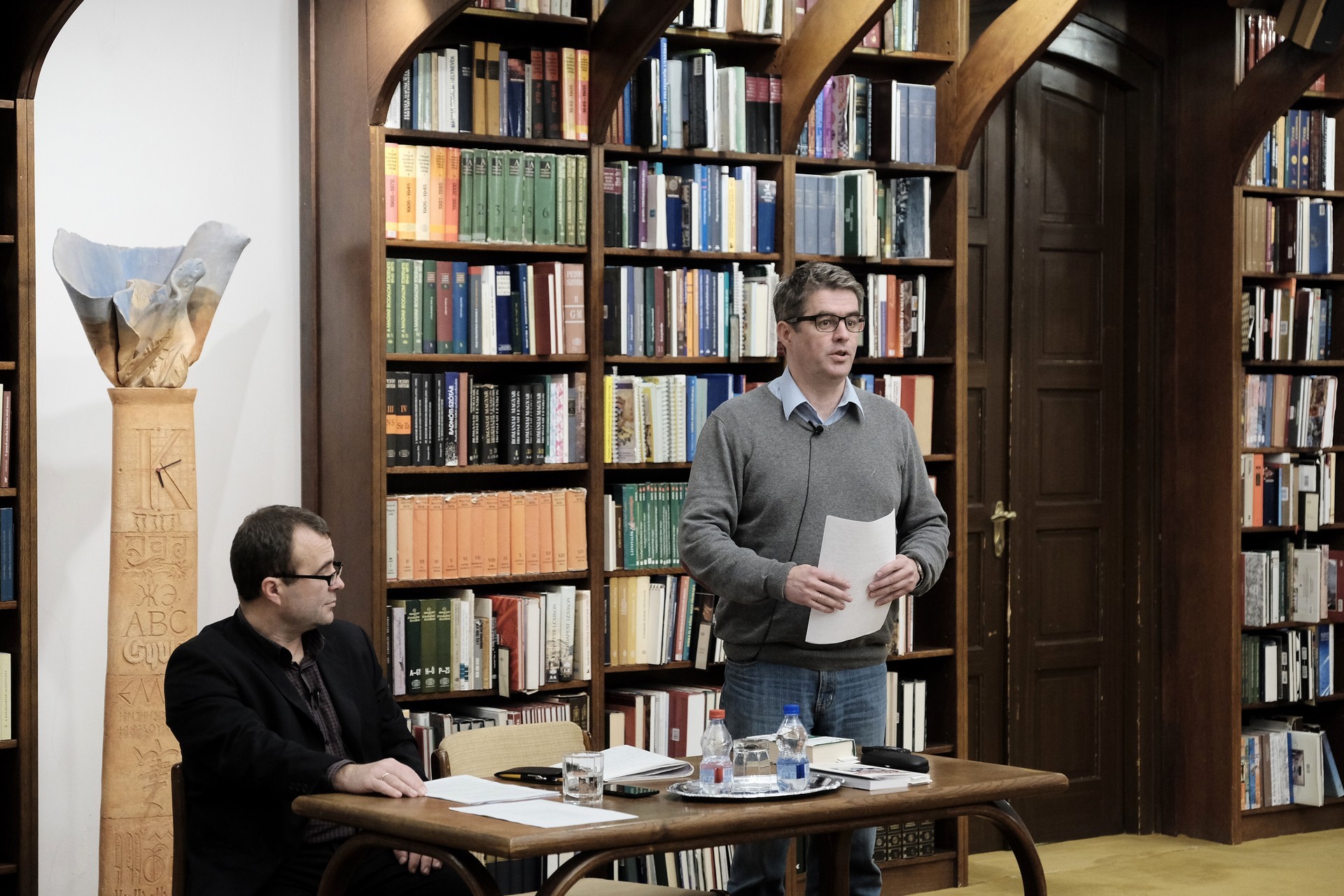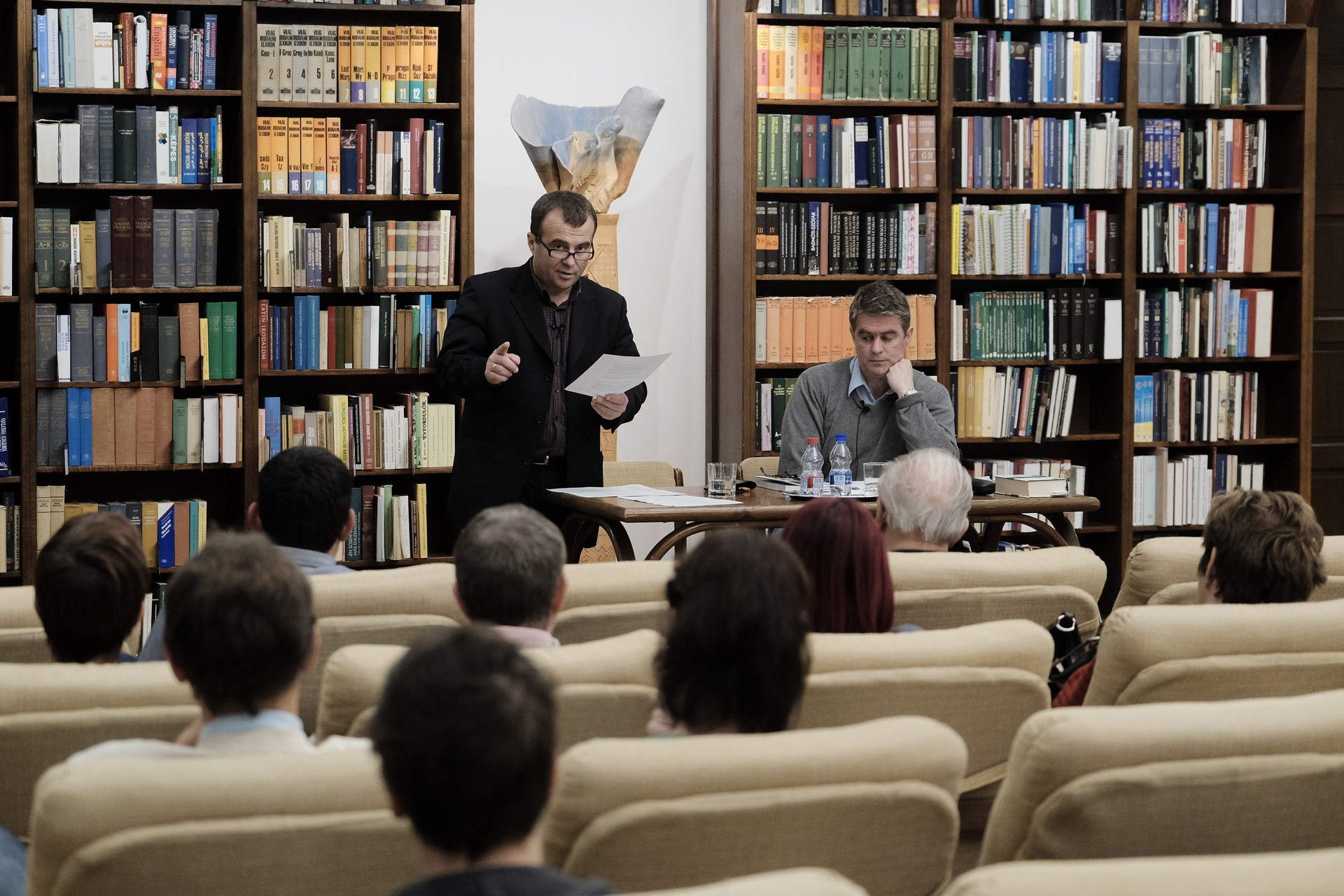 Mészáros Tibor (balról) és Bod Péter a gyulai könyvtárban tartott előadást