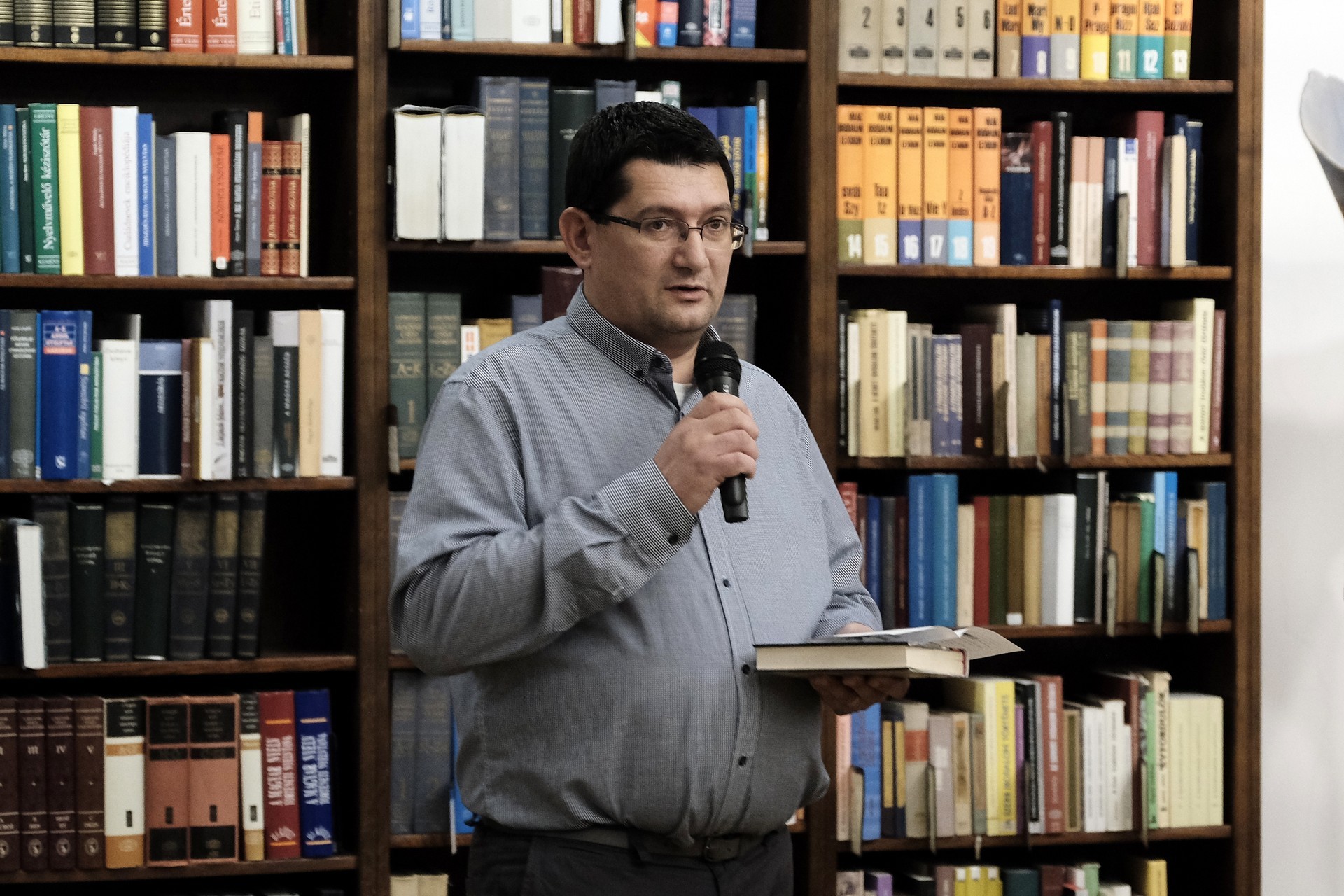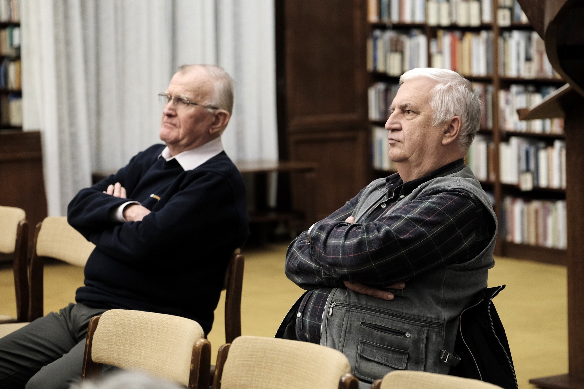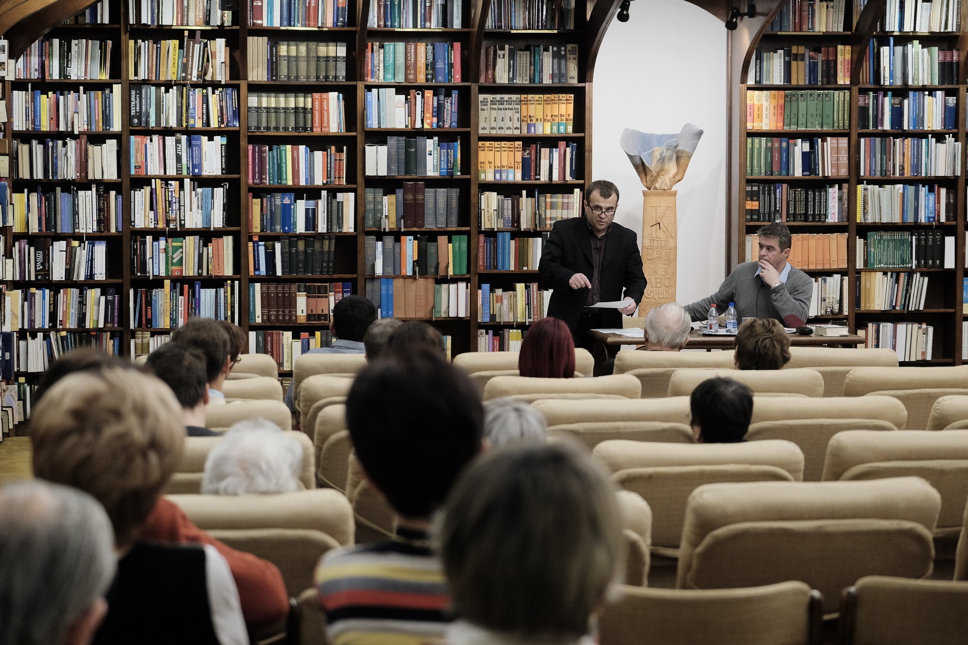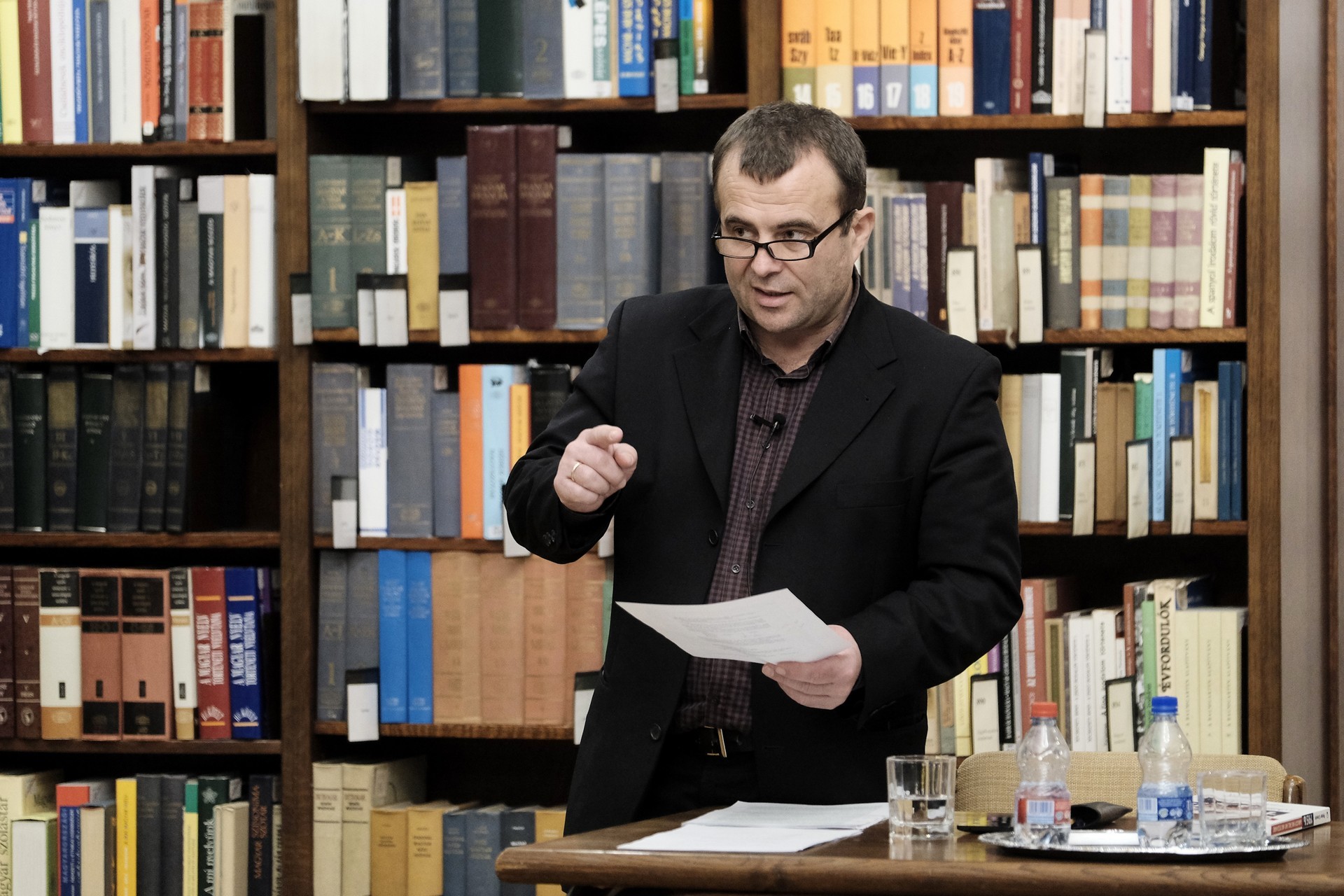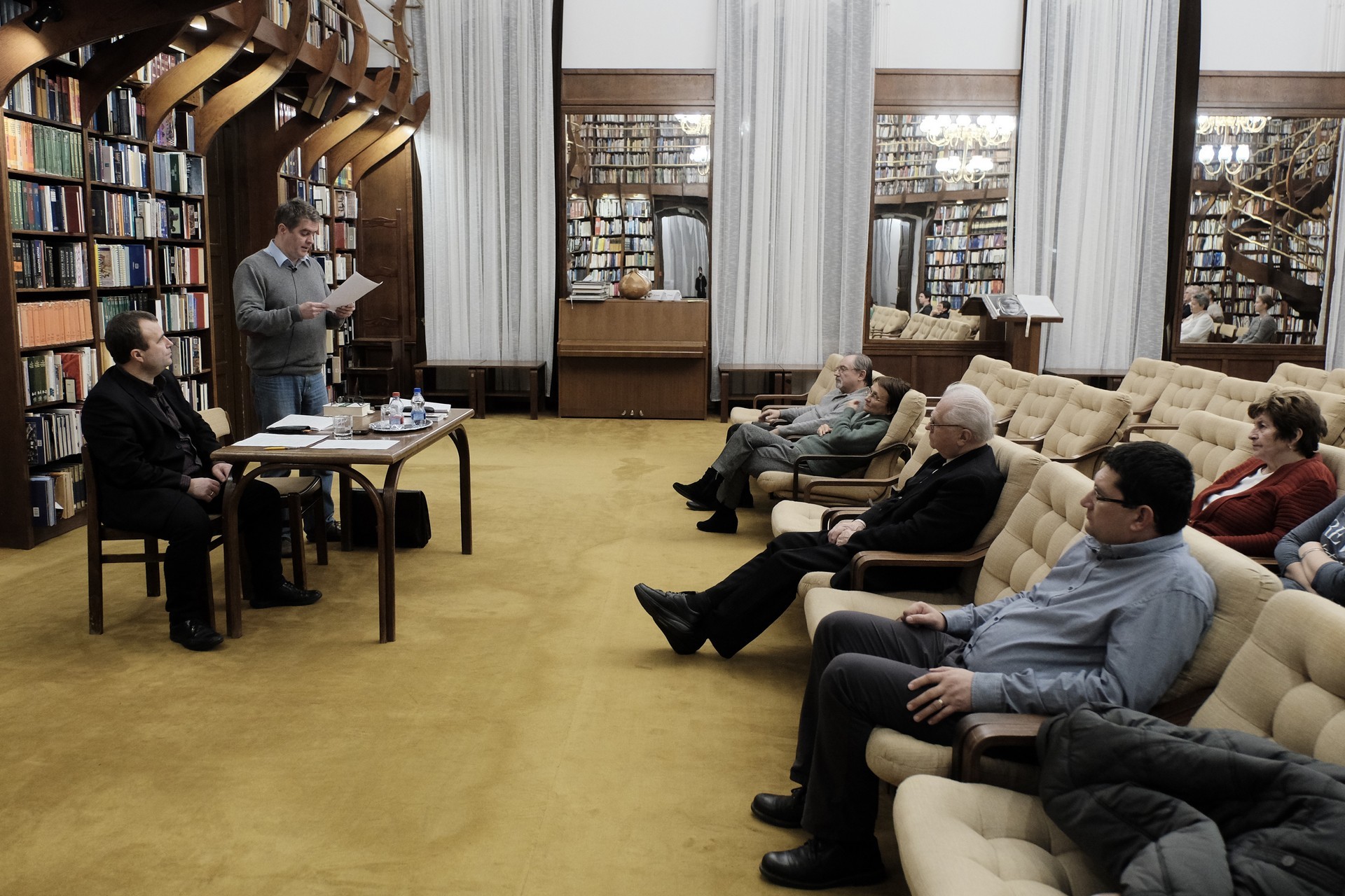 Mészáros Tibor (balról) és Bod Péter a gyulai könyvtárban tartott előadást