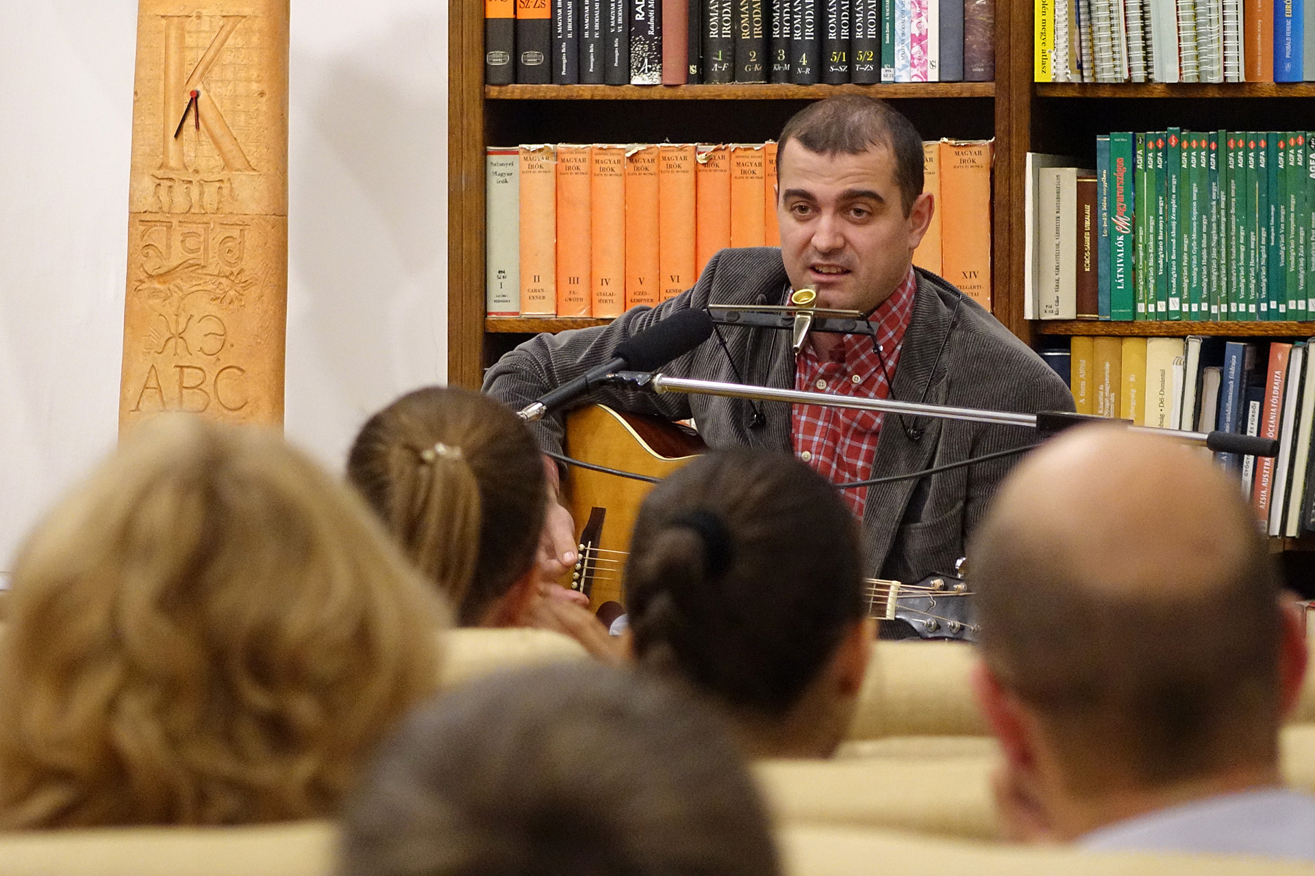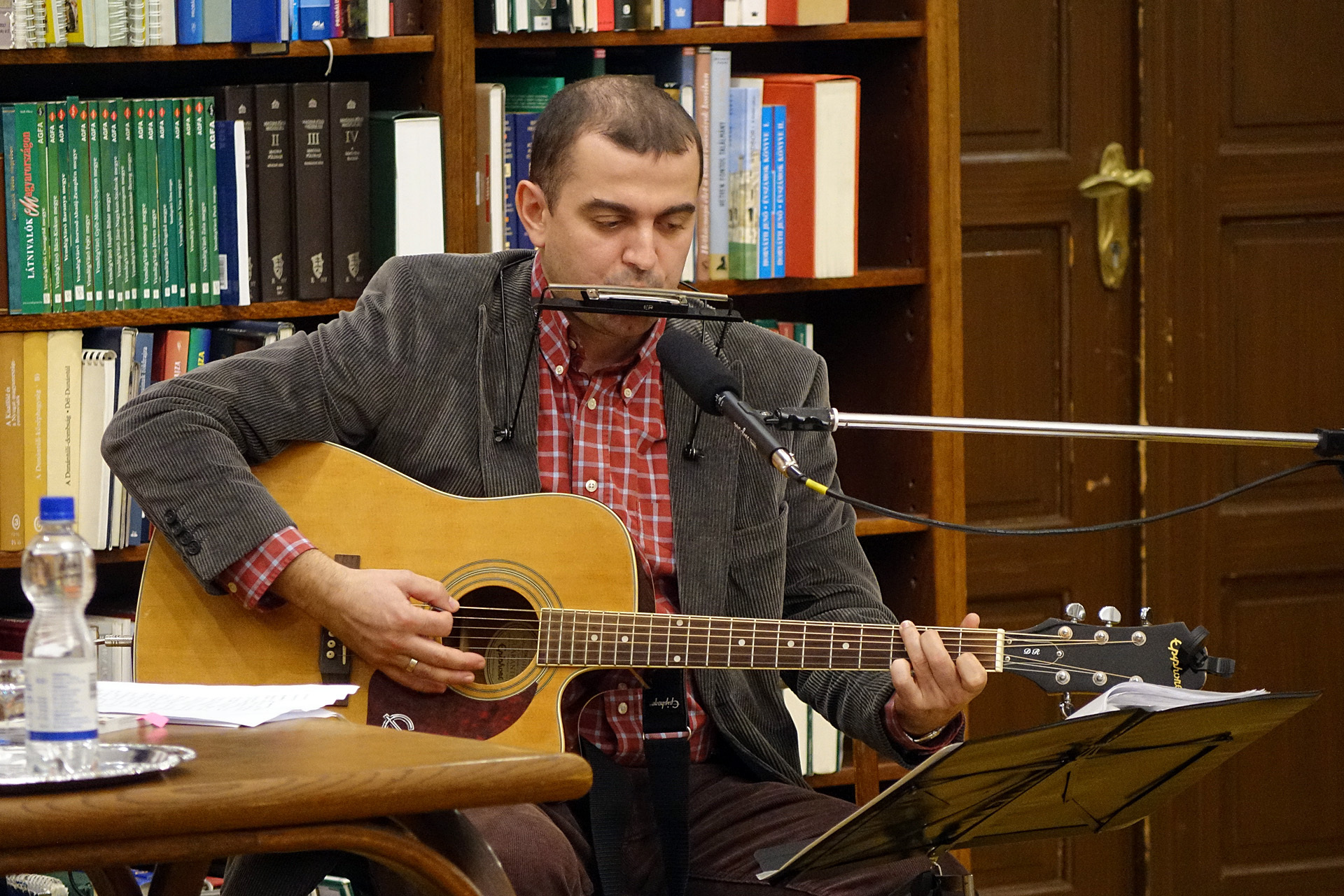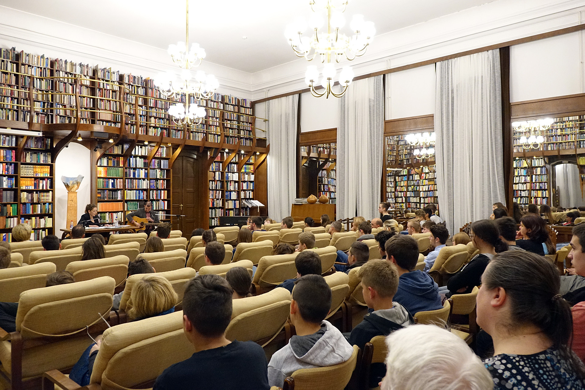 Az est a versmegzenésítés díjátadásával kezdődött. A kategória szakavatott zsűrielnökének szerepét Baracsi István tanár úr vállalta, aki boldogan osztott emlékplakettet Szép-Gergely Zsófiának, aki a Simonyi-versenyek nagy visszatérője, és idén is több kategóriában díjazott „kuriózuma”. Amennyiben a versenyen kívüli kategóriát is számításba vesszük, nálam a megzenésítést Baracsi művész úr biztosan megnyerte a produkciójának színvonalával és az átszellemült előadással. A Pernahajder Campell legendás (front office) managere nem hazudtolta meg magát, hihetetlen virtuozitással és humorral megfűszerezve adta elő a legszebb Bob Dylan-, Ady-, Petőfi-, Varró- és Cseh Tamás-dalokat, újra- és áthangszereléseket. A jelenlévő diáksereg egy nem előzmény nélküli, de ismét fölöttébb szórakoztató, Alternatív irodalom című, zenés-verses műsort hallhatott, amelyet az estet moderáló Lovas-Tóth Kata tanárnő irodalmian simogató hangja tett még élvezetesebbé. A diákok szemmel láthatóan fogékonyak voltak az újszerű irodalomleckére, hiszen lelkesen jelentkeztek, bizonyítva Baracsi igazát: „Az irodalomhoz a zenén keresztül is vihet az út”. Az előadók tökéletesen bemutatták, hogy a könyvtár nem egy félelmetes hely, tele van szórakozási lehetőséggel, tudománnyal, spiritusszal, és aki a zene barátja, az előbb-utóbb csodadolgokra bukkan, mert találkozik a szövegekkel is és netalántán még olvasni is kezdi azokat.