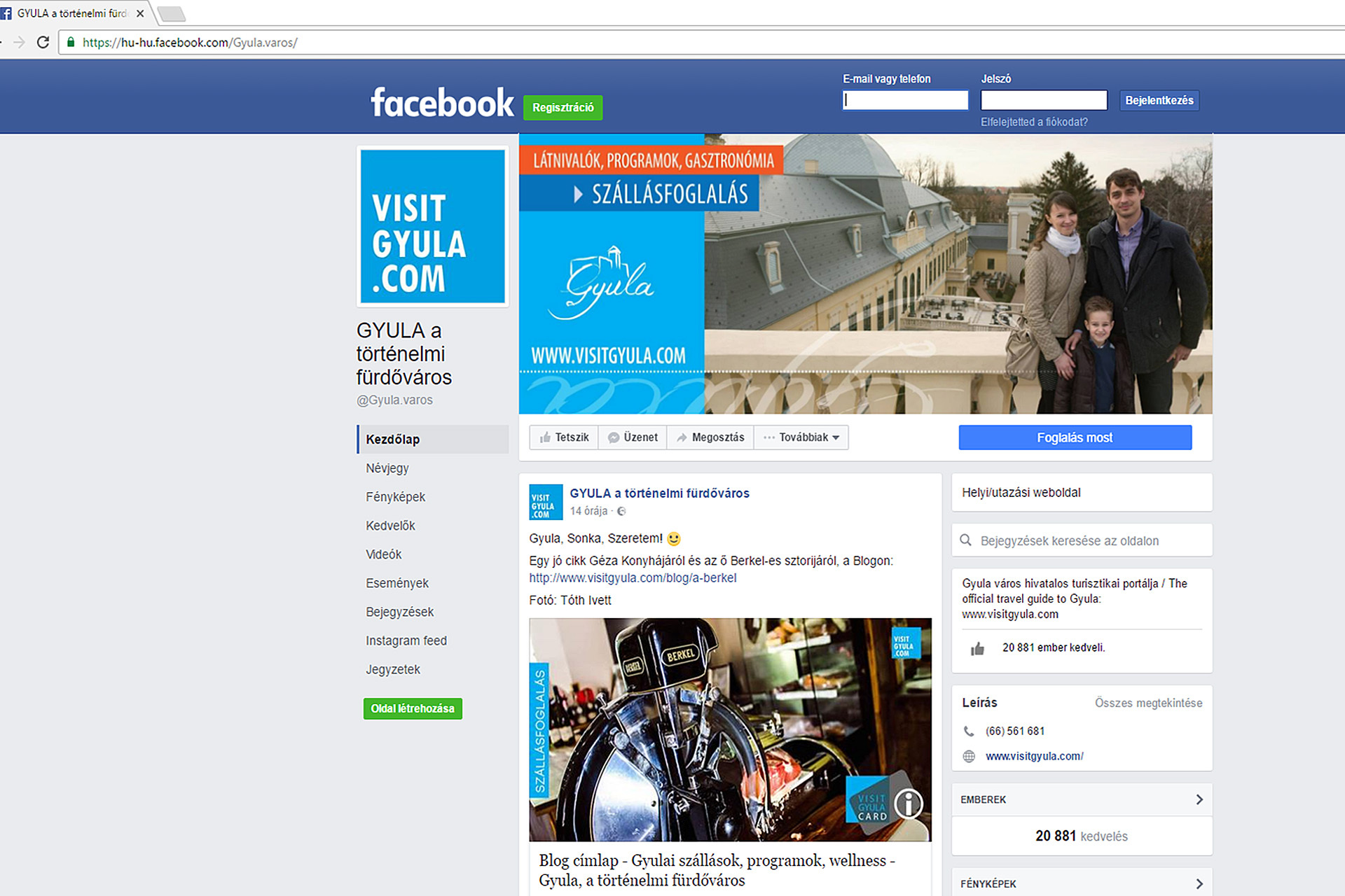 A Gyula, a történelmi fürdőváros elnevezésű Facebook-oldal