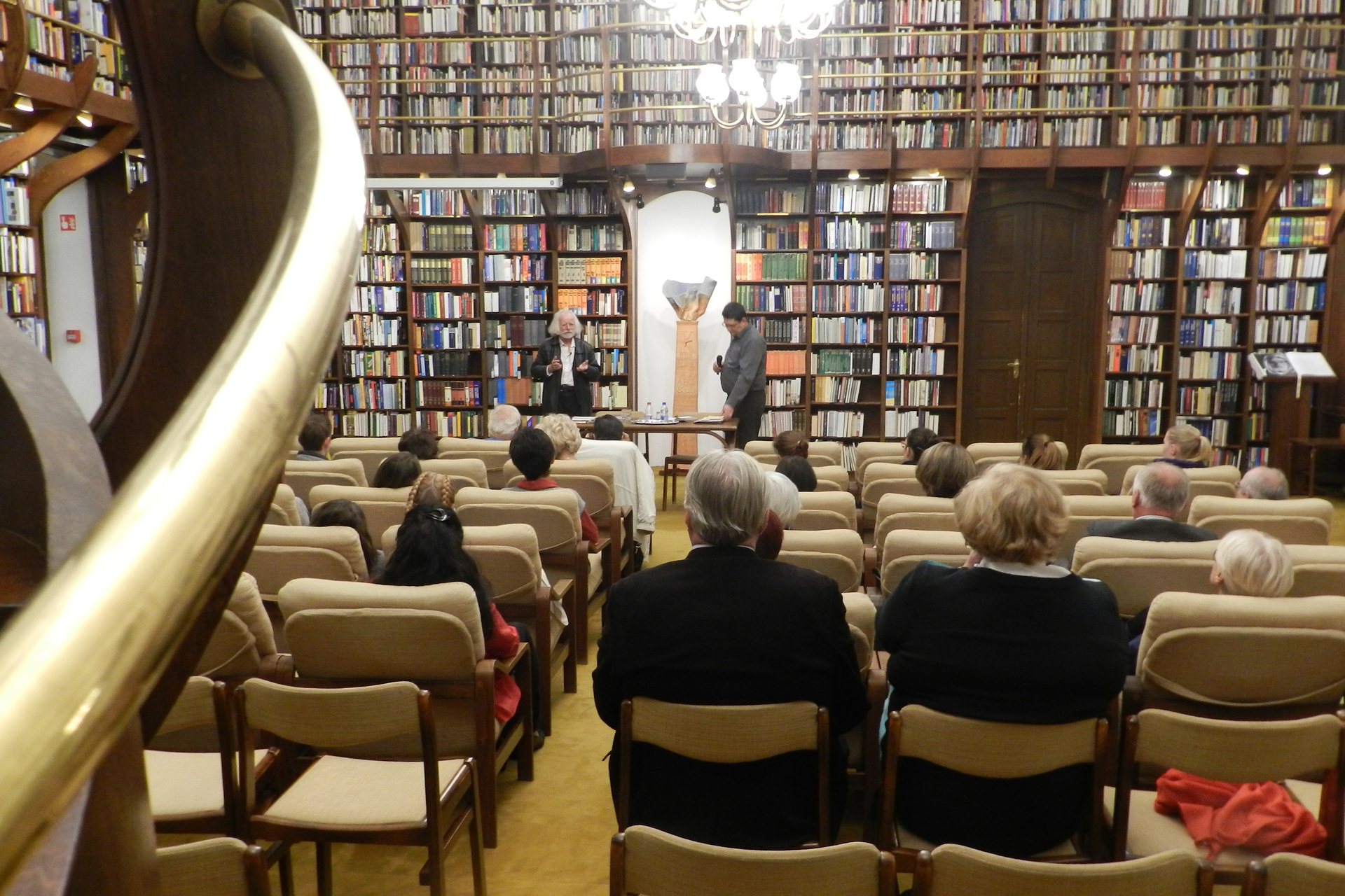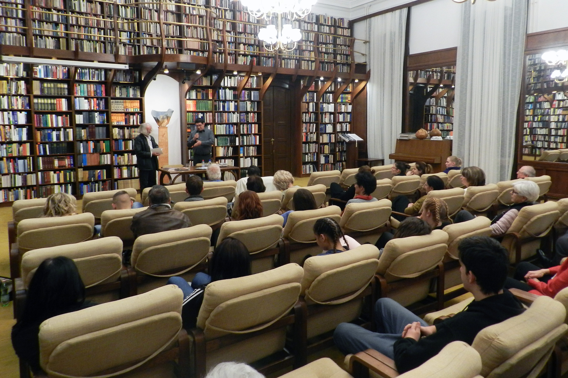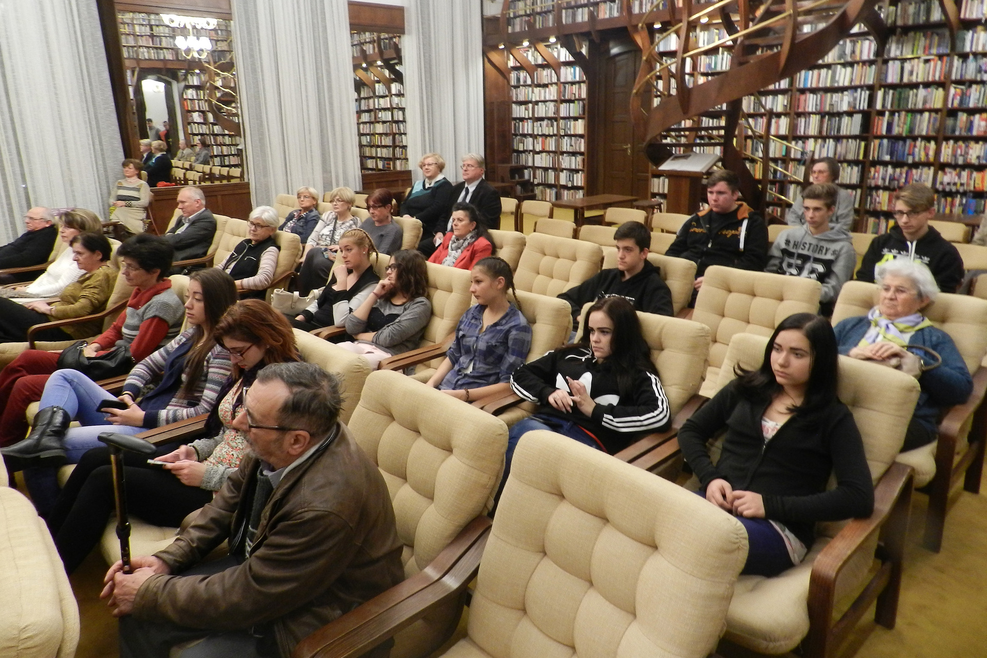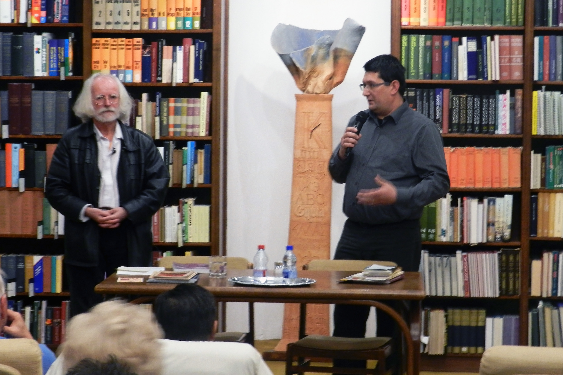 Turai kamil (balról) és Dézsi János a gyulai könyvtár Simonyi-olvasótermében