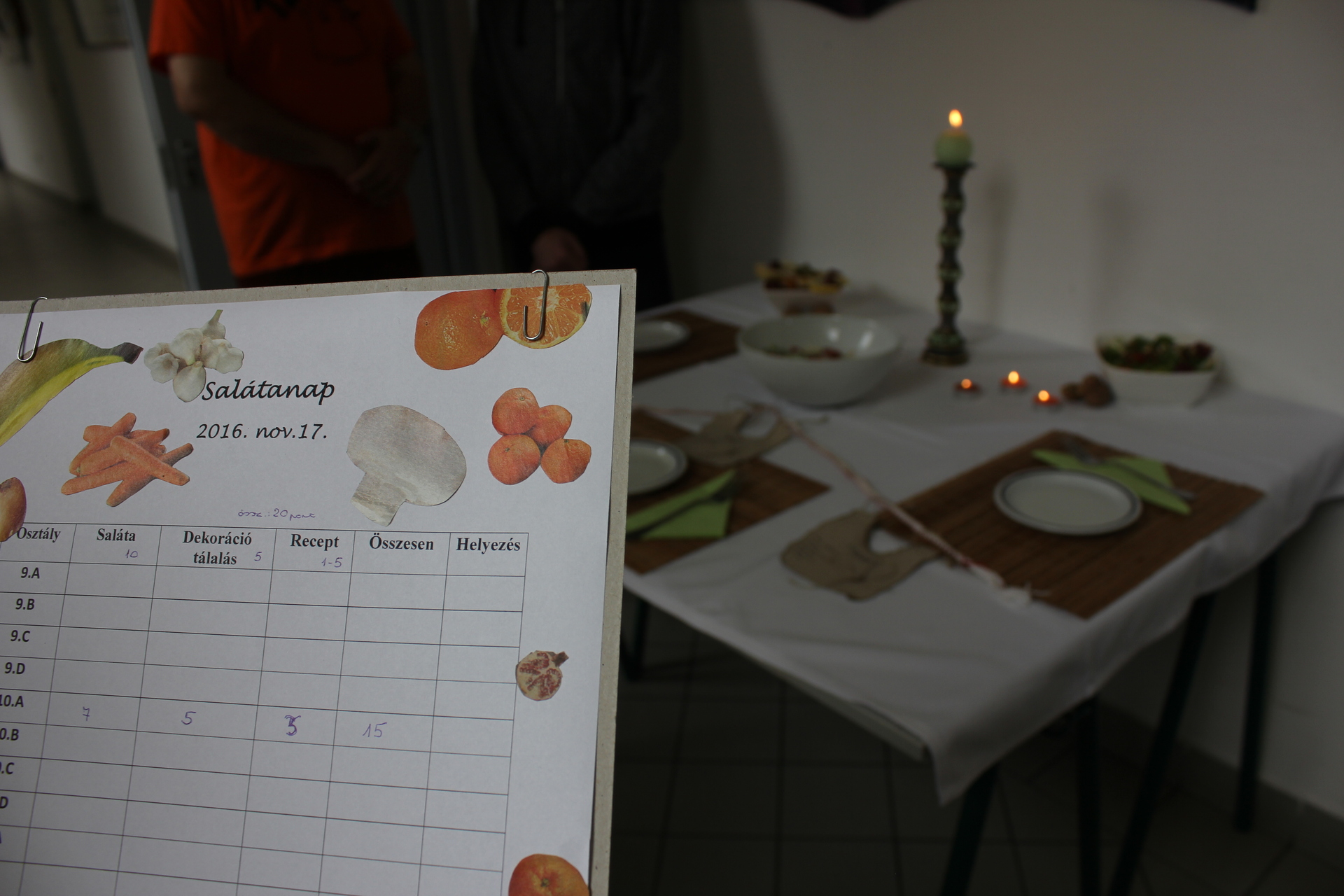– A nap hivatalos címe Egészségesen éld az életed!, aminek a régi diákjainak adták a „salátanap” becenevet. Minden ilyen alkalommal sokféle kategóriában indítottunk versenyeket – kezdett bele az esemény ismertetésébe a szervező tanárnő, Papp Mónika.