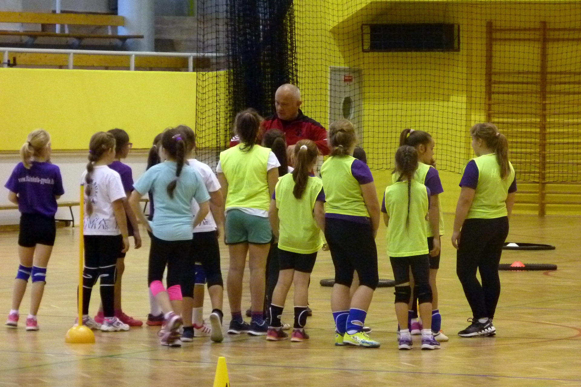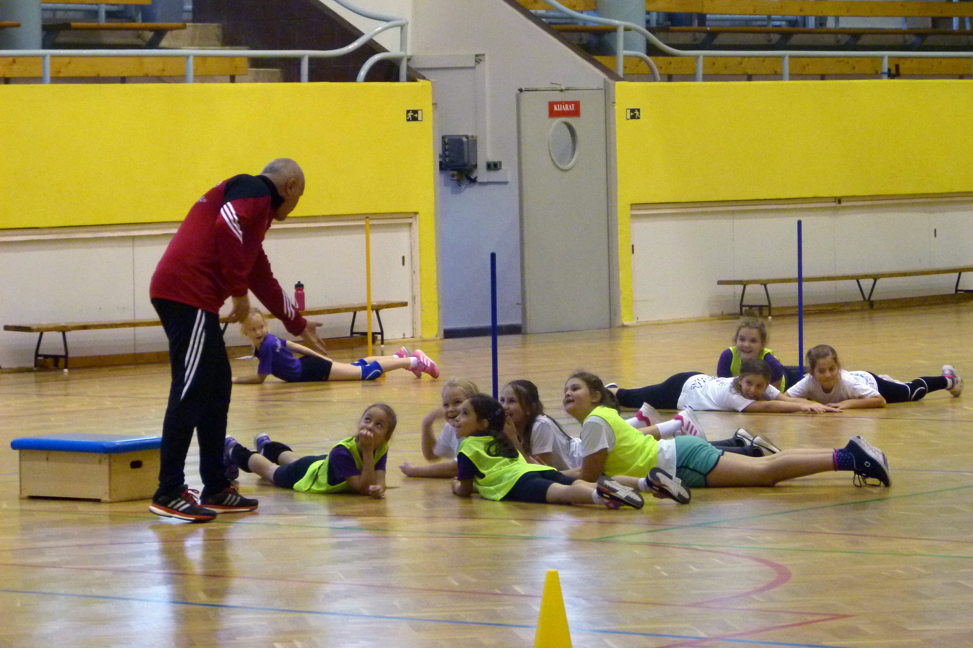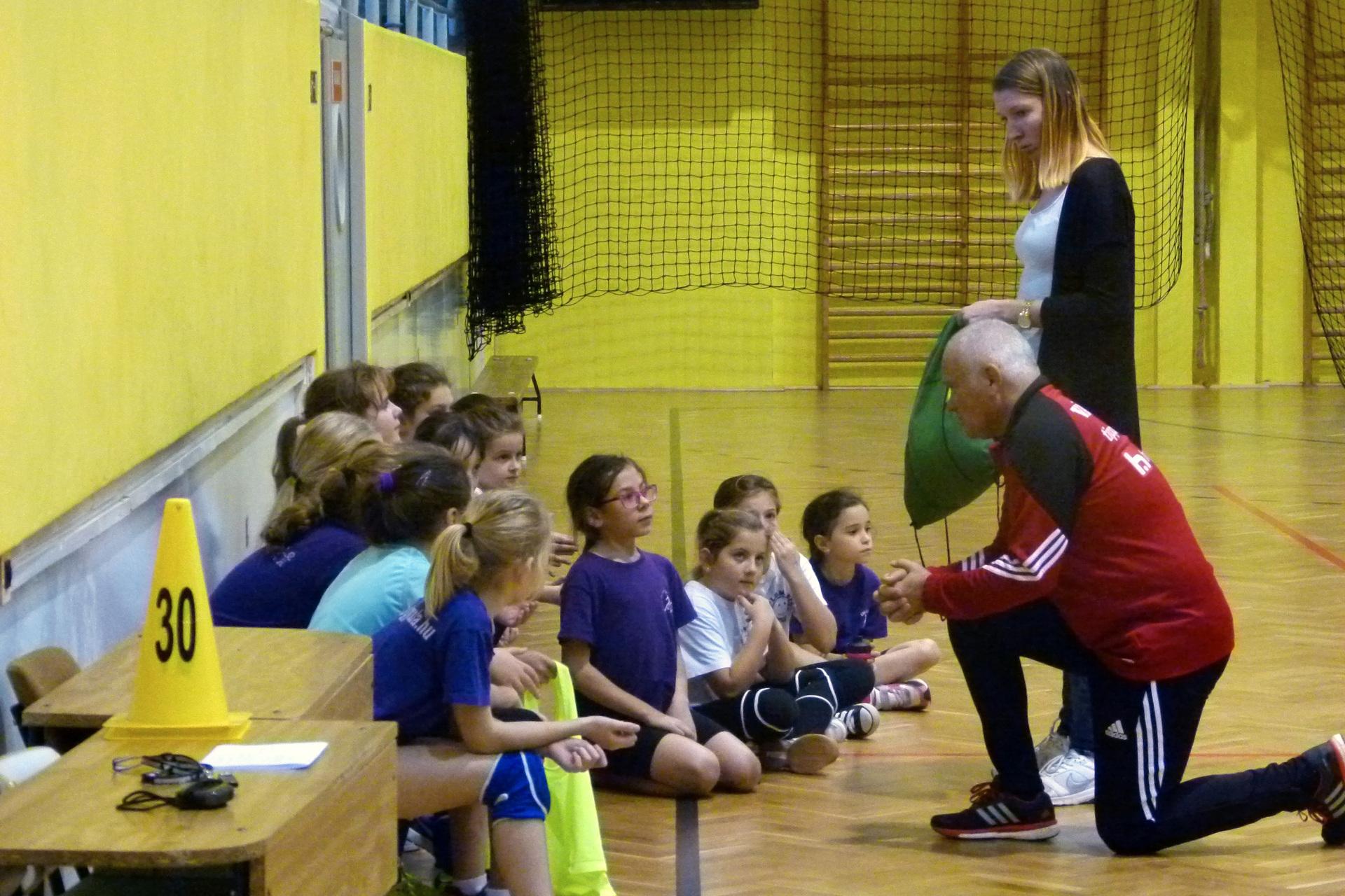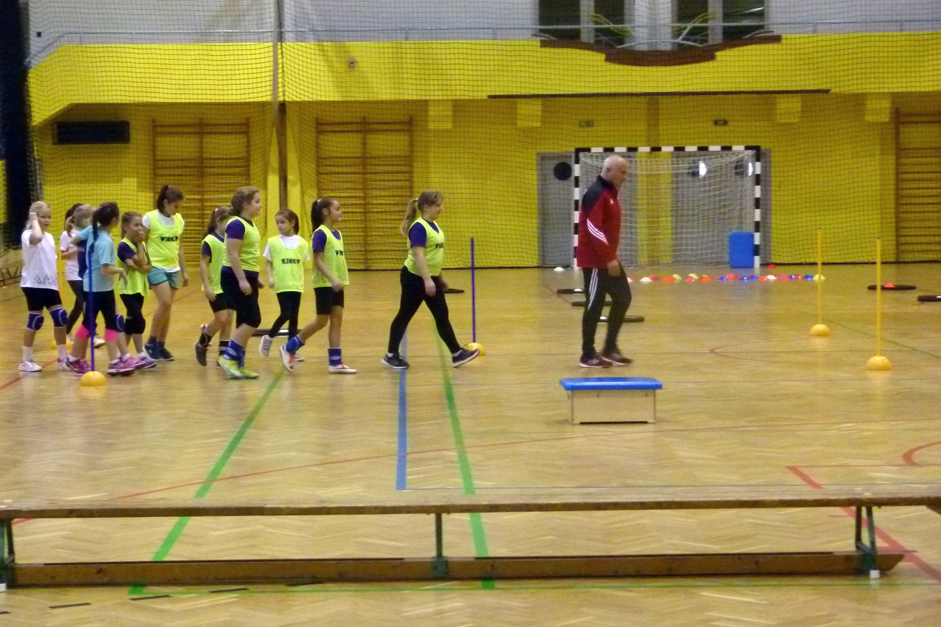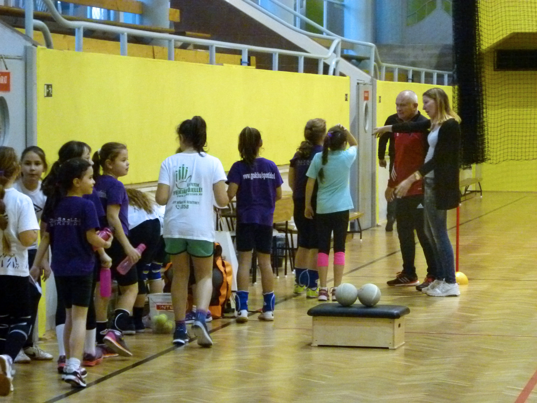 A második részben a gyakorlati foglalkozásé volt a főszerep, amelyben a Czoldán Csilla vezette, U8-as és 9-es korosztályú lányokból összeállított csapat volt Zsiga Gyula segítségére. Az általános iskolások olyan játékos feladatokat mutattak be, amit a legkisebb tornatermekben is alkalmazhatnak a pedagógusok. A feladatok során felhasznált szerek mind megtalálhatók az összes tornateremben. Mint azt a mesteredző hangsúlyozta, a játékok során oly módon fejleszthetők a gyermekek képességei, hogy azokat ők észre sem veszik. A volt szövetségi kapitány jelenleg a Váci KSE férfi kézilabdacsapatának a vezetőedzője, de mellette fontos szerepet tölt be a Magyar Kézilabda Szövetség hosszú távú sportágfejlesztési stratégiájában.
