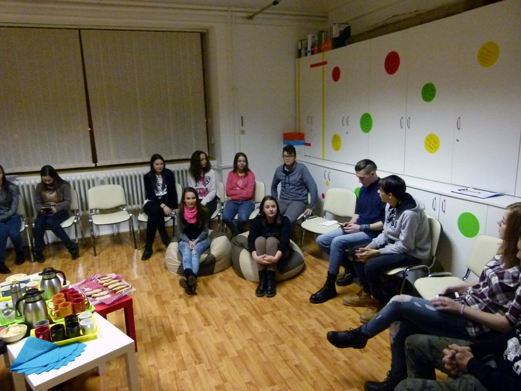 A beszélgetést, a diákoknál szokásos módon, bemutatkozással kezdték a megjelentek, ahol az is kiderült, hogy kinek milyen színű a fogkeféje. A fiatalok három témakörben tettek javaslatot, amelyeket Vahl Szabina ismertetett a jelenlévőkkel. A témafelosztás a közlekedés, a menza és a környezet hármasára épített, amelyeken belül terítékre került például a lámpák vagy táblák kihelyezése a veszélyeztetett útszakaszokon vagy a kerekesszékes emberek közlekedésének segítése is. De újra felröppent a menza, menzai higiénia örökös problémája is, és a városi környezet szépítése.