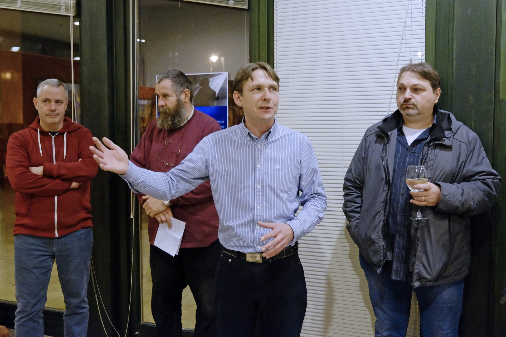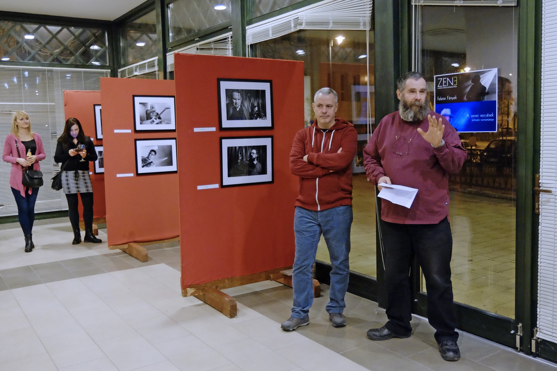 A Zene című tárlatot Kukár István képzőművész köszöntője nyitotta meg, de előtte Kiss János, a rendezvény szervezője tolmácsolta gondolatait a közönségnek, amelyben kifejtette, hogy a programsorozat lényege, hogy legalább két művészeti ágat hoz össze egyetlen estére. A kiállítás témája a zene, utána pedig két koncertet is végighallgathattak az érdeklődők, így egyértelmű volt a kapcsolat.