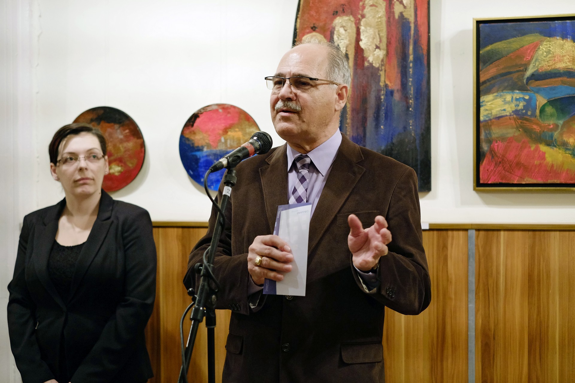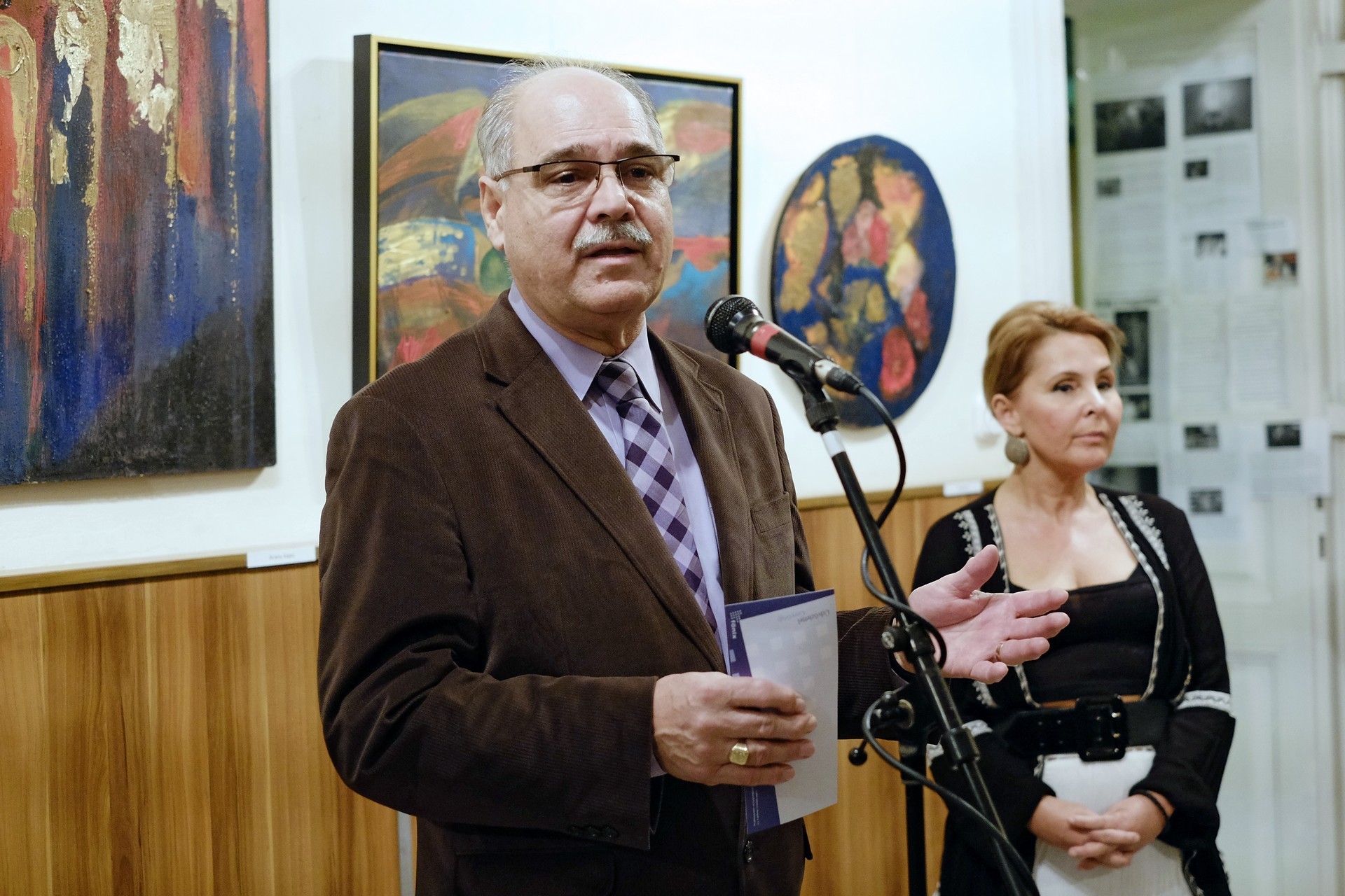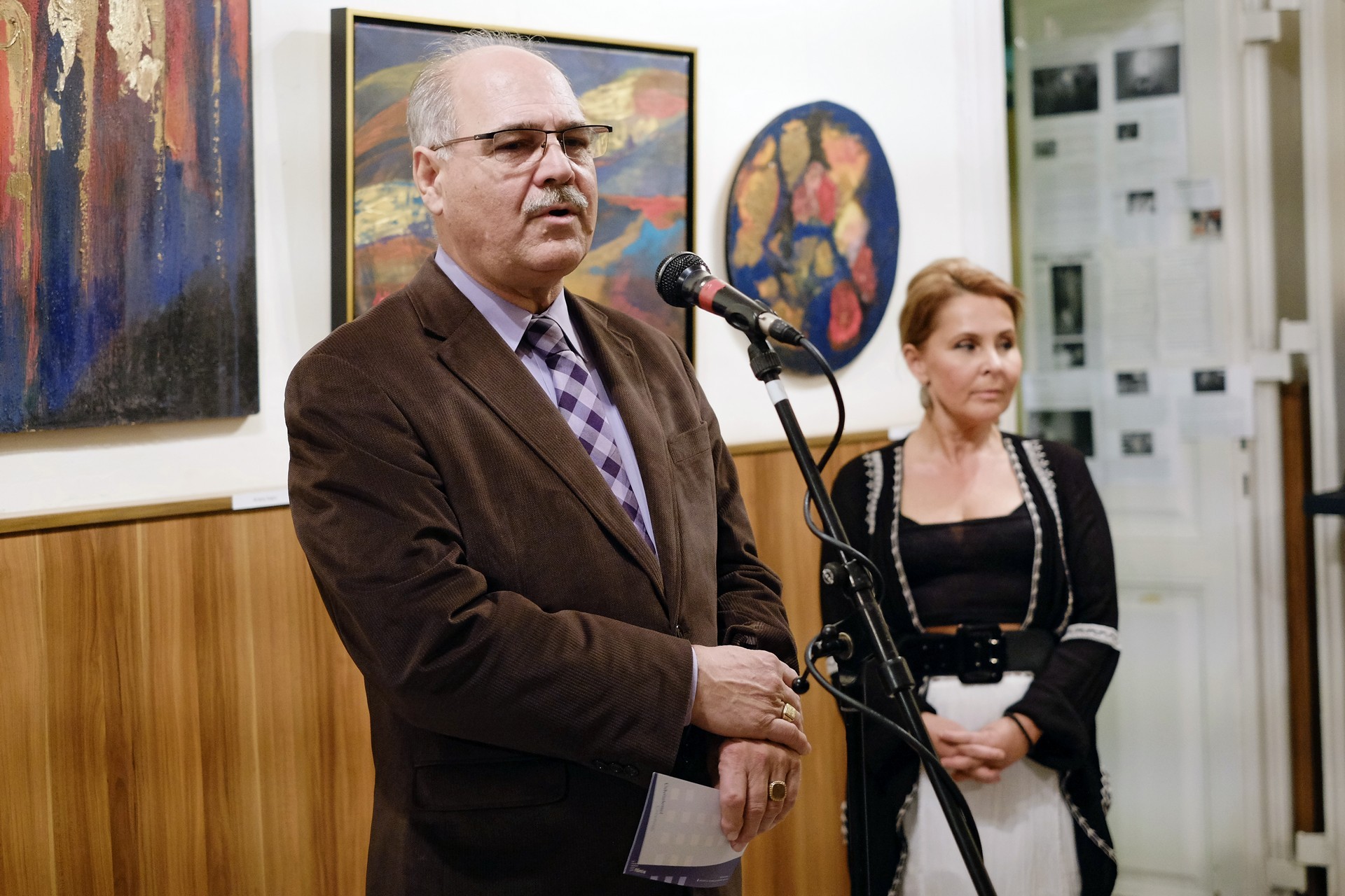 – A Debrecen melletti Nagycserén él csodálatos környezetben, amely igazán inspiráló egy festő számára. Ami elképesztően izgalmas, hogy törekszik a harmóniára, mind a színeket, mind a formákat tekintve. Ennek a kiállításnak „Jelenések” a címe, filozofikus képeket láthatunk, azokat az impulzusokat, amelyek a mindennapok folyamán ragadják el az alkotót – mondta Cs. Tóth János.