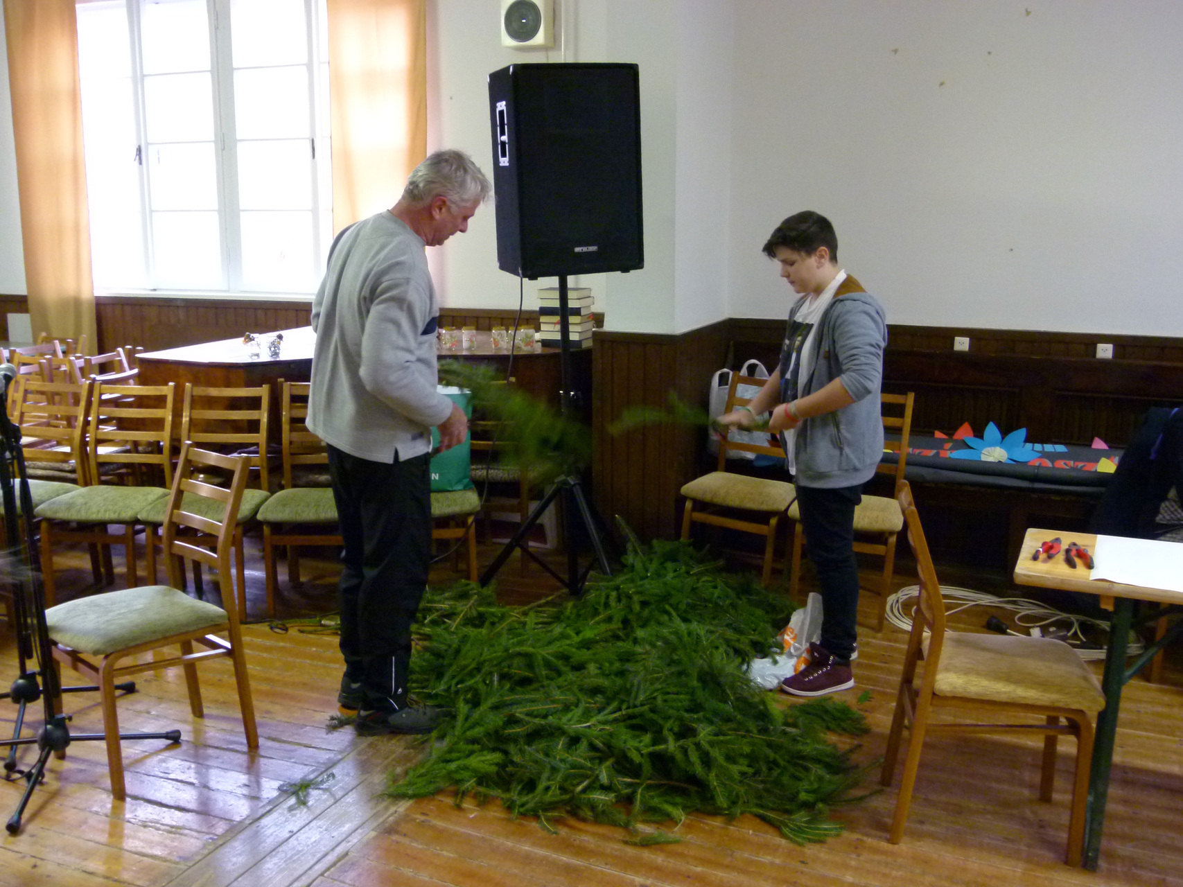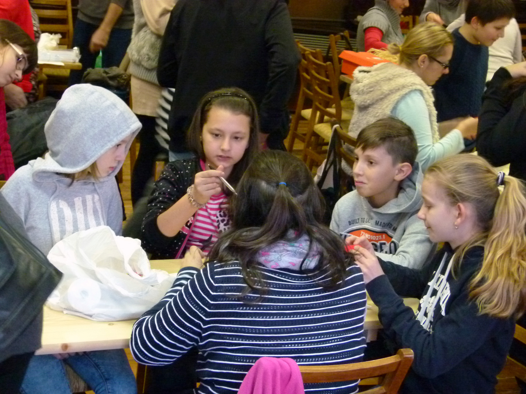 Később a teljesen megtelt gyülekezeti teremben a gyerekek és a családok különböző ünnepi alkotásokat készíthettek. Ezenkívül mézeskalácsot is díszíthettek a megjelentek, és az ünnepekhez köthető dalokat hallgathattak. A legnagyobb izgalmat a gyermekek asztalidísz- és koszorúkészítő versenye hozta, melyre minden osztály külön nevezhetett. Az összejövetelt közös esti csillagszórógyújtás zárta.