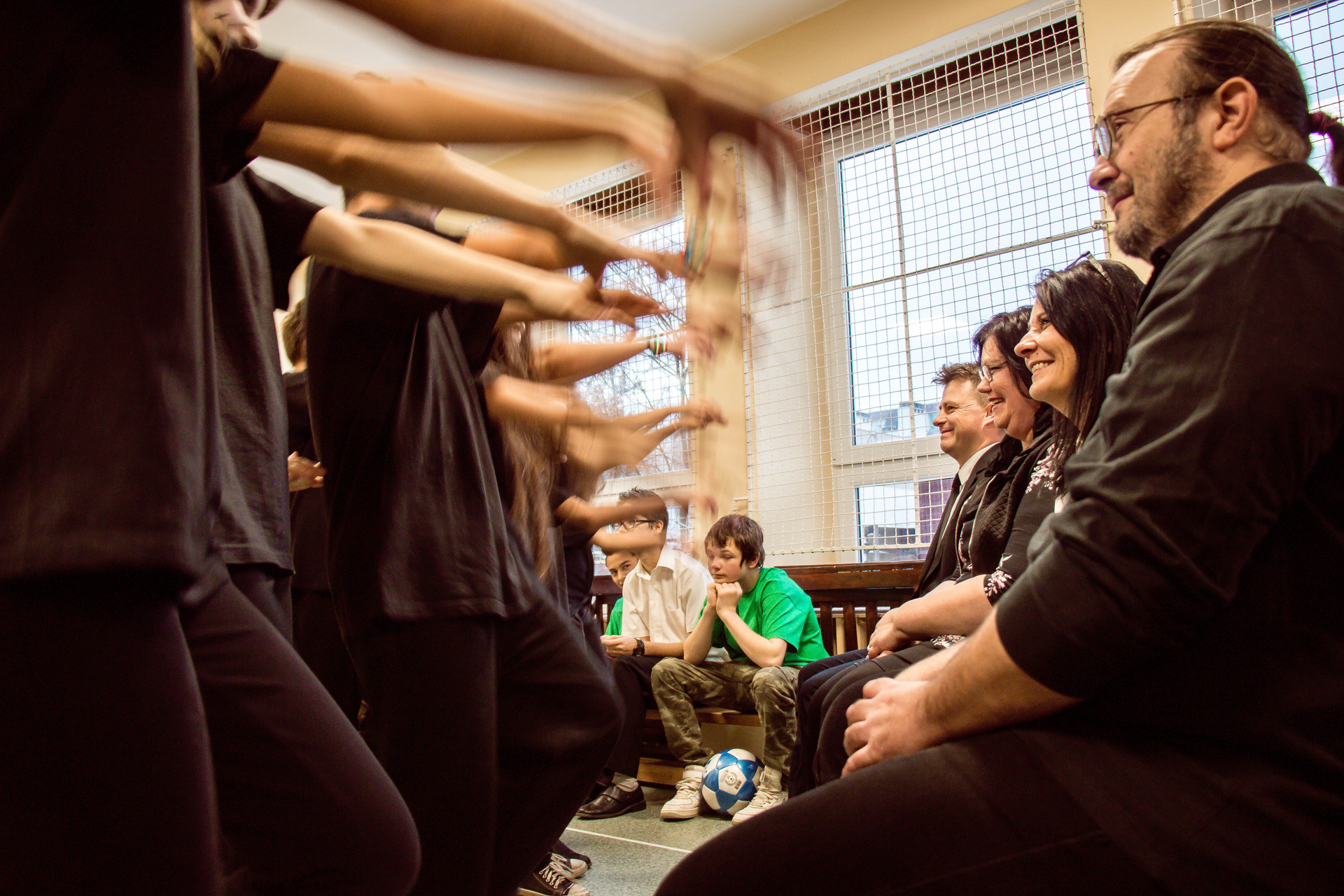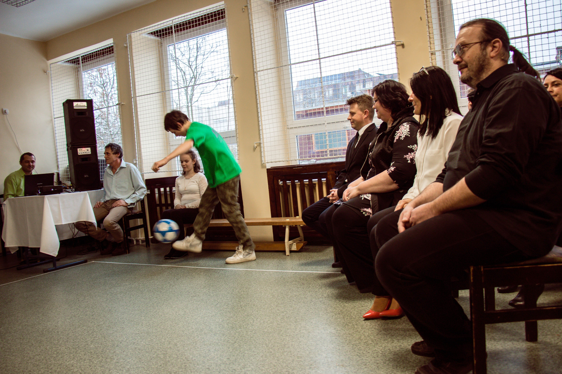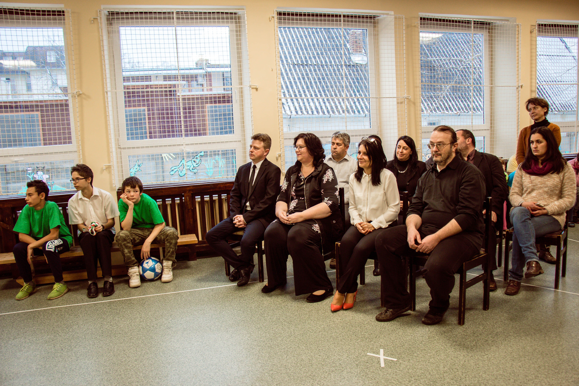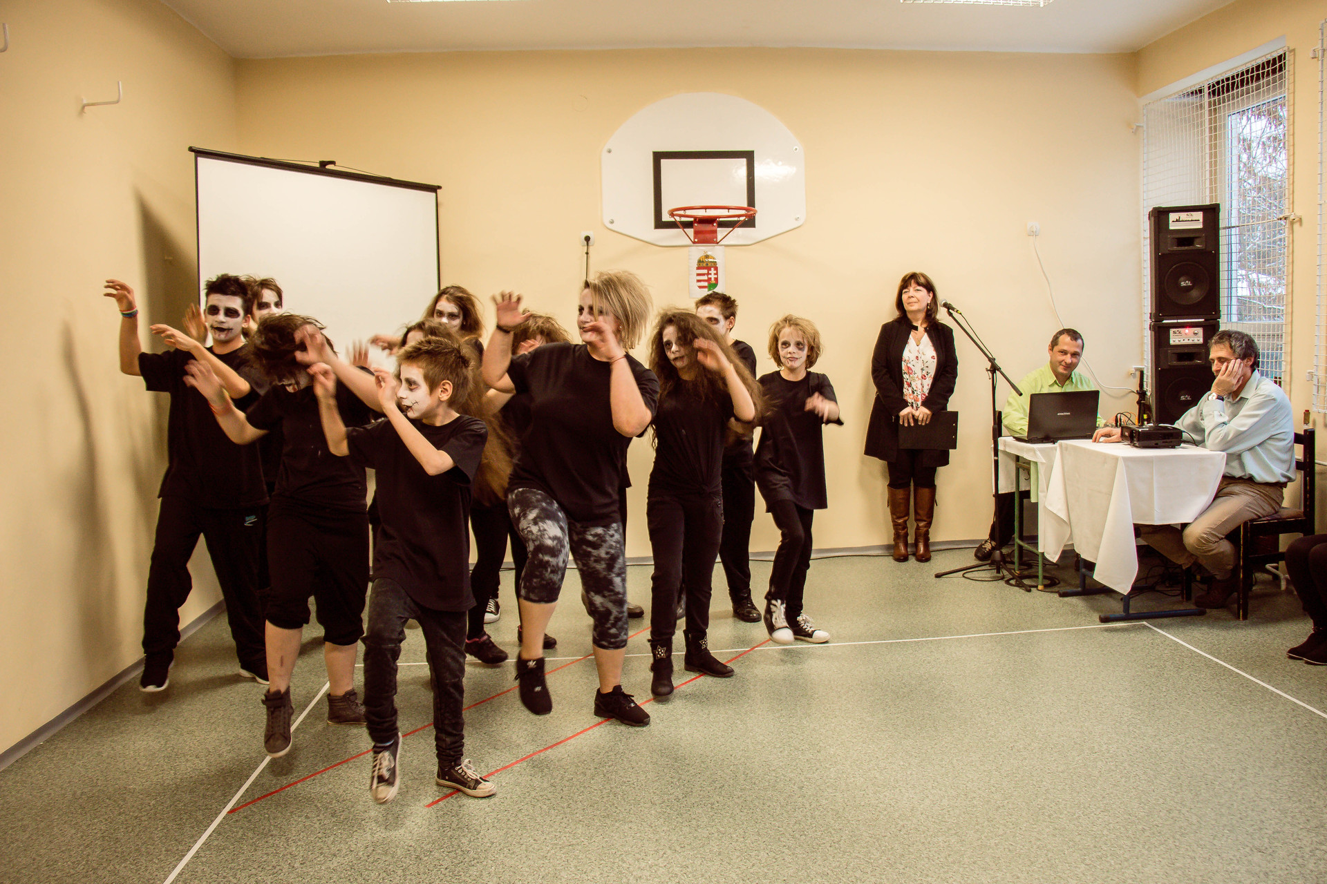 A zsúfolásig megtelt tornaszobában a meghívott vendégek a „Nem vagyunk mi kispályások!” elnevezésű szurkolói program nyertes pályázatából láthattak részleteket, valamint meghallgathatták az intézmény tanulói által életre keltett szurkolói dalt. Mindeközben az intézmény két tanulója kápráztatta el labdazsonglőr-bemutatójával a meghívottakat.