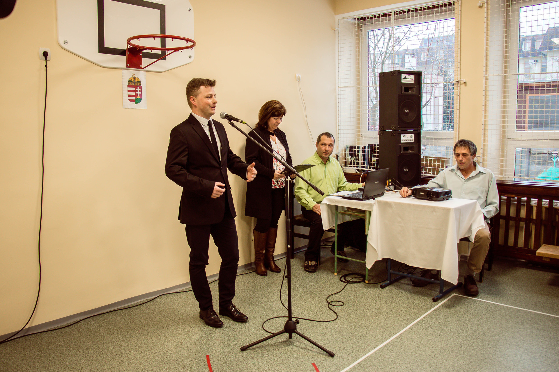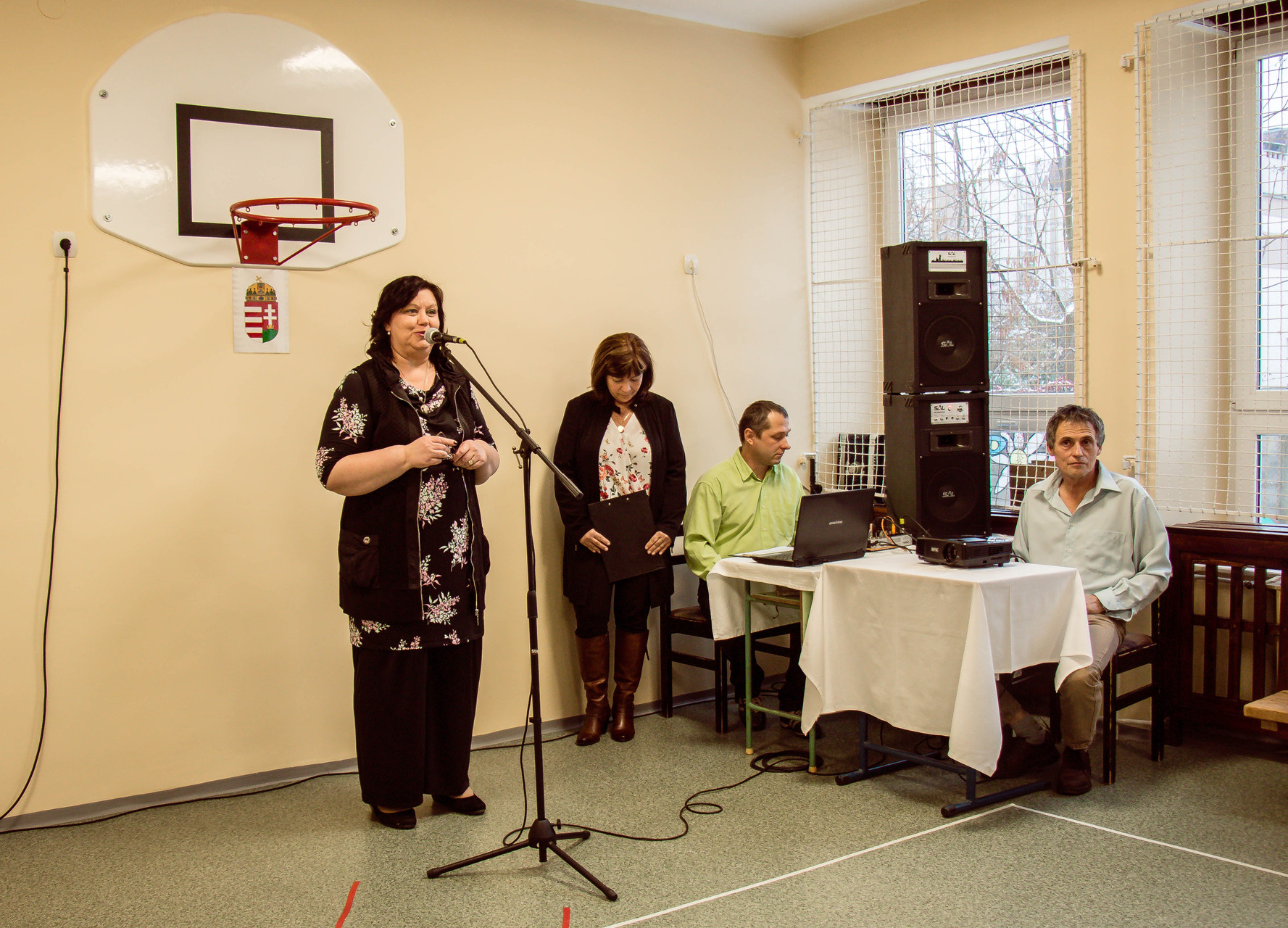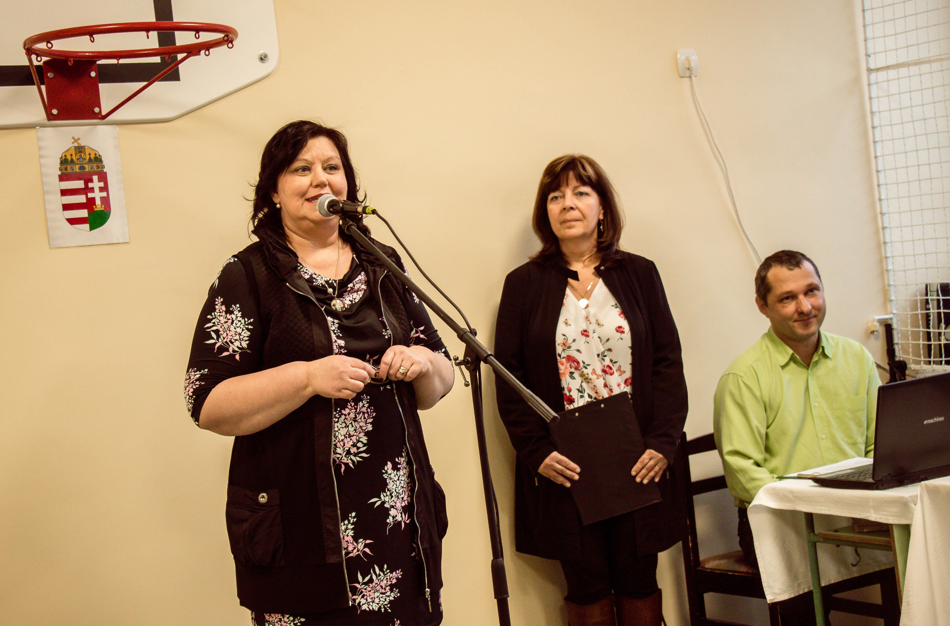 Szabó Éva ismertette a tornaszoba felújításának történetét. Mint azt a beszédében elmondta, régóta húzódó ügynek tehettek ma pontot a végére, hiszen még 2014-ben került képletesen lakat a tornaszobára. Sajnos a folyamatos beázások miatt a helyiség állapota olyan mértékben leromlott, hogy már nem tudták az intézmény tanulói használni. Ez azért is volt nagyon szomorú, mert az előzőleg megtekintett kisfilm is megmutatta, hogy igazi sportbarátok szerették volna rendszeresen használni ezt a szobát.