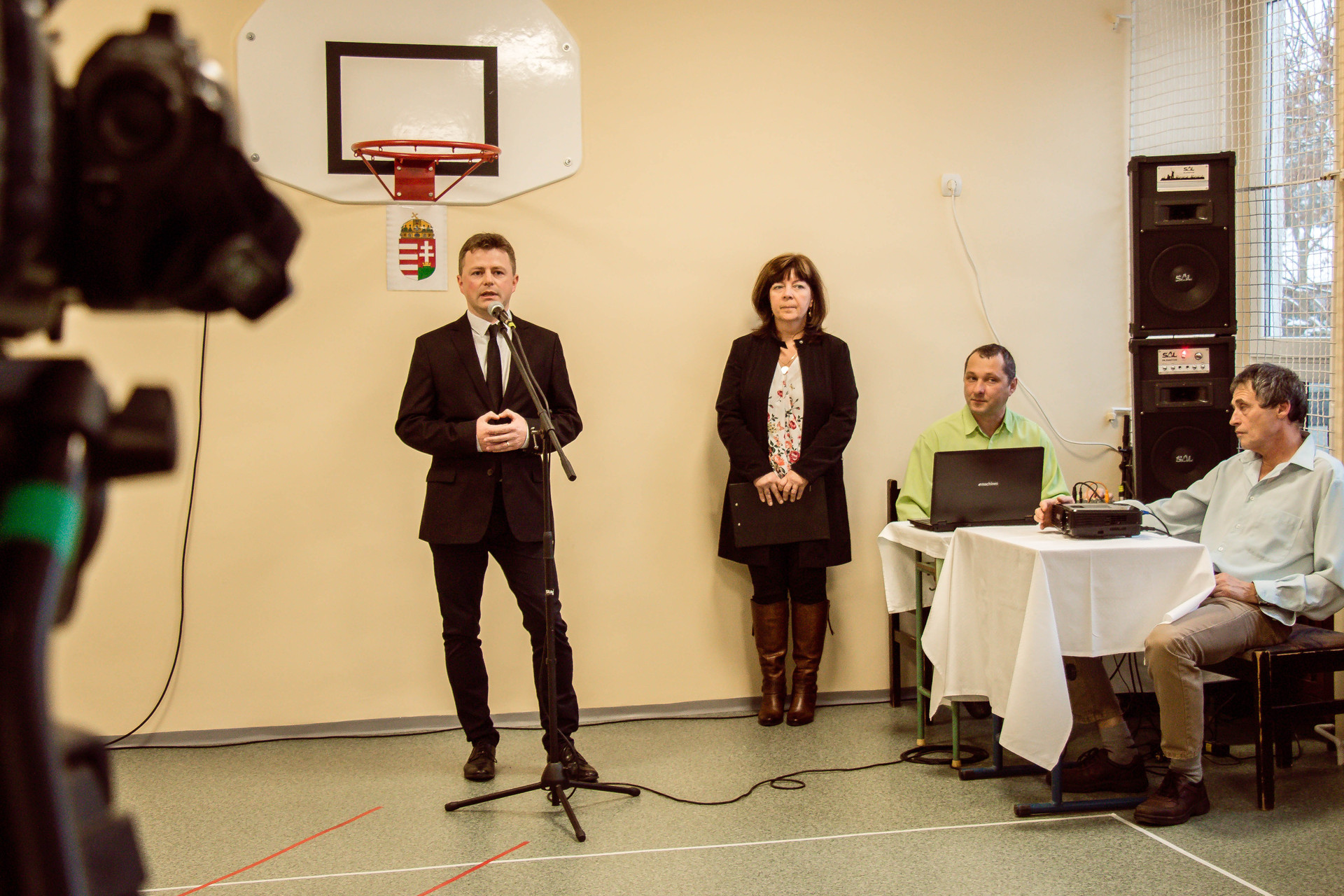 Az intézményvezető kiemelte, hogy Balogh Lajos és Lányi István karolták fel az ügyet, amiből médiahír vált. Ez a hír aztán eljutott egészen dr. Szabó Tünde sportért felelős államtitkár asszonyig, akinek segítségével jutott el hozzánk az a pénzügyi forrás, amelyből fel lehetett újítani a tornaszobát.