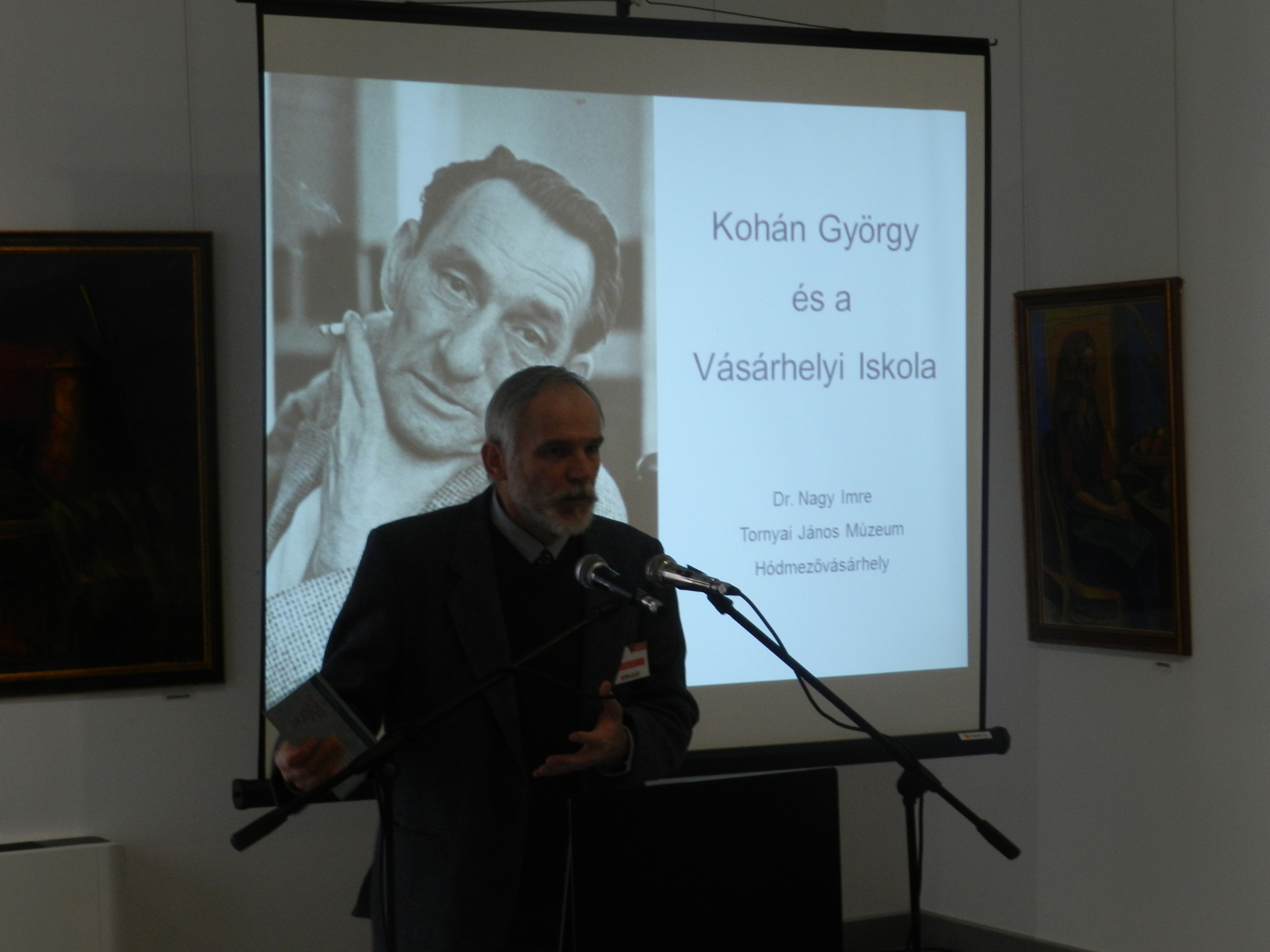 A második előadó dr. Nagy Imre, a hódmezővásárhelyi Tornyai János Múzeum igazgatója volt, aki Kohán György és a vásárhelyi iskola kapcsolatát mutatta be, a művész és kortársainak alkotásainak összehasonlításával. Elsőként egy képet vetít a közönség elé, amelyen Kohán a Tornyai Társaság alakuló ülésén látható, olyan művészekkel együtt, mint Ploh József, Pákozdy Ferenc vagy Vén Emil.