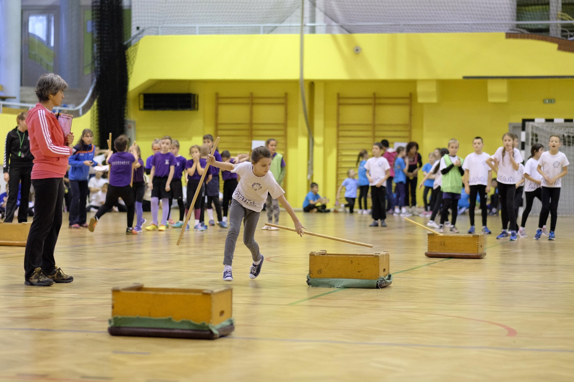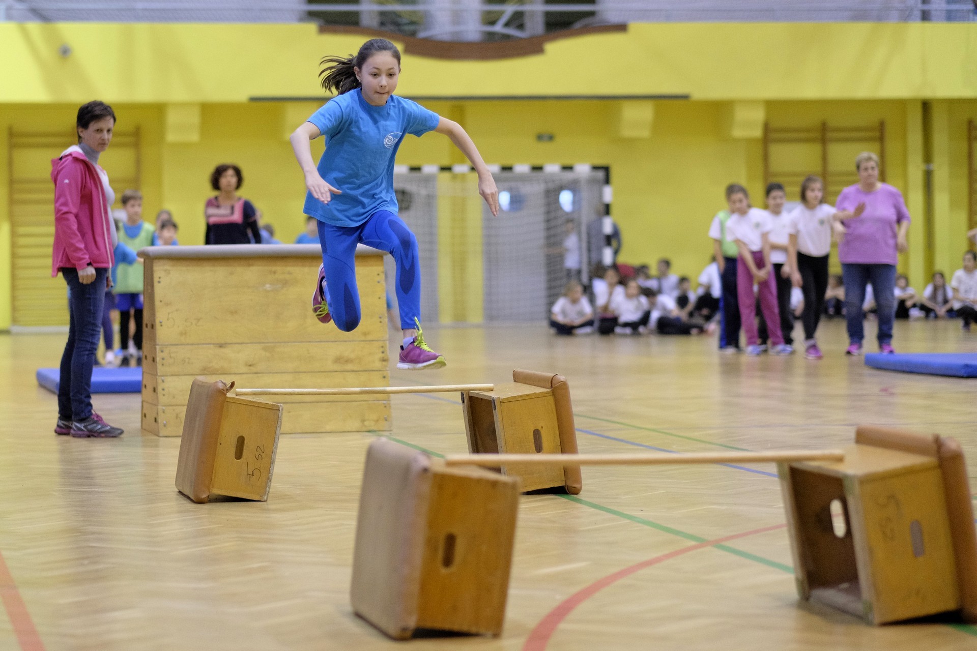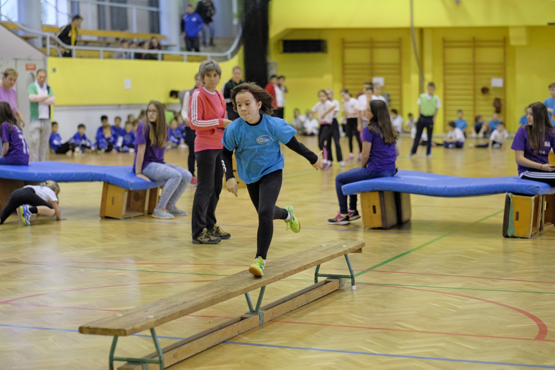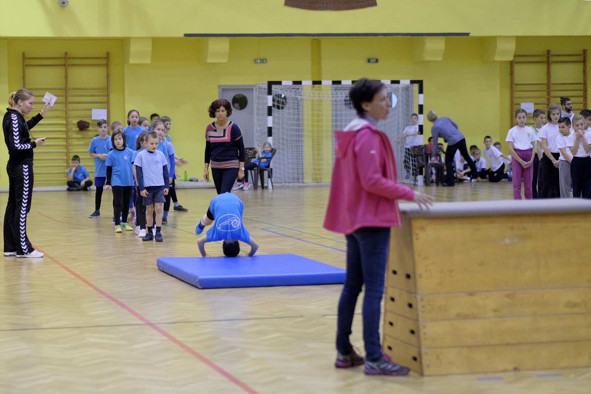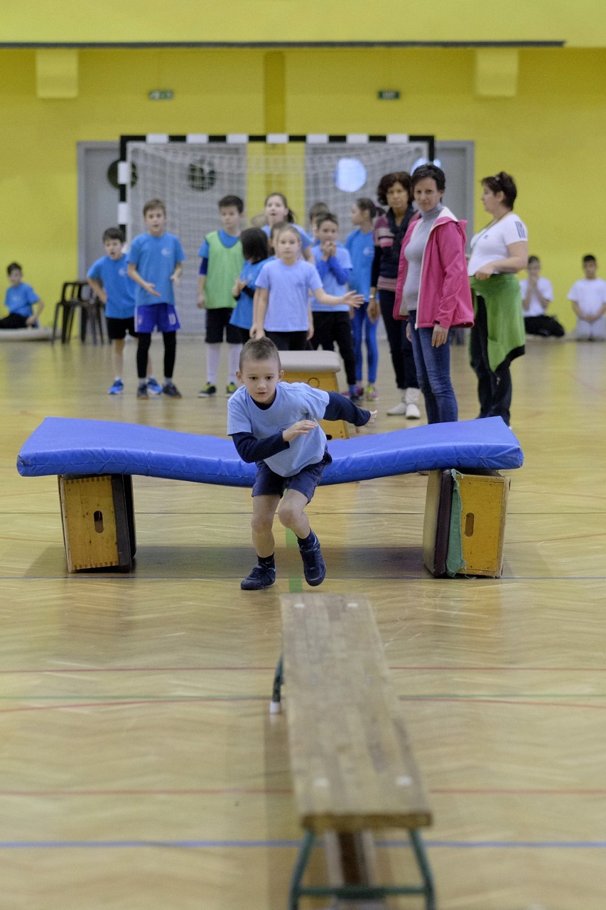 Hat iskola csapata vette fel egymással a versenyt a Baktai Ferencné és csapata által felállított pályán. A sorversenyszerű lebonyolításban olyan gyakorlatok kerültek egymás mellé, mint az akadályugrás, bukfencezés vagy a padon való átfutás. Később előkerültek a labdák és különböző sporteszközök is, és sok, rendkívül változatos versenyszámban mérhették össze erejüket és ügyességüket az alsó tagozatos nebulók. A megmérettetést a versenybírók munkája is nagyban segítette, akik a pontok írása mellett a helyes végrehajtásban is segítettek.