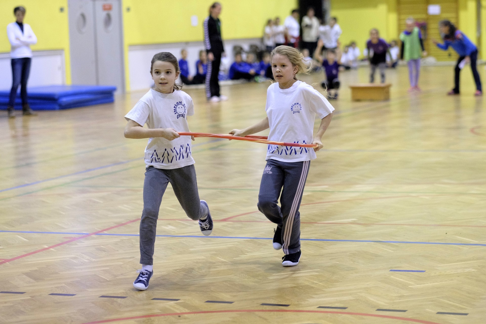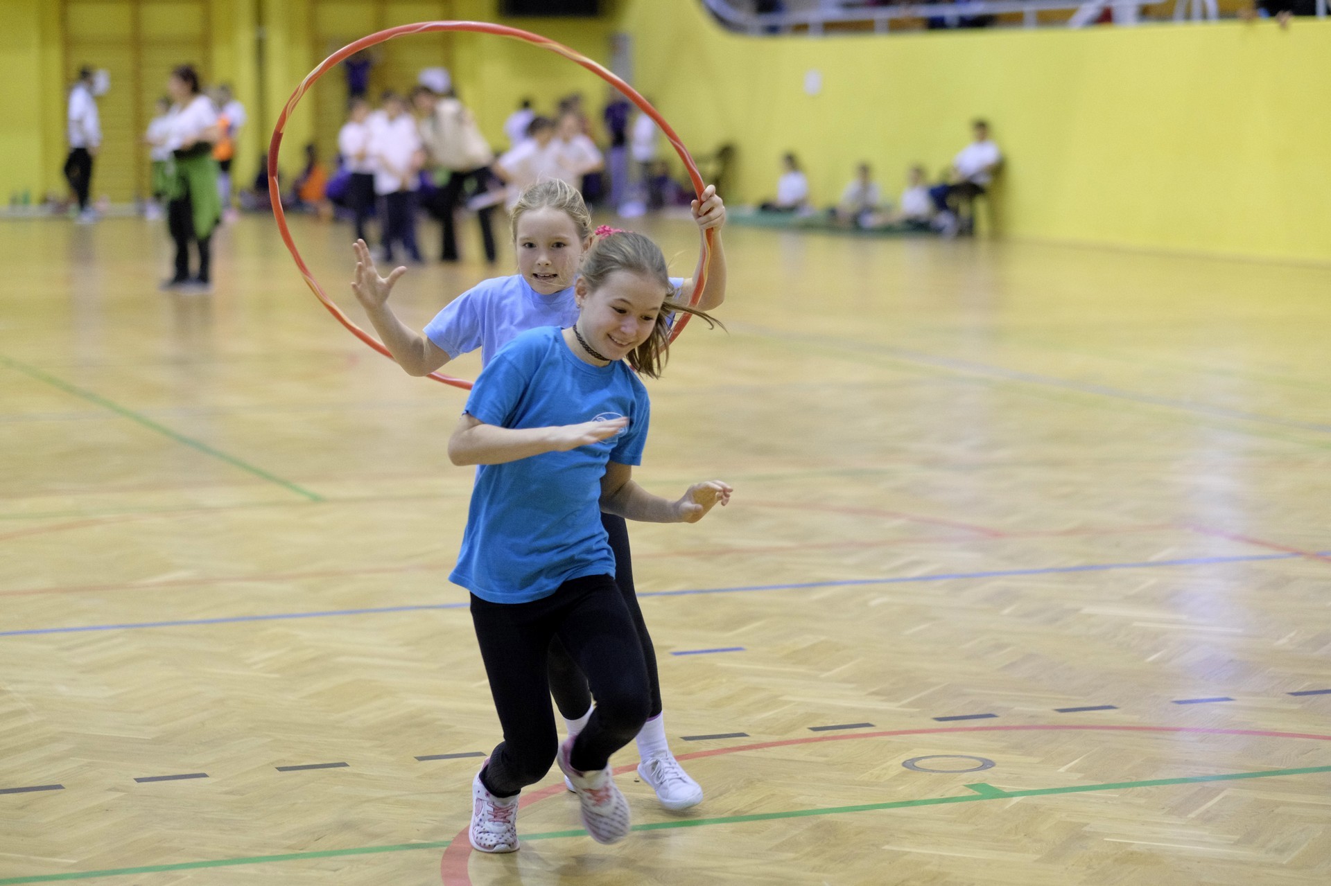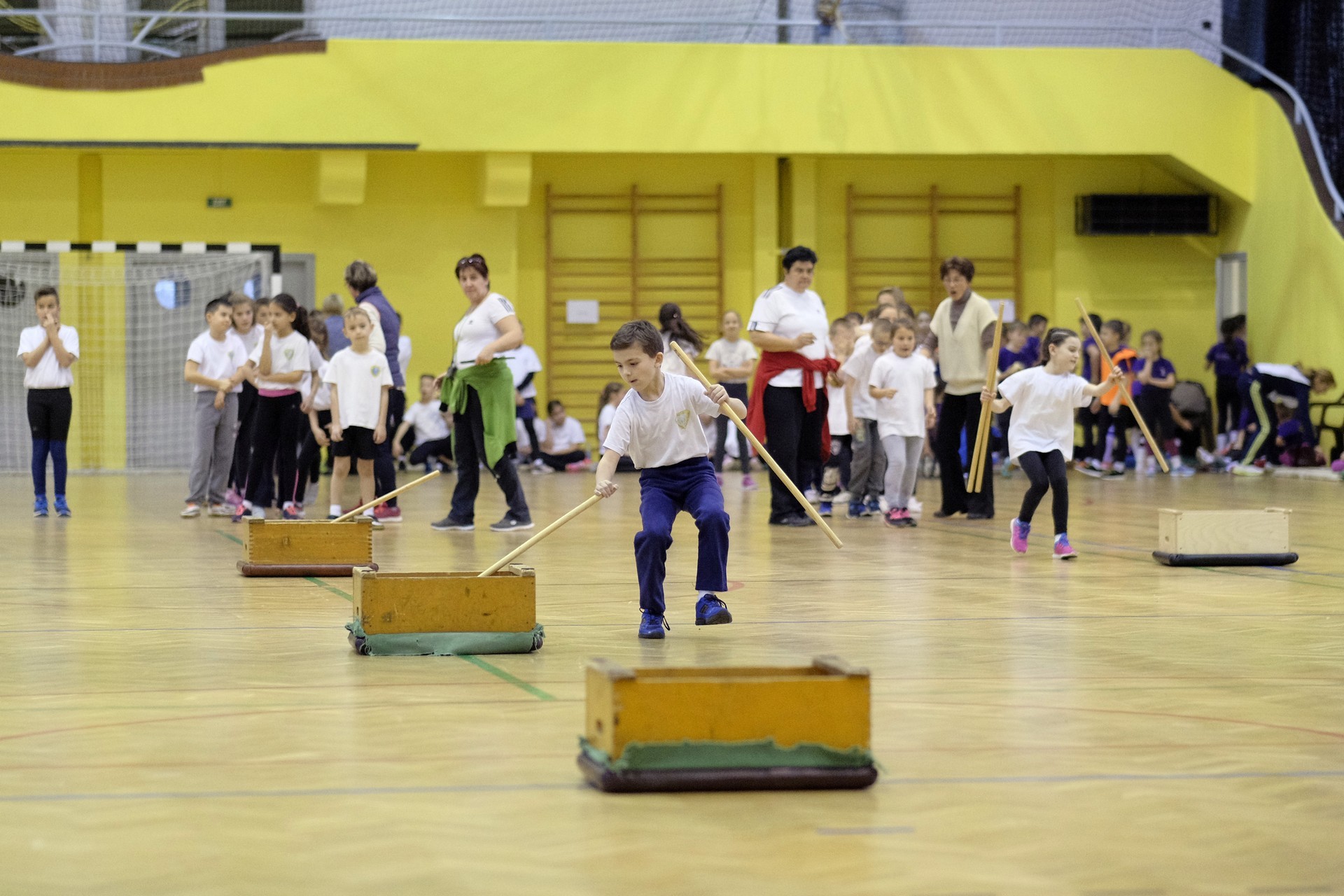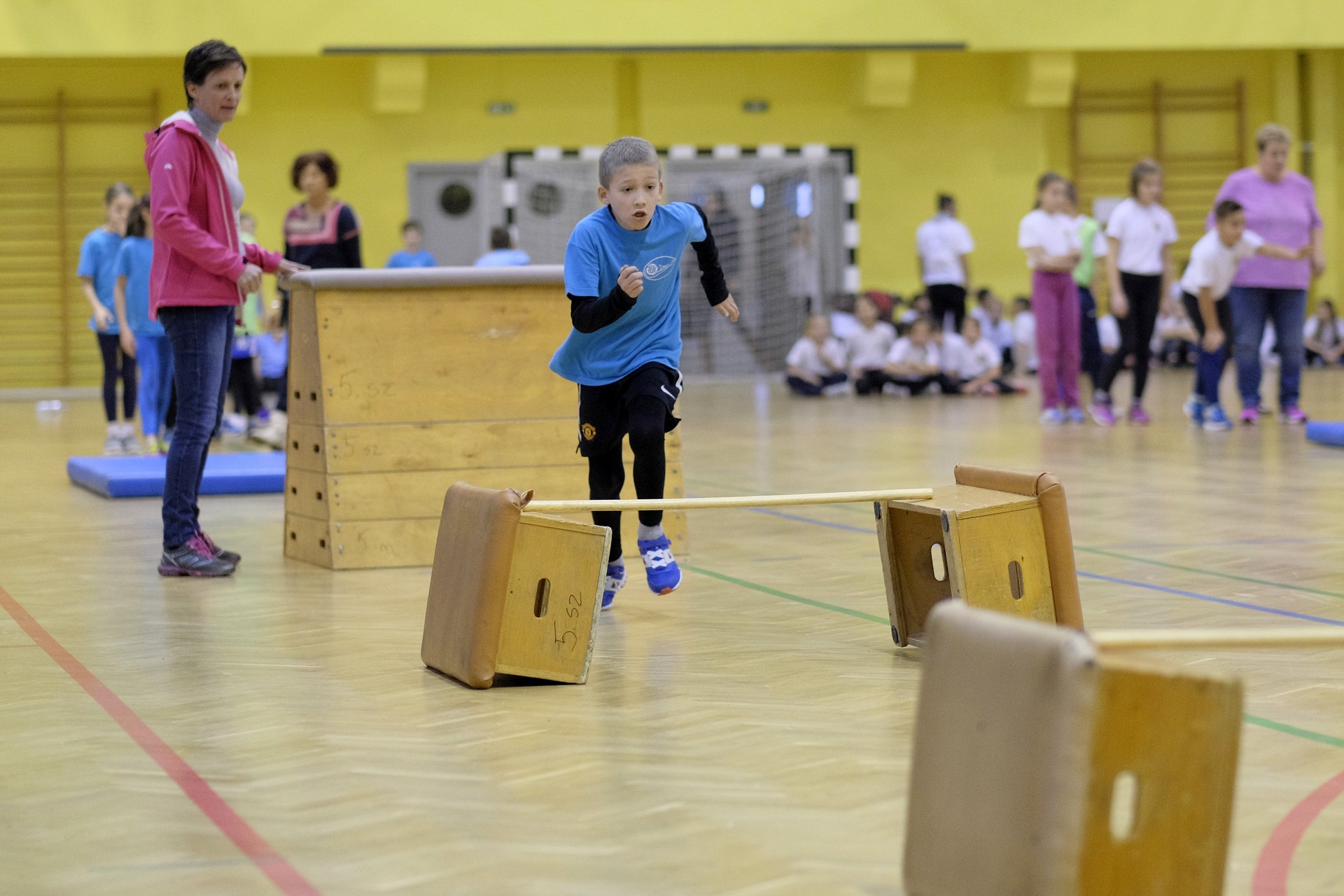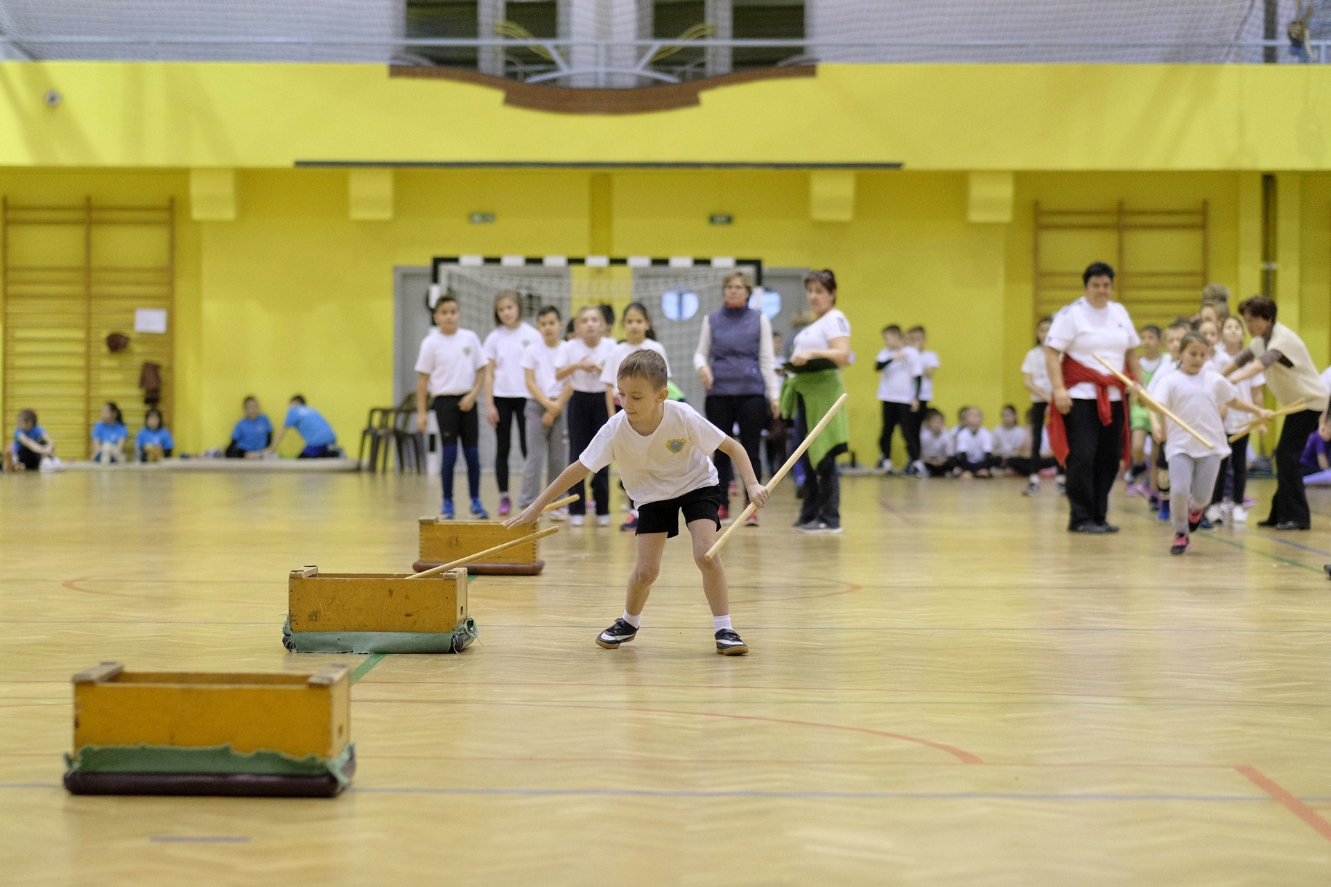 Hat iskola csapata vette fel egymással a versenyt a Baktai Ferencné és csapata által felállított pályán. A sorversenyszerű lebonyolításban olyan gyakorlatok kerültek egymás mellé, mint az akadályugrás, bukfencezés vagy a padon való átfutás. Később előkerültek a labdák és különböző sporteszközök is, és sok, rendkívül változatos versenyszámban mérhették össze erejüket és ügyességüket az alsó tagozatos nebulók. A megmérettetést a versenybírók munkája is nagyban segítette, akik a pontok írása mellett a helyes végrehajtásban is segítettek.
