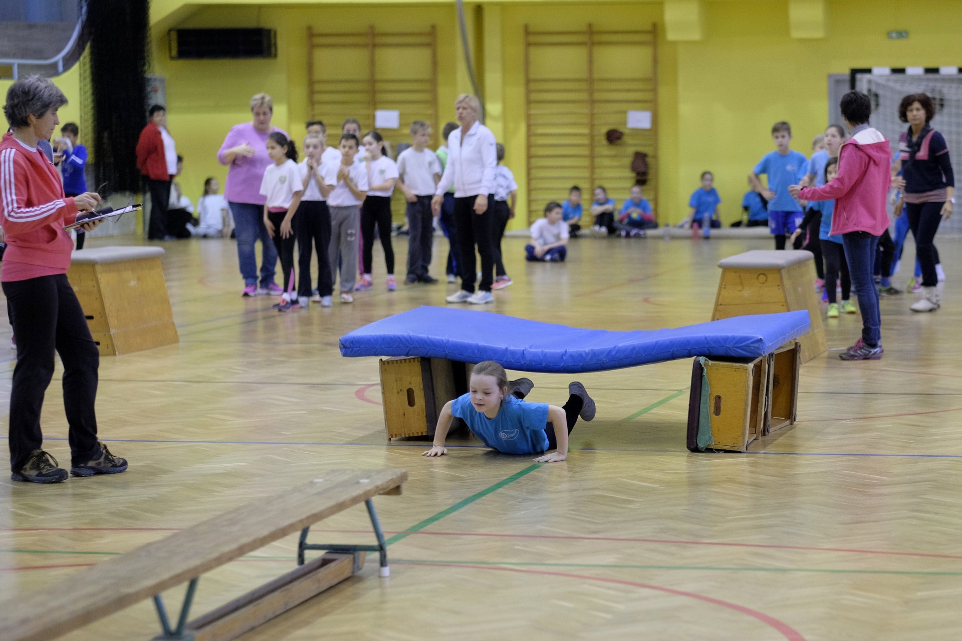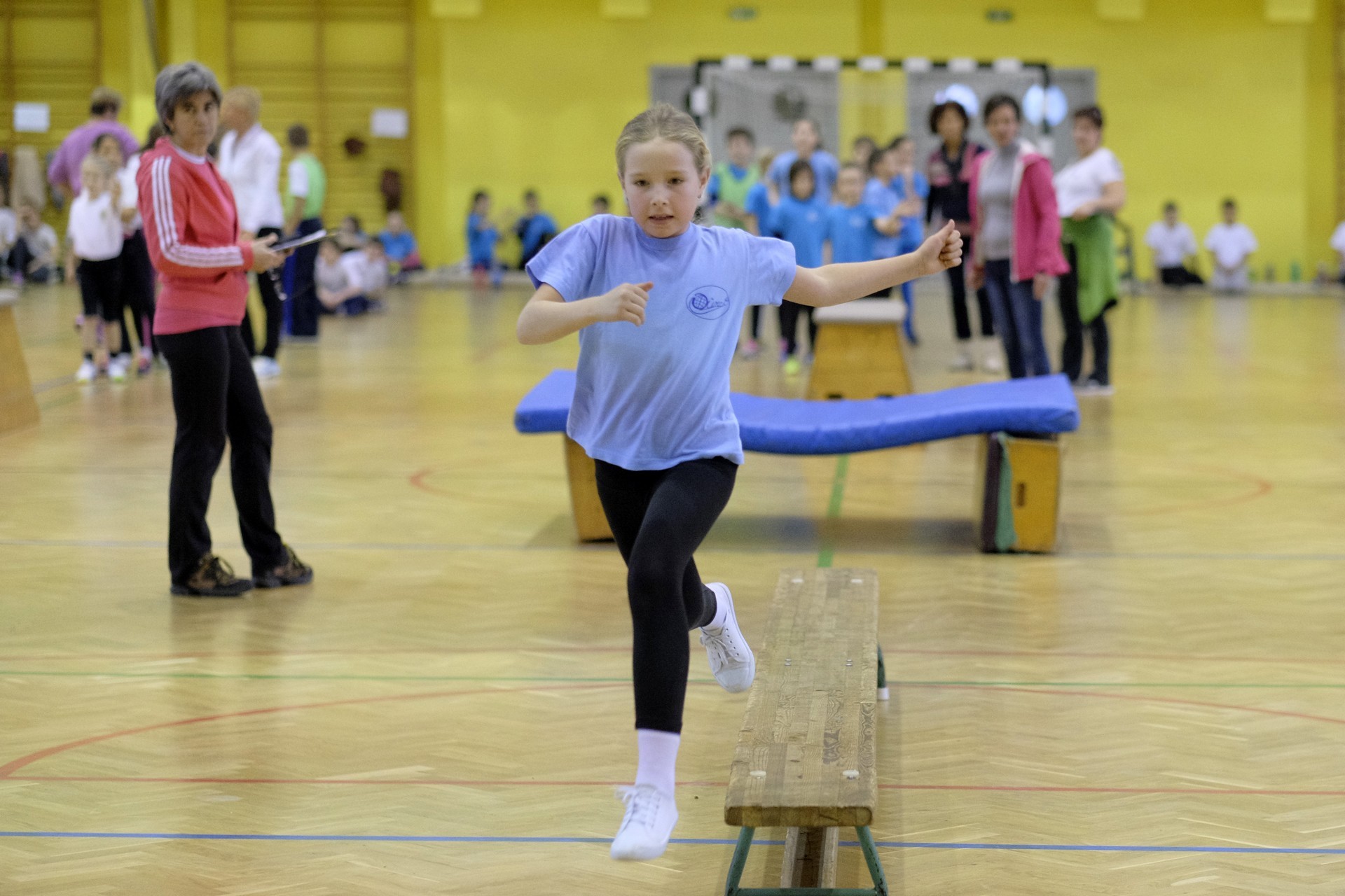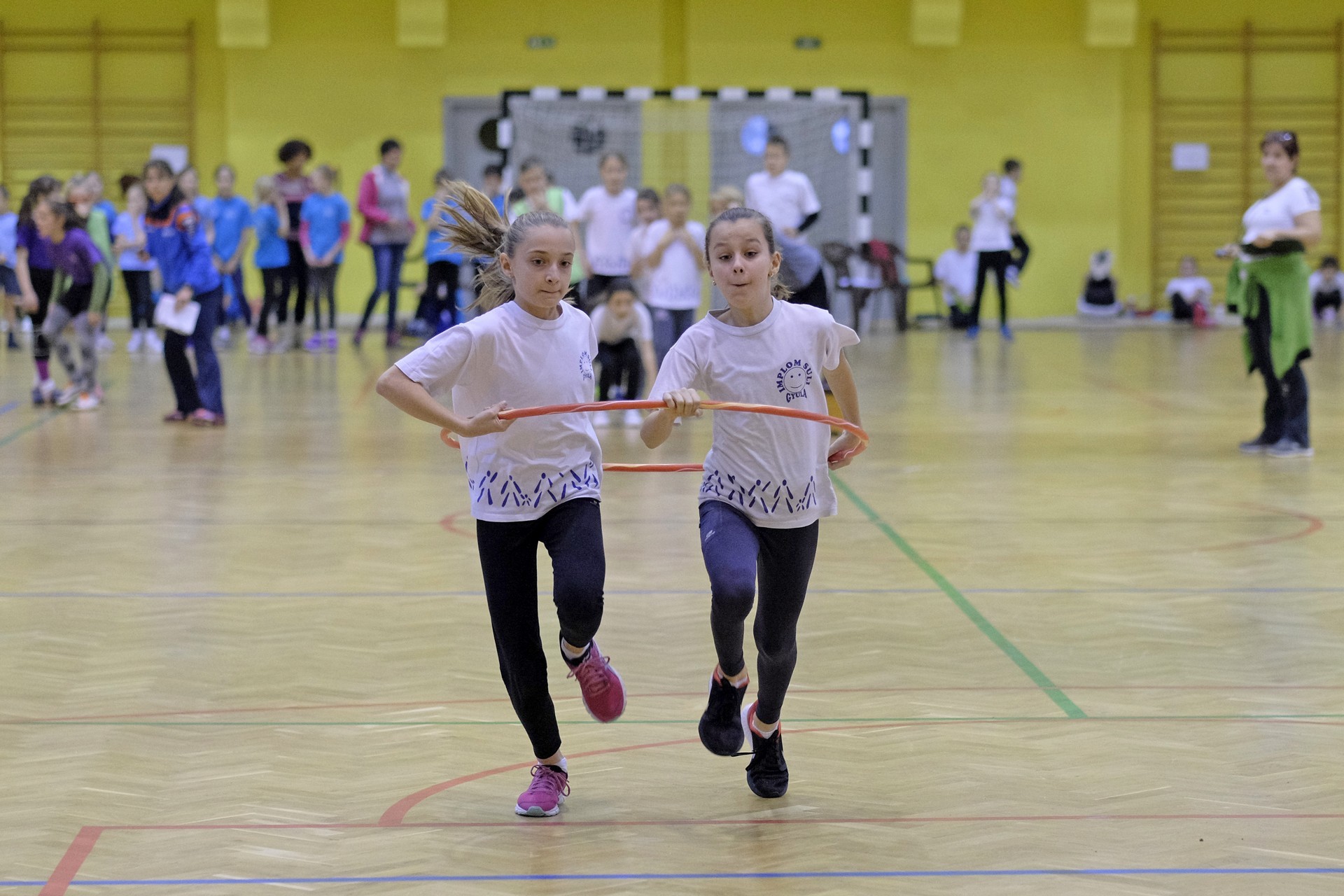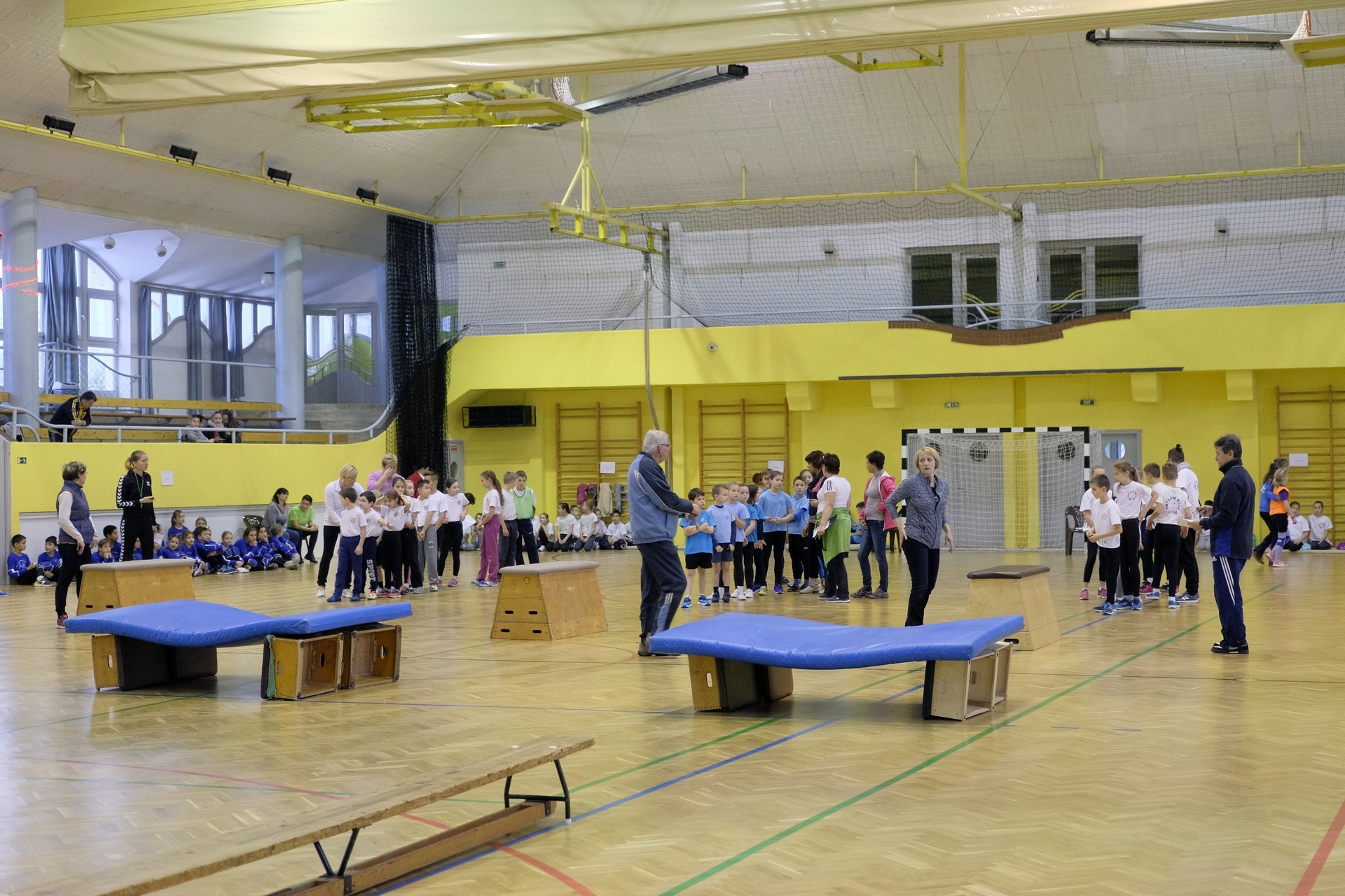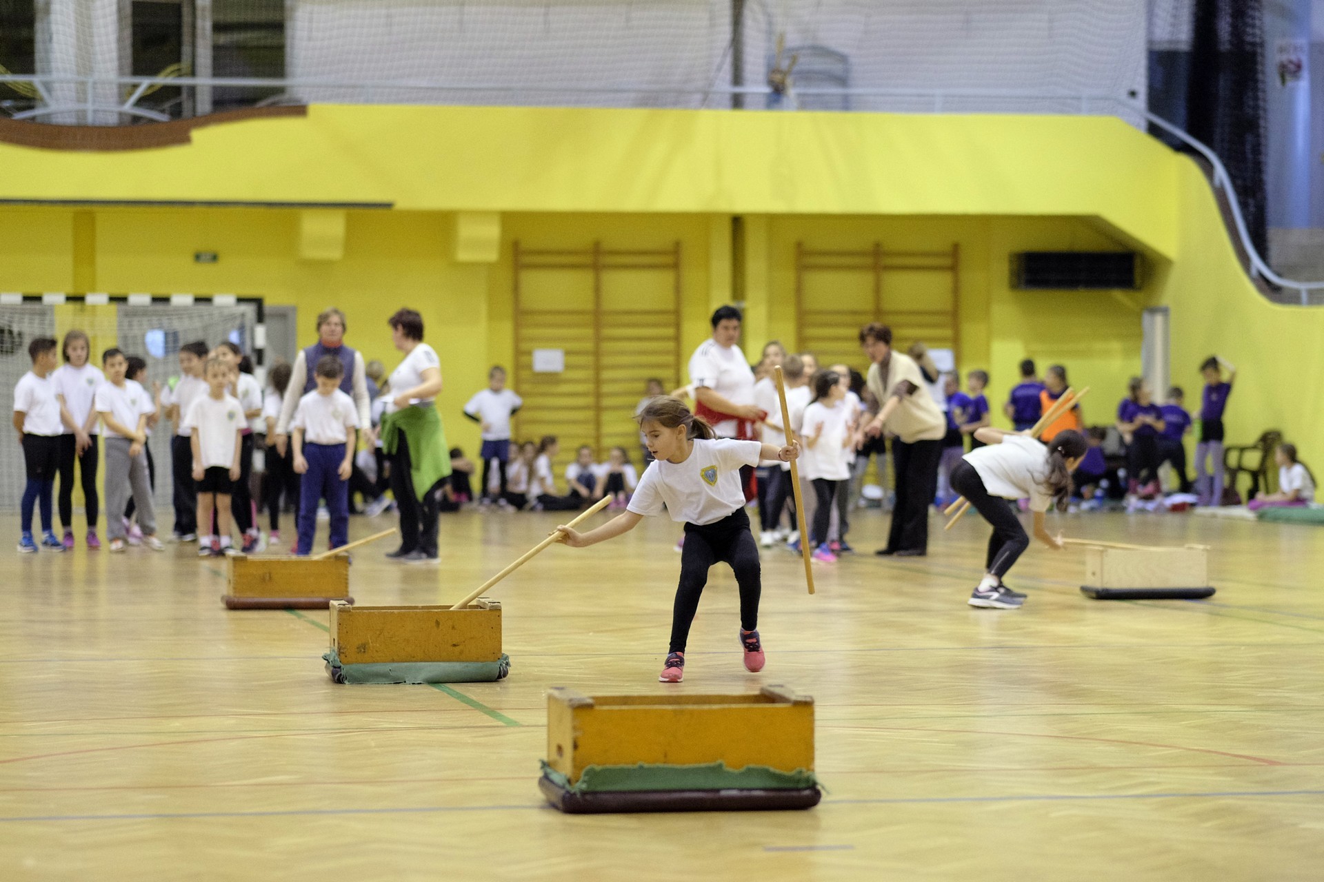 Hat iskola csapata vette fel egymással a versenyt a Baktai Ferencné és csapata által felállított pályán. A sorversenyszerű lebonyolításban olyan gyakorlatok kerültek egymás mellé, mint az akadályugrás, bukfencezés vagy a padon való átfutás. Később előkerültek a labdák és különböző sporteszközök is, és sok, rendkívül változatos versenyszámban mérhették össze erejüket és ügyességüket az alsó tagozatos nebulók. A megmérettetést a versenybírók munkája is nagyban segítette, akik a pontok írása mellett a helyes végrehajtásban is segítettek.