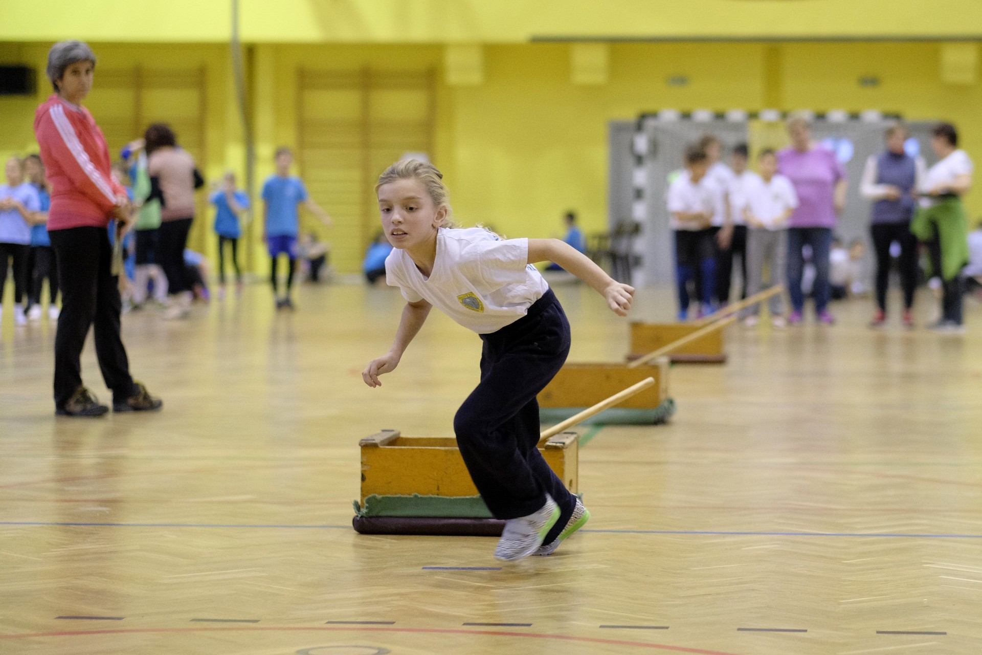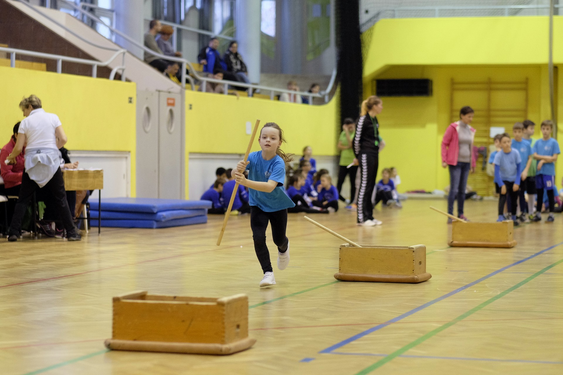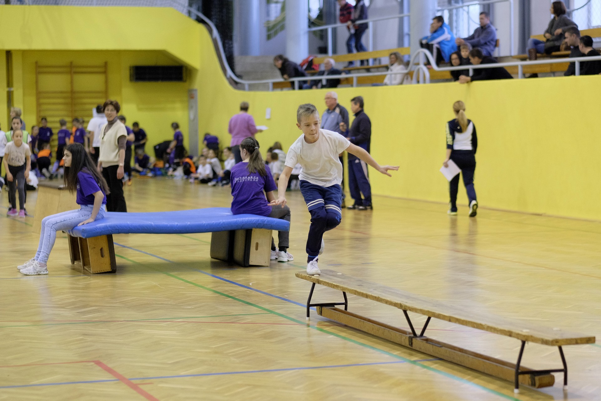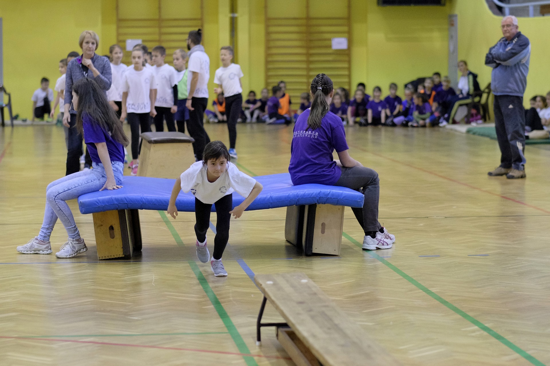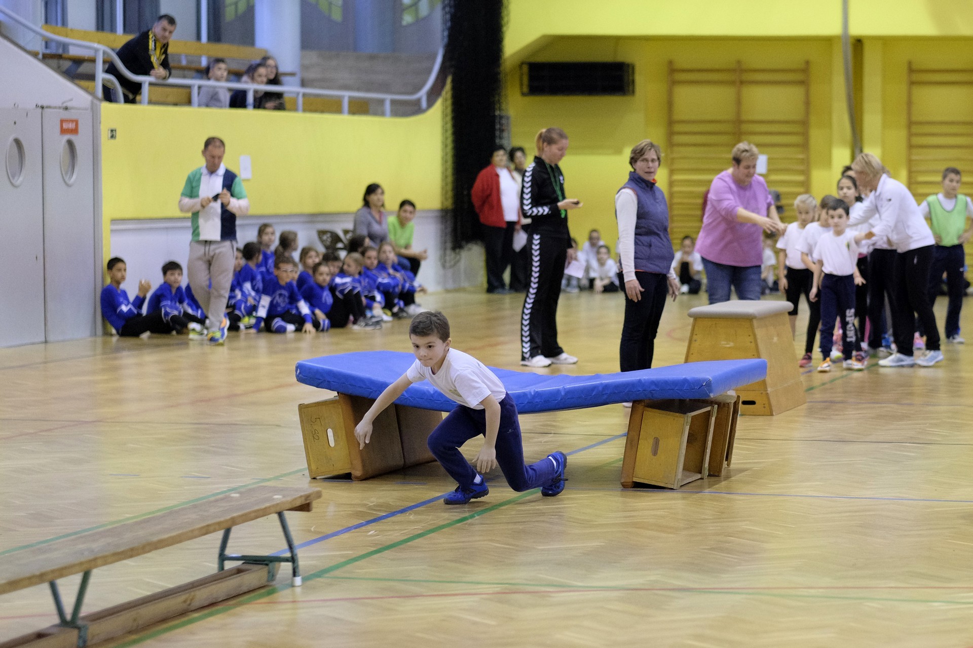 Hat iskola csapata vette fel egymással a versenyt a Baktai Ferencné és csapata által felállított pályán. A sorversenyszerű lebonyolításban olyan gyakorlatok kerültek egymás mellé, mint az akadályugrás, bukfencezés vagy a padon való átfutás. Később előkerültek a labdák és különböző sporteszközök is, és sok, rendkívül változatos versenyszámban mérhették össze erejüket és ügyességüket az alsó tagozatos nebulók. A megmérettetést a versenybírók munkája is nagyban segítette, akik a pontok írása mellett a helyes végrehajtásban is segítettek.