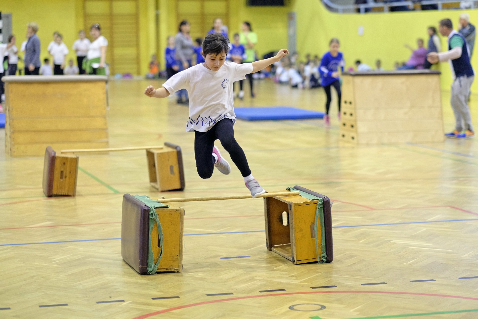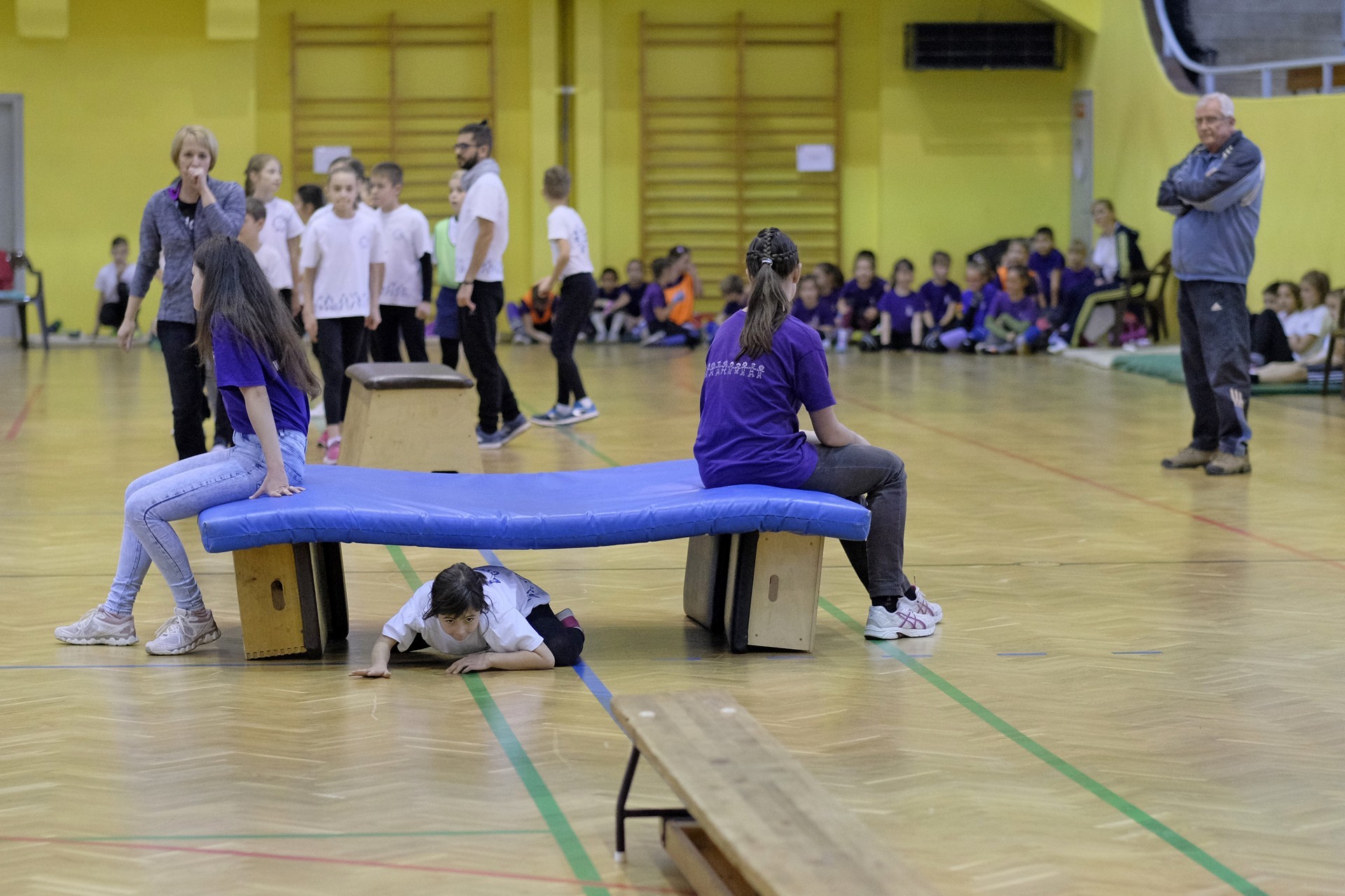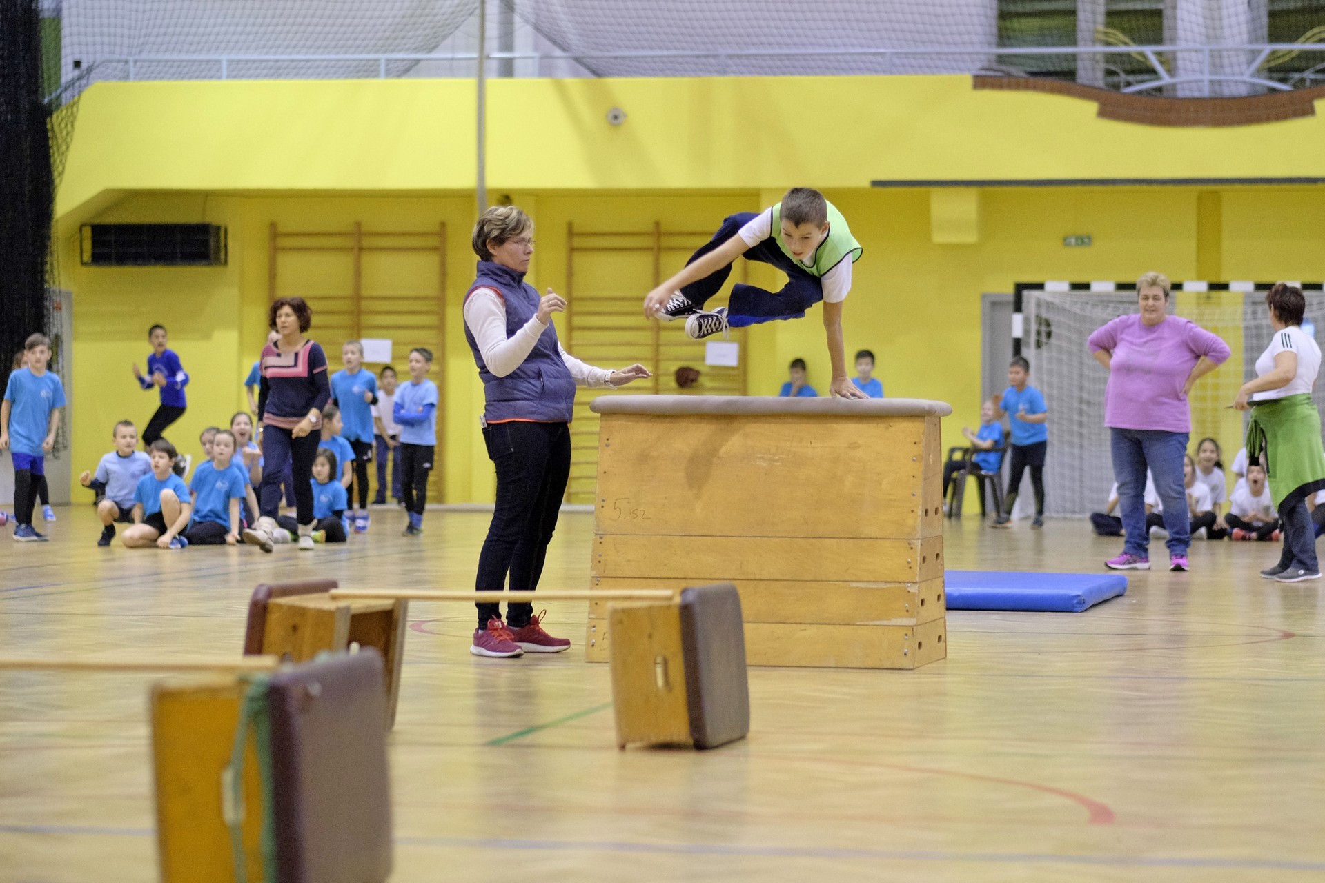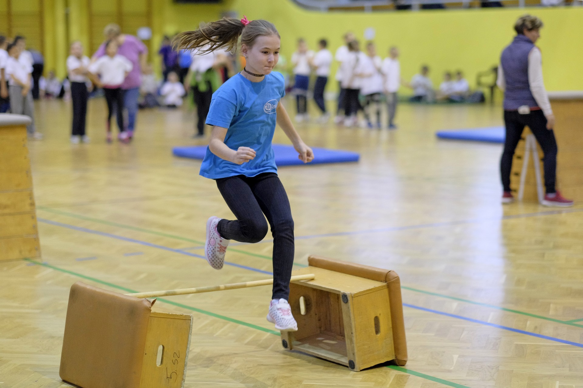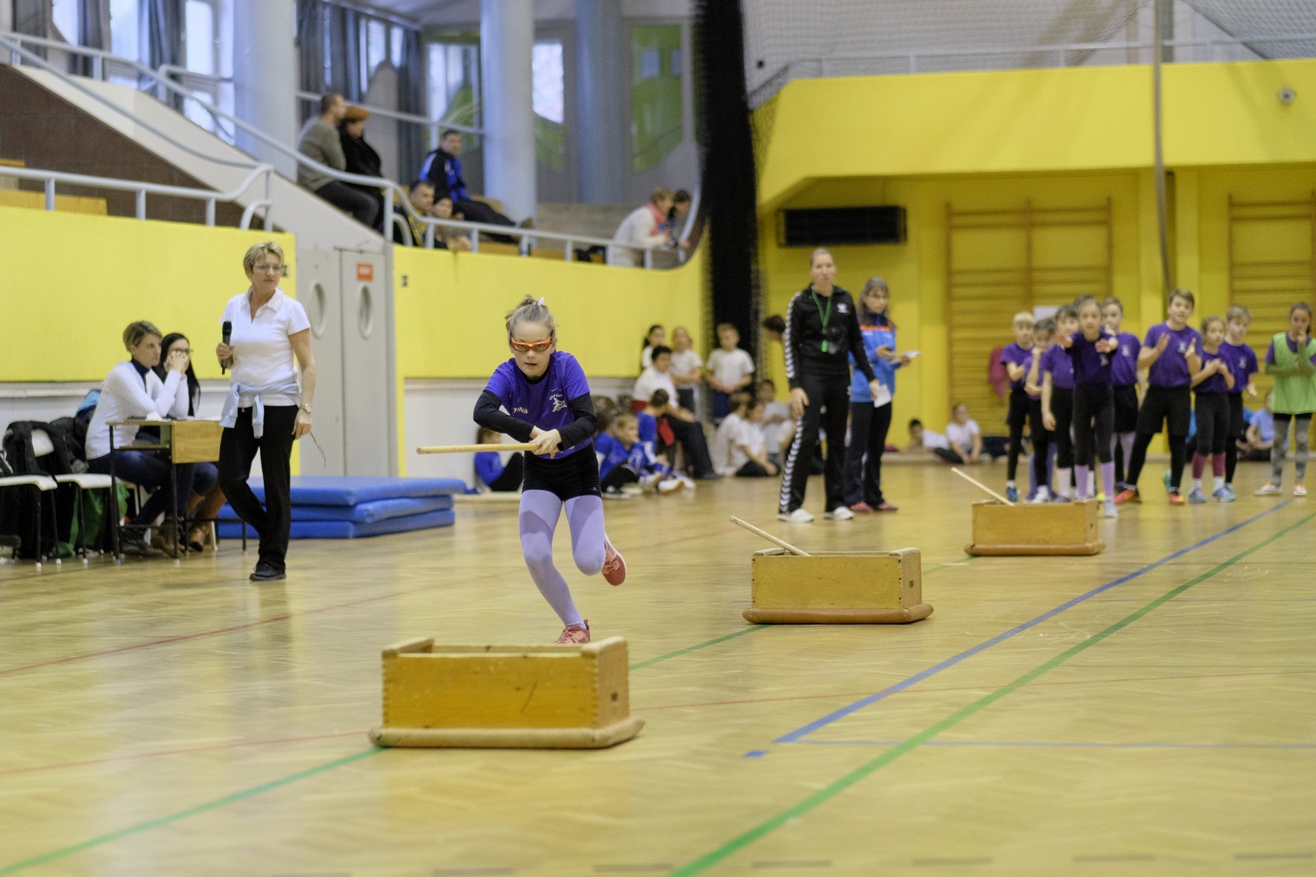 Hat iskola csapata vette fel egymással a versenyt a Baktai Ferencné és csapata által felállított pályán. A sorversenyszerű lebonyolításban olyan gyakorlatok kerültek egymás mellé, mint az akadályugrás, bukfencezés vagy a padon való átfutás. Később előkerültek a labdák és különböző sporteszközök is, és sok, rendkívül változatos versenyszámban mérhették össze erejüket és ügyességüket az alsó tagozatos nebulók. A megmérettetést a versenybírók munkája is nagyban segítette, akik a pontok írása mellett a helyes végrehajtásban is segítettek.