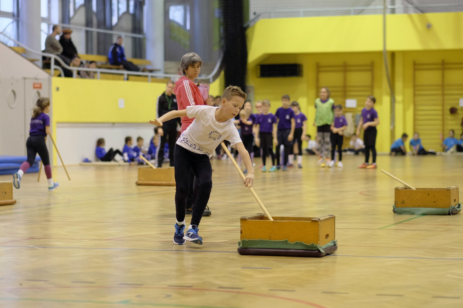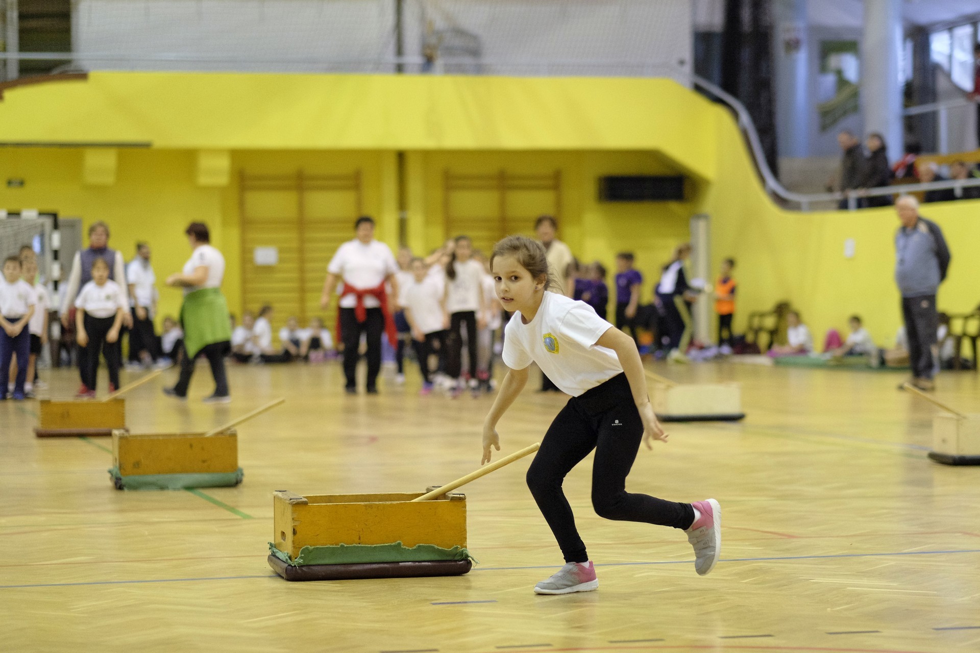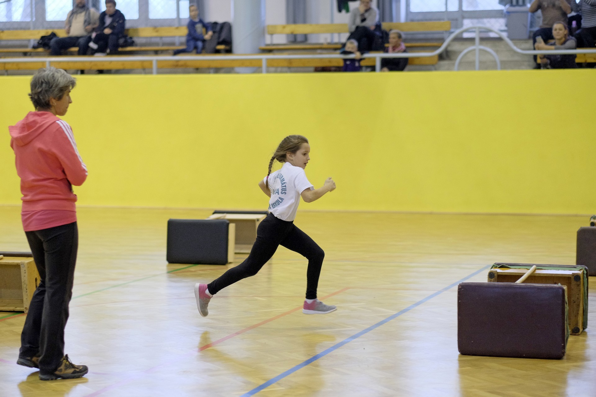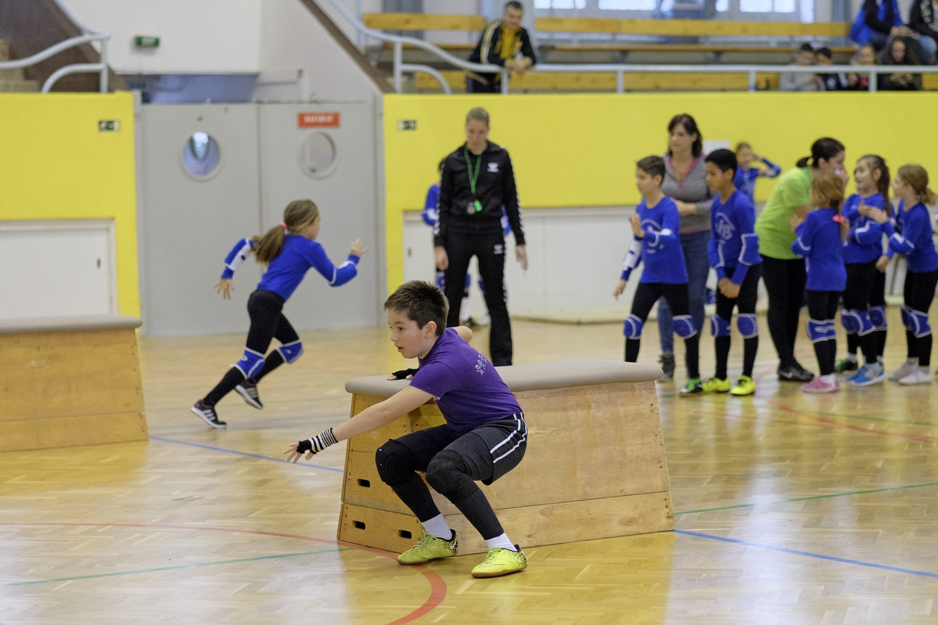 Hat iskola csapata vette fel egymással a versenyt a Baktai Ferencné és csapata által felállított pályán. A sorversenyszerű lebonyolításban olyan gyakorlatok kerültek egymás mellé, mint az akadályugrás, bukfencezés vagy a padon való átfutás. Később előkerültek a labdák és különböző sporteszközök is, és sok, rendkívül változatos versenyszámban mérhették össze erejüket és ügyességüket az alsó tagozatos nebulók. A megmérettetést a versenybírók munkája is nagyban segítette, akik a pontok írása mellett a helyes végrehajtásban is segítettek.