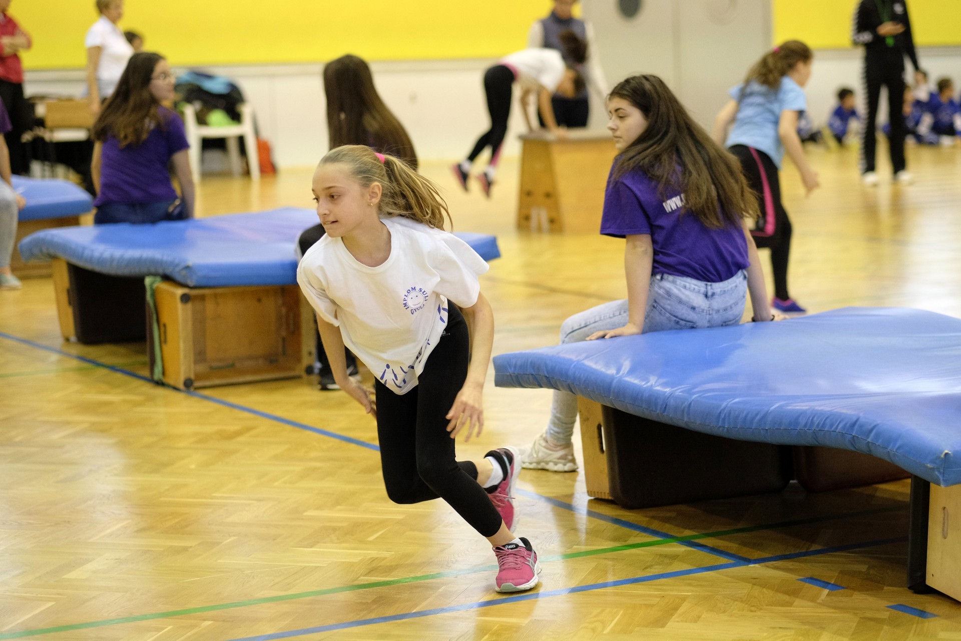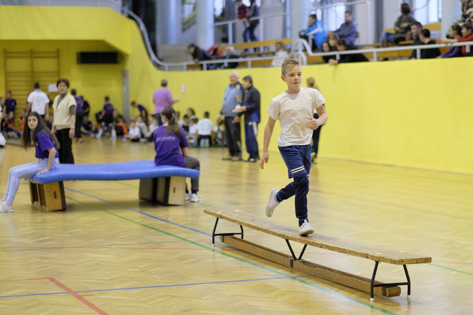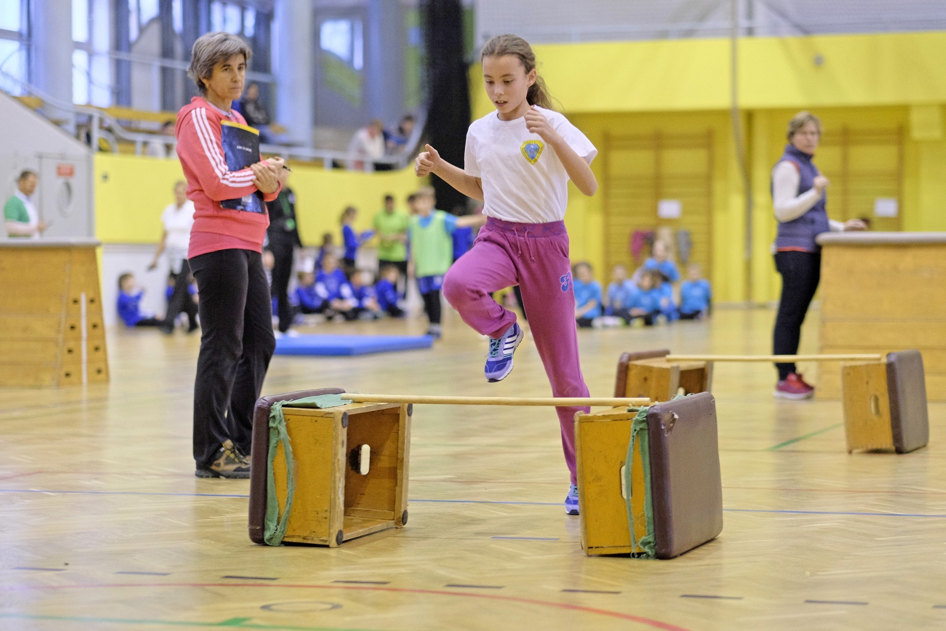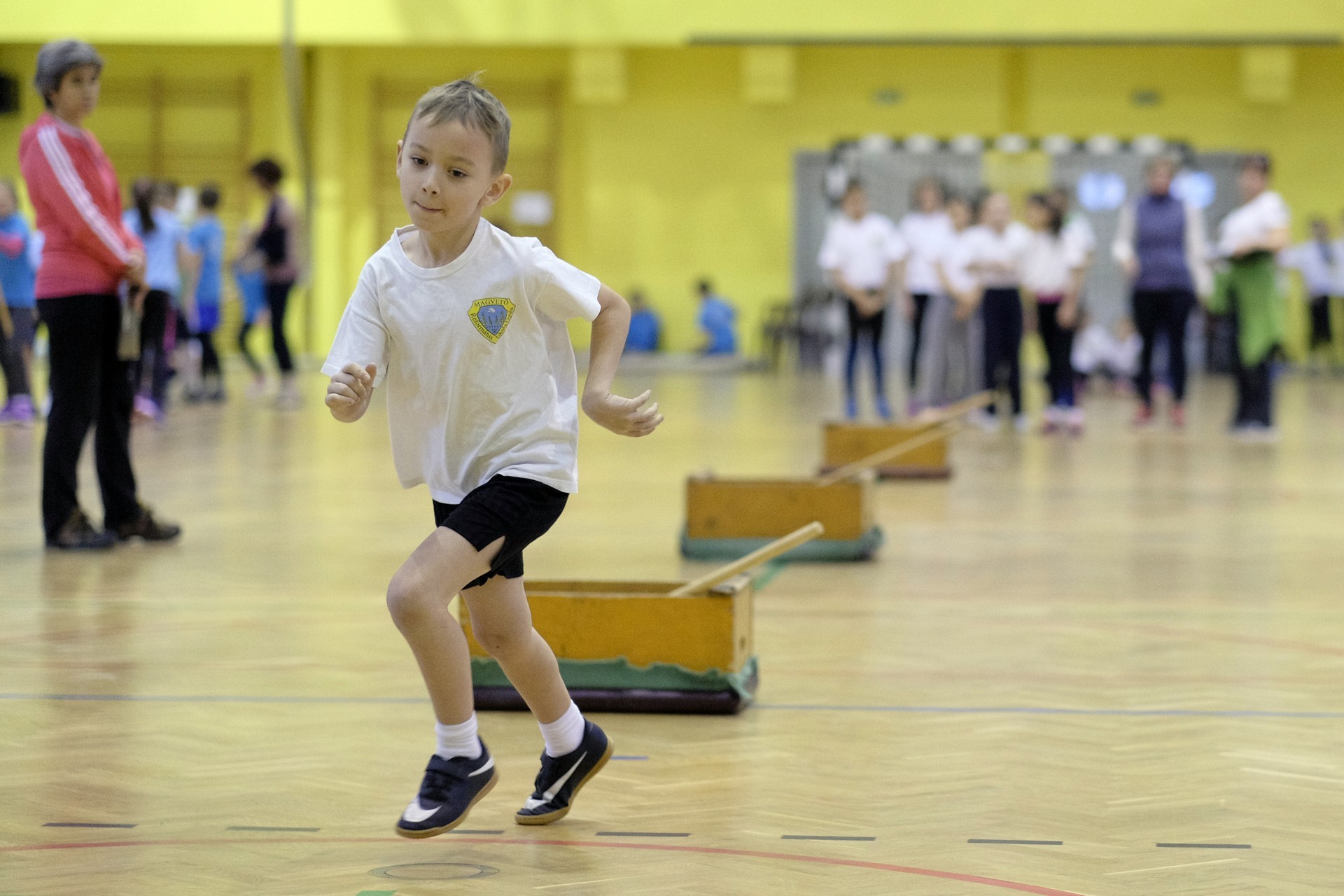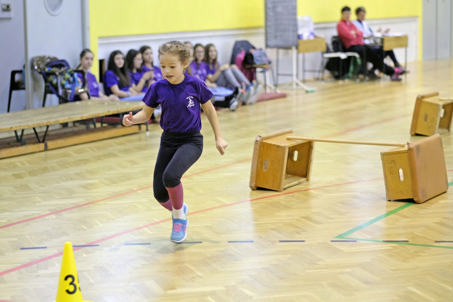 Hat iskola csapata vette fel egymással a versenyt a Baktai Ferencné és csapata által felállított pályán. A sorversenyszerű lebonyolításban olyan gyakorlatok kerültek egymás mellé, mint az akadályugrás, bukfencezés vagy a padon való átfutás. Később előkerültek a labdák és különböző sporteszközök is, és sok, rendkívül változatos versenyszámban mérhették össze erejüket és ügyességüket az alsó tagozatos nebulók. A megmérettetést a versenybírók munkája is nagyban segítette, akik a pontok írása mellett a helyes végrehajtásban is segítettek.
