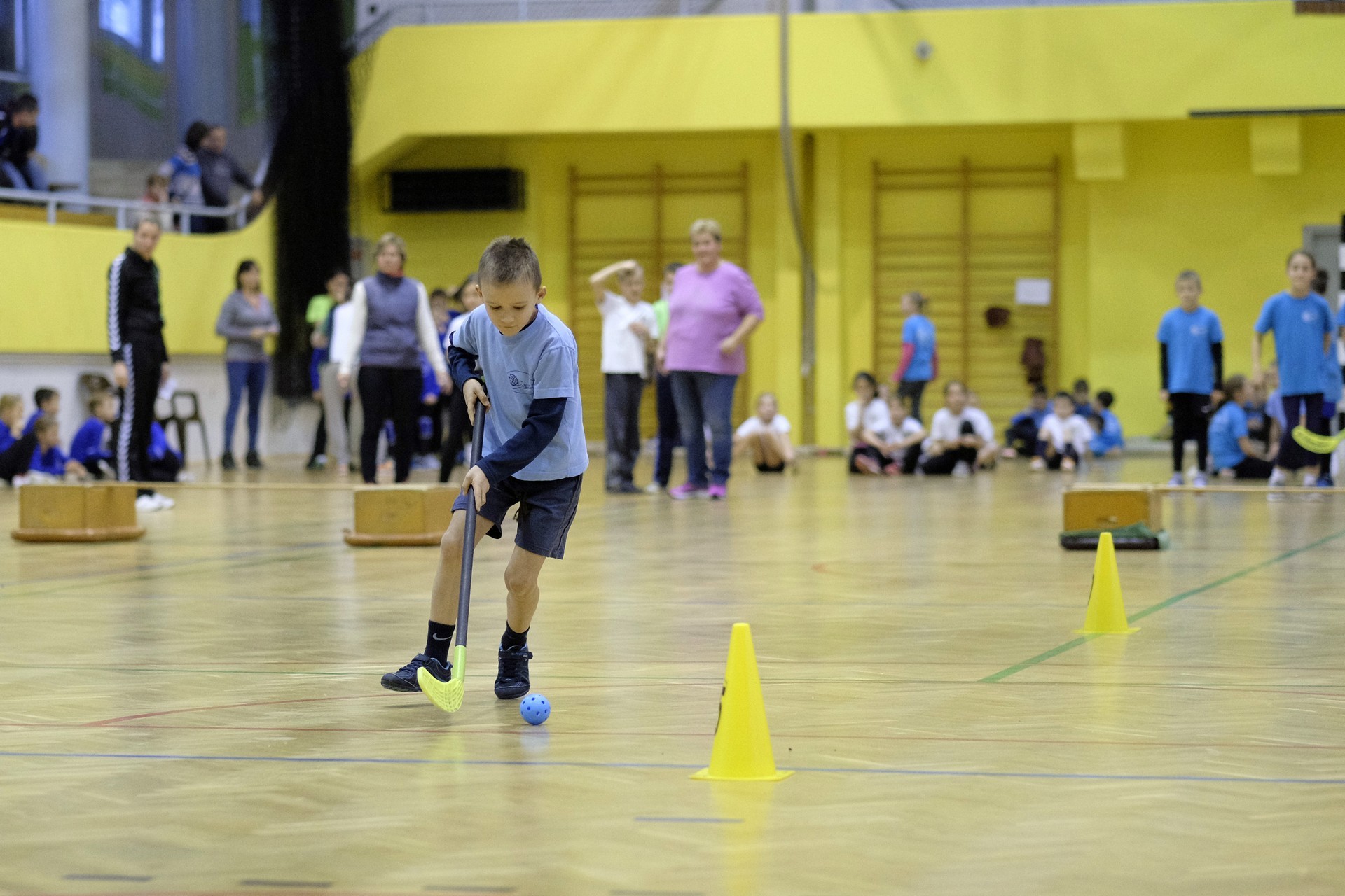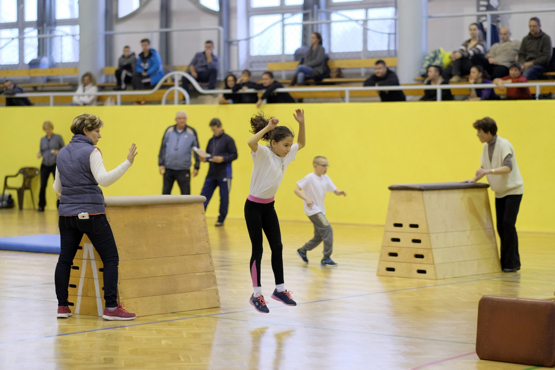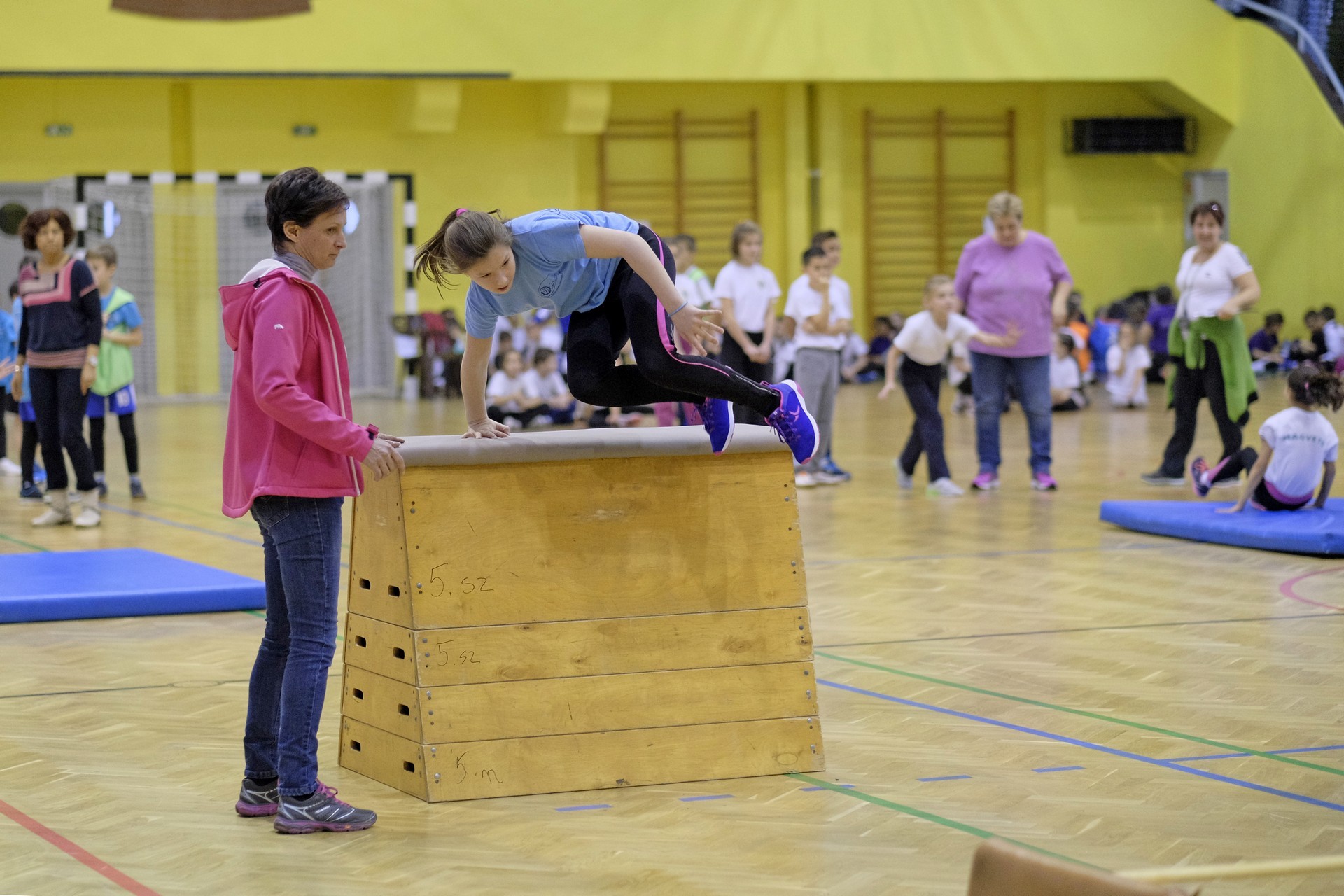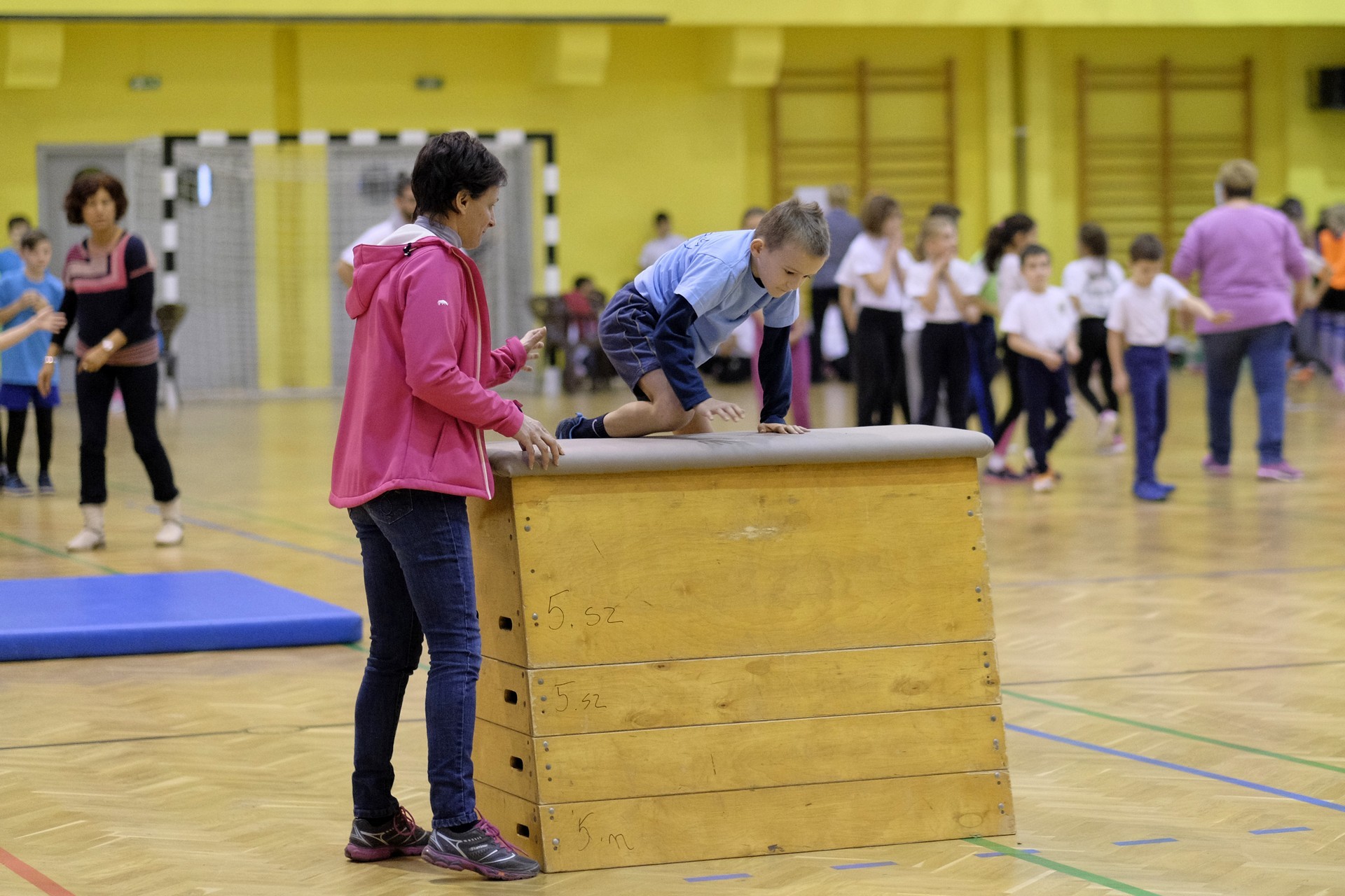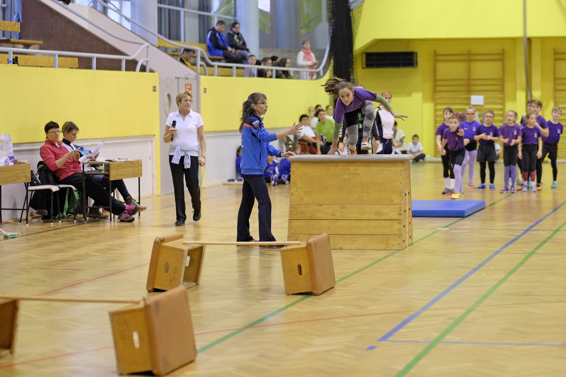 Hat iskola csapata vette fel egymással a versenyt a Baktai Ferencné és csapata által felállított pályán. A sorversenyszerű lebonyolításban olyan gyakorlatok kerültek egymás mellé, mint az akadályugrás, bukfencezés vagy a padon való átfutás. Később előkerültek a labdák és különböző sporteszközök is, és sok, rendkívül változatos versenyszámban mérhették össze erejüket és ügyességüket az alsó tagozatos nebulók. A megmérettetést a versenybírók munkája is nagyban segítette, akik a pontok írása mellett a helyes végrehajtásban is segítettek.