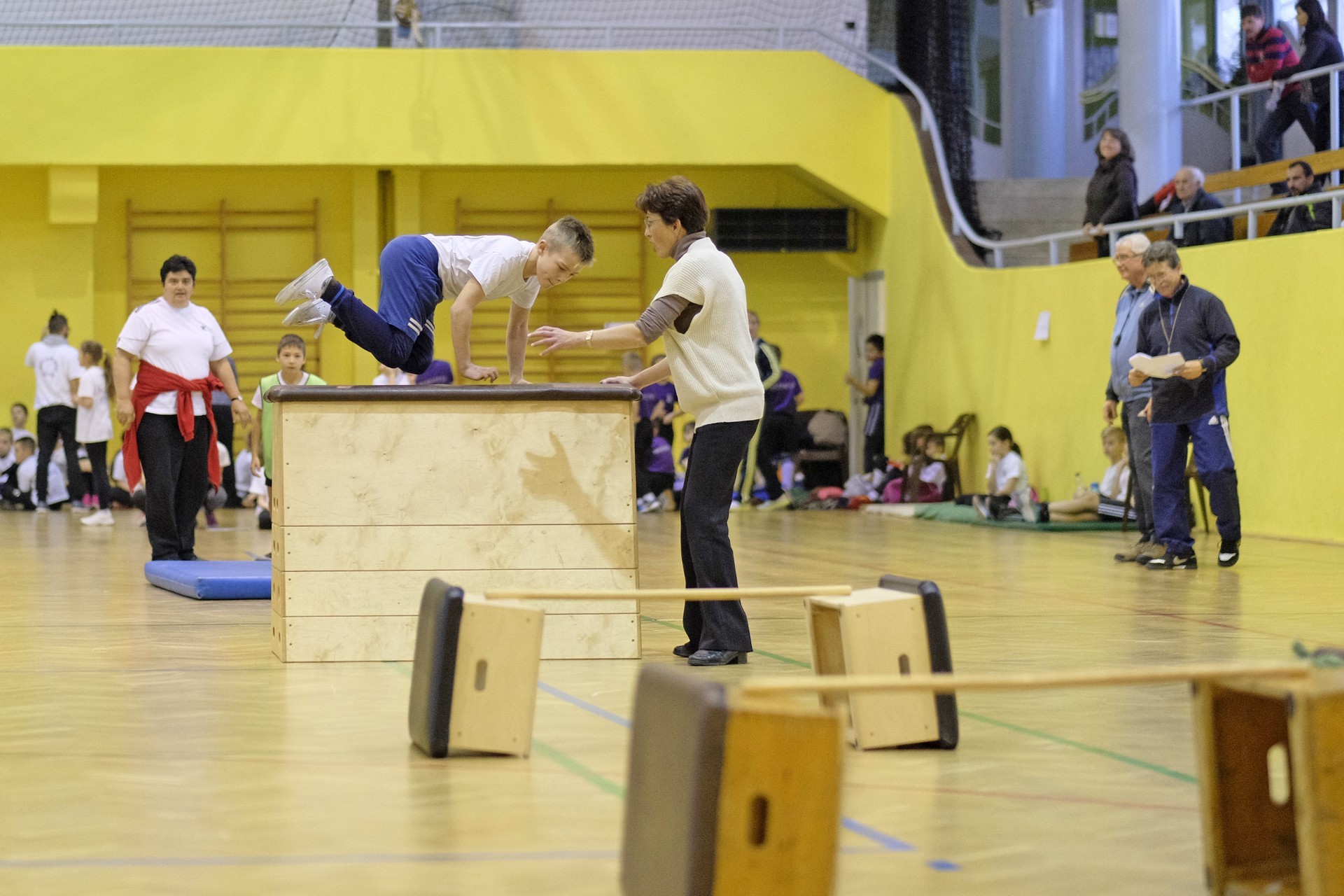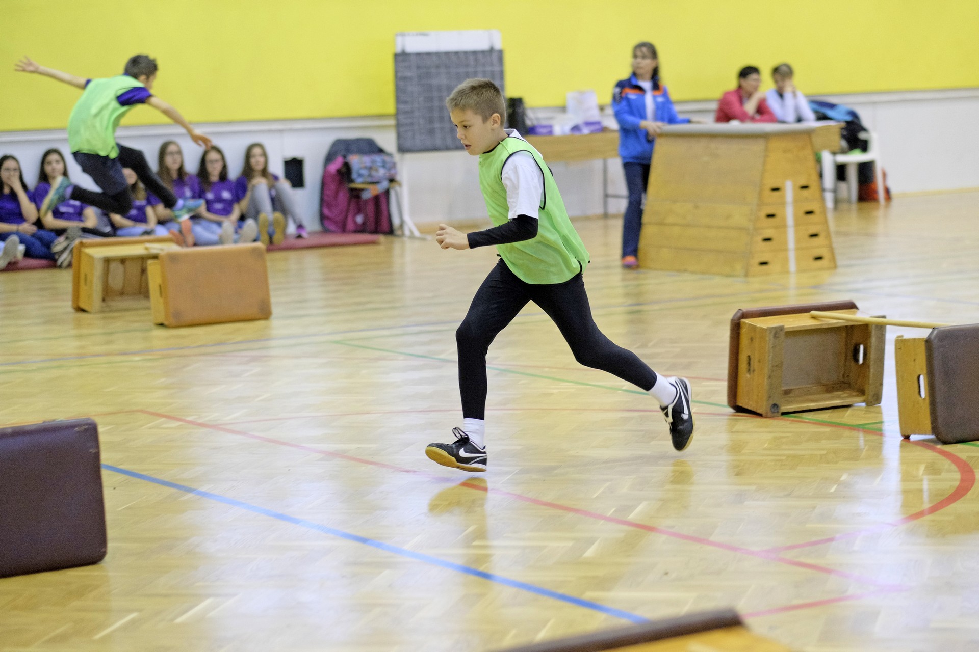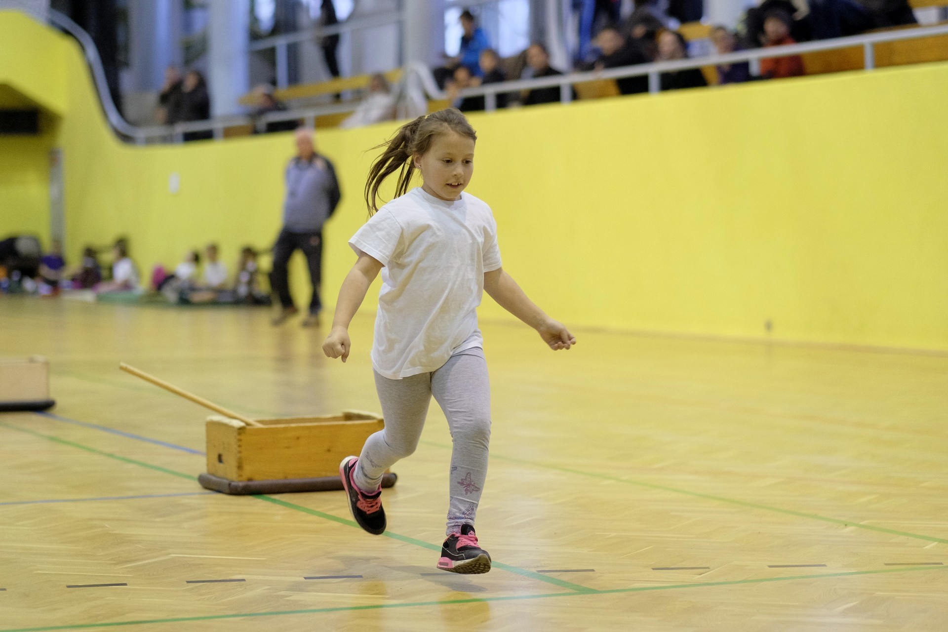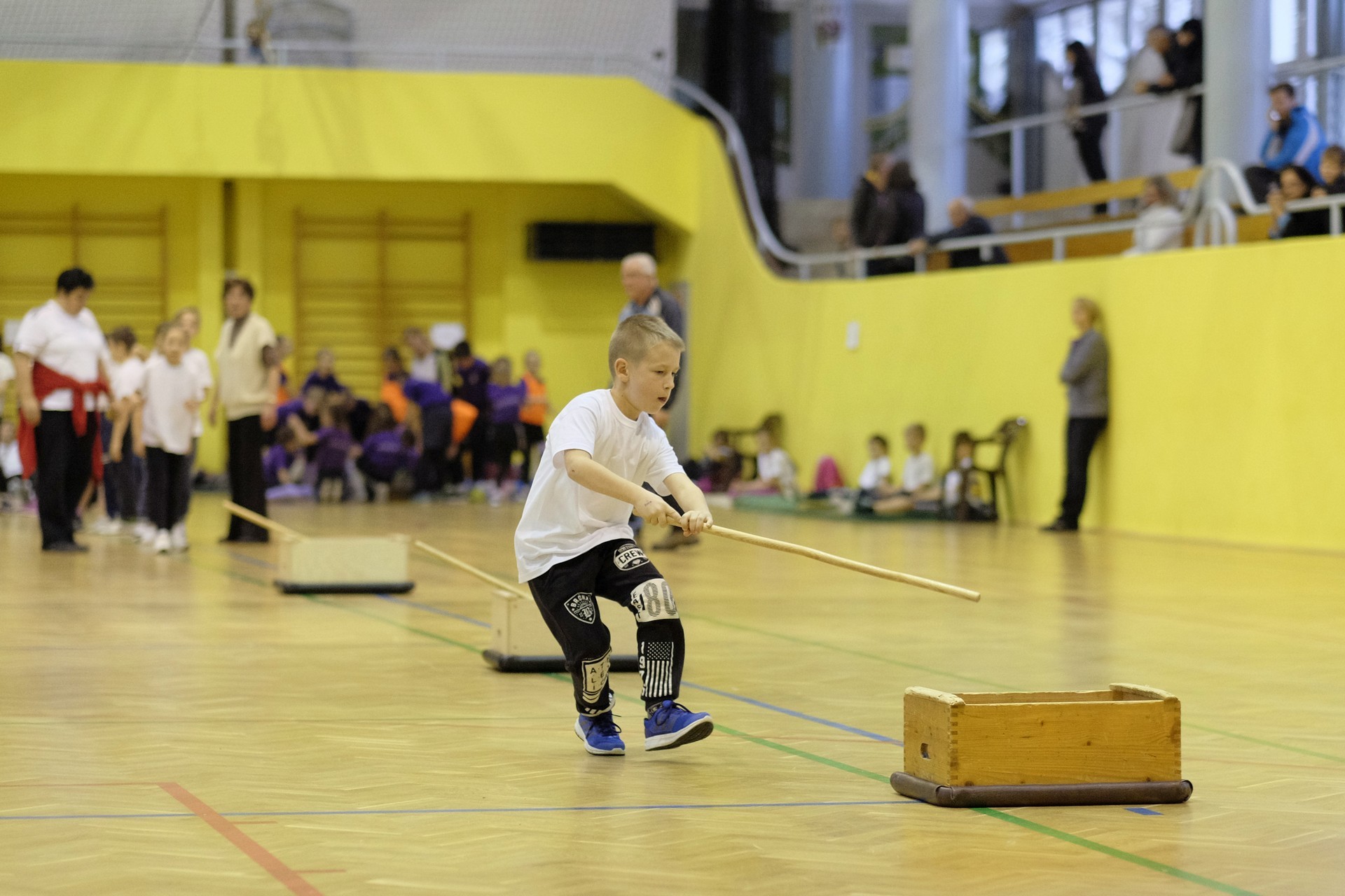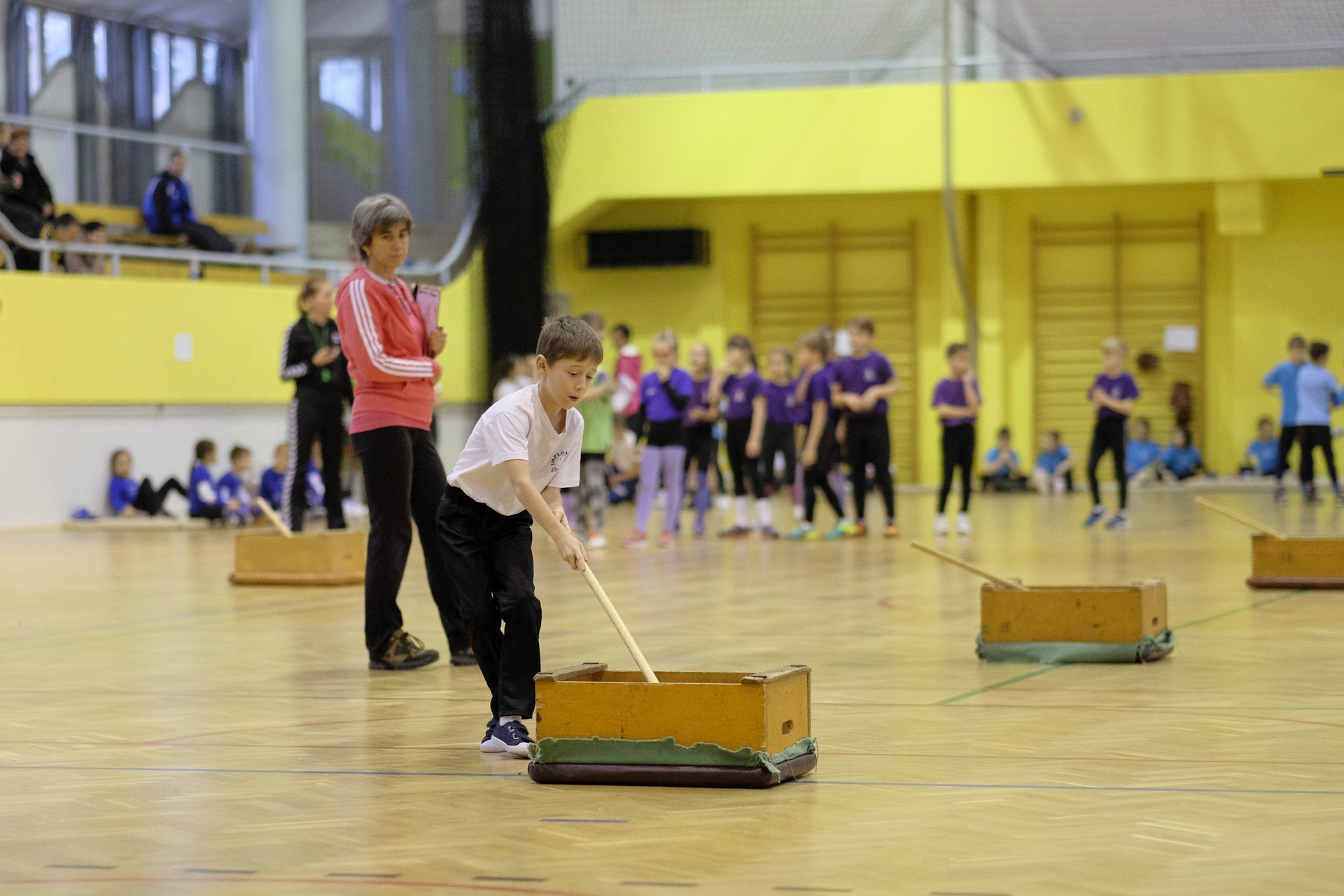 Hat iskola csapata vette fel egymással a versenyt a Baktai Ferencné és csapata által felállított pályán. A sorversenyszerű lebonyolításban olyan gyakorlatok kerültek egymás mellé, mint az akadályugrás, bukfencezés vagy a padon való átfutás. Később előkerültek a labdák és különböző sporteszközök is, és sok, rendkívül változatos versenyszámban mérhették össze erejüket és ügyességüket az alsó tagozatos nebulók. A megmérettetést a versenybírók munkája is nagyban segítette, akik a pontok írása mellett a helyes végrehajtásban is segítettek.
