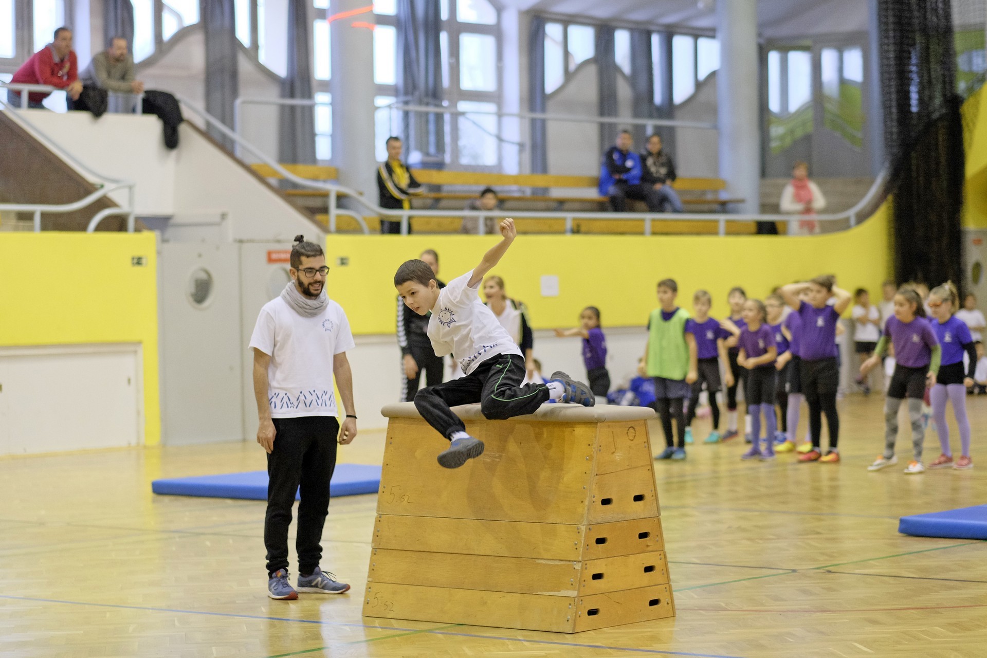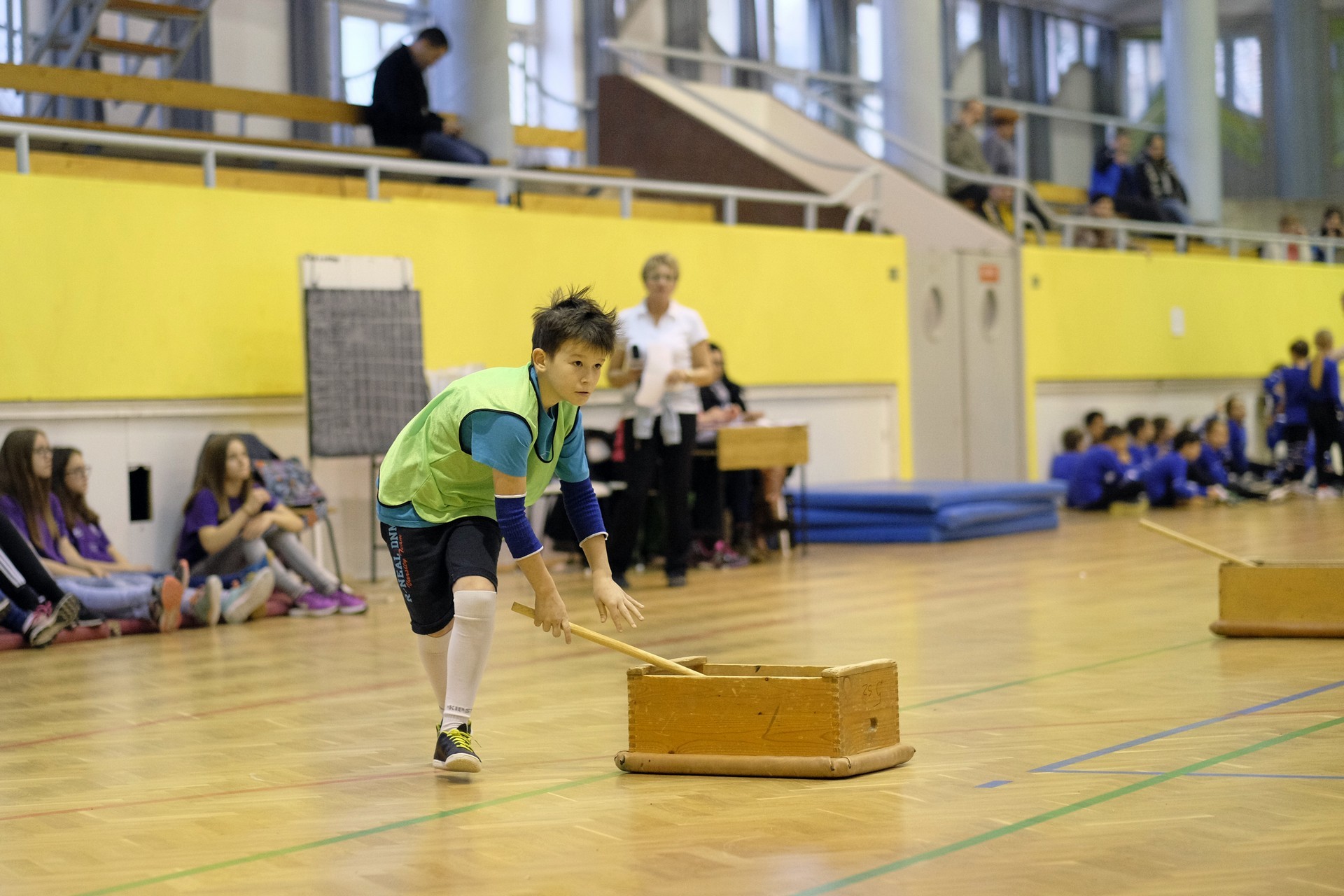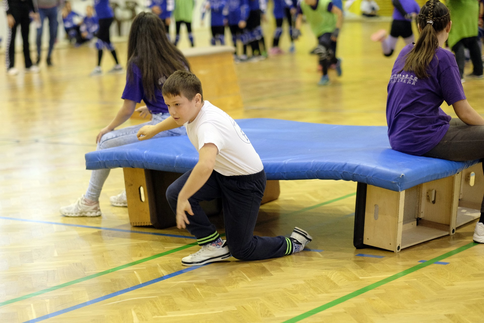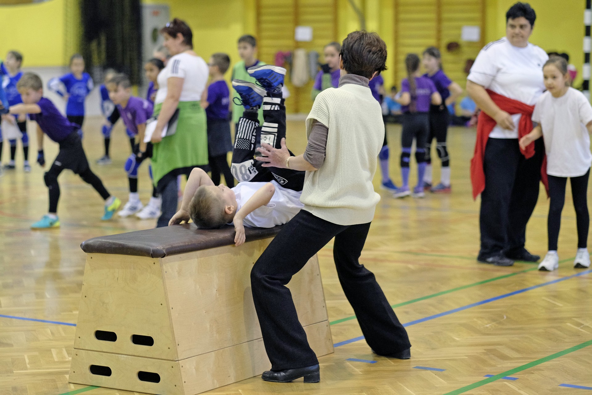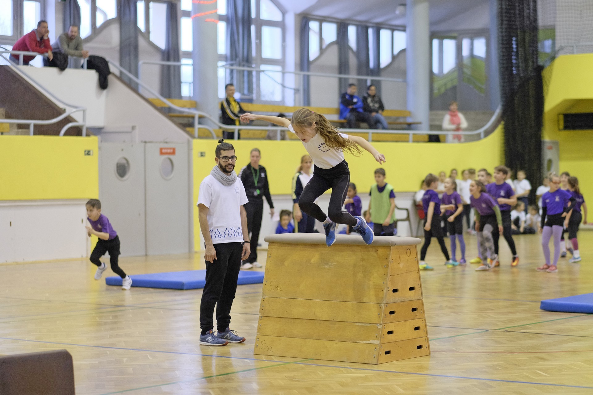 Hat iskola csapata vette fel egymással a versenyt a Baktai Ferencné és csapata által felállított pályán. A sorversenyszerű lebonyolításban olyan gyakorlatok kerültek egymás mellé, mint az akadályugrás, bukfencezés vagy a padon való átfutás. Később előkerültek a labdák és különböző sporteszközök is, és sok, rendkívül változatos versenyszámban mérhették össze erejüket és ügyességüket az alsó tagozatos nebulók. A megmérettetést a versenybírók munkája is nagyban segítette, akik a pontok írása mellett a helyes végrehajtásban is segítettek.
